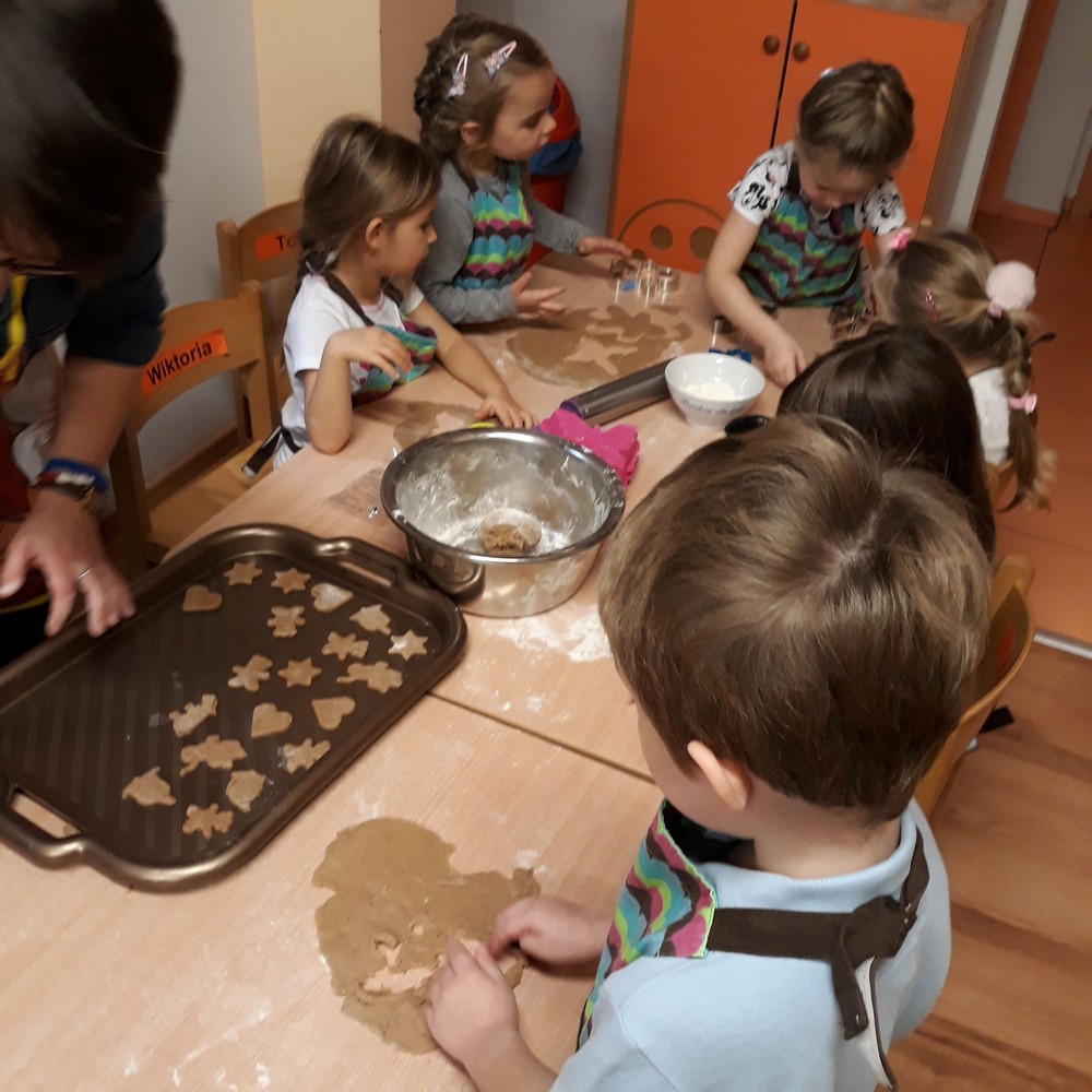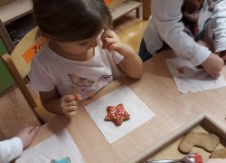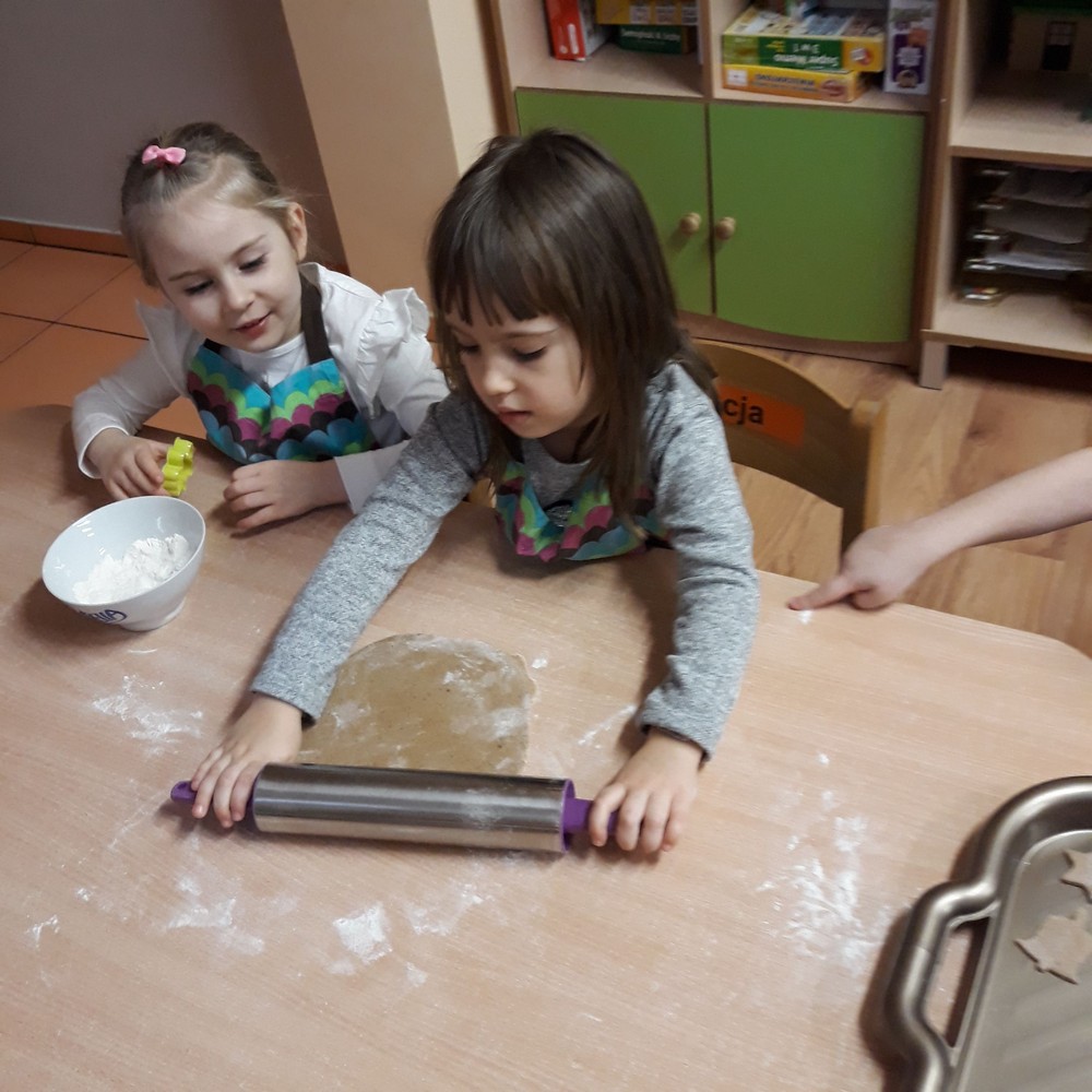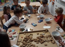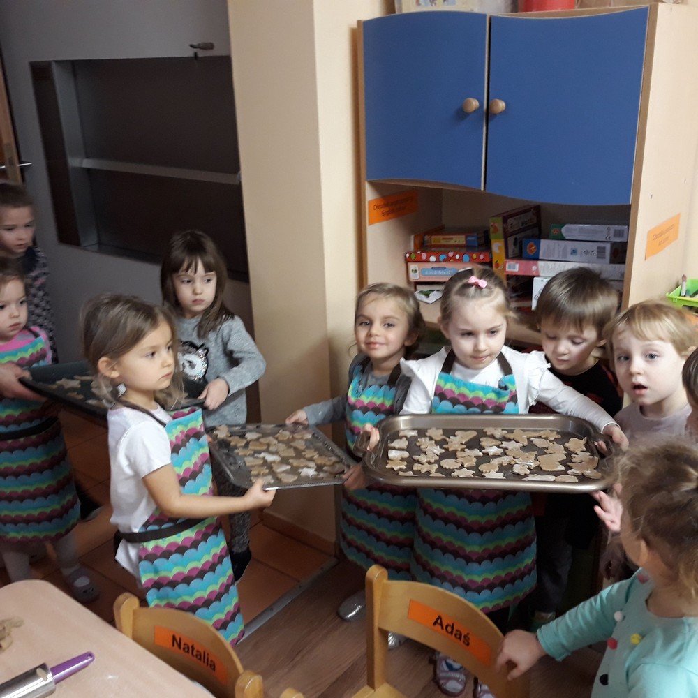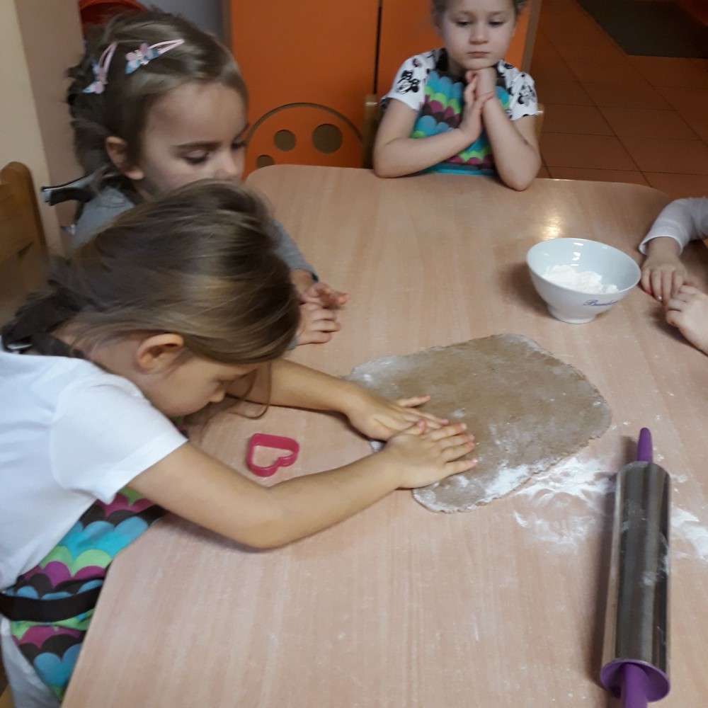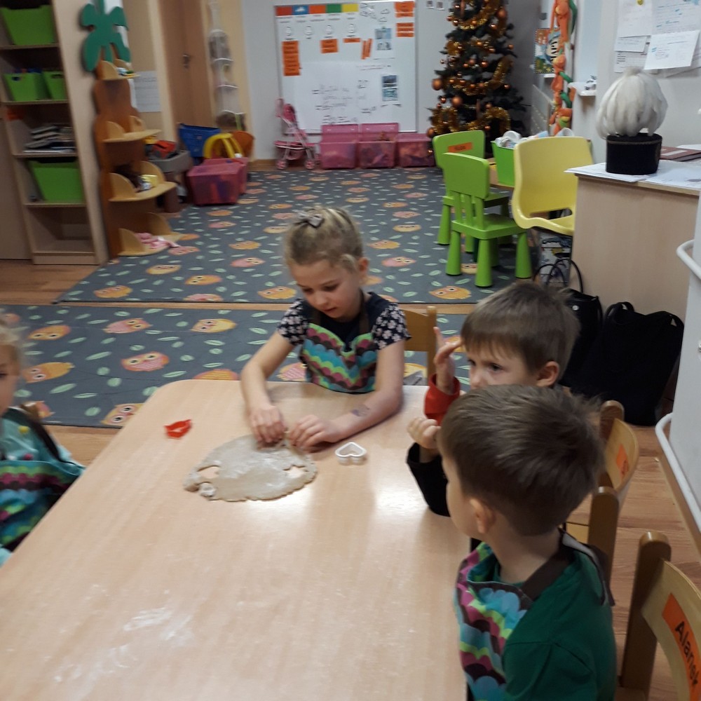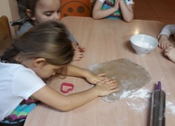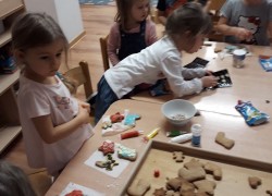 Śred­niaki przy­go­to­wu­jąc się do świąt samo­dziel­nie wyko­nały pier­niczki. Ugnia­tały wał­ko­wały, wyci­nały, aby stwo­rzyć świą­teczne sma­ko­łyki. Efekt koń­cowy był bardzo sma­ko­wity.