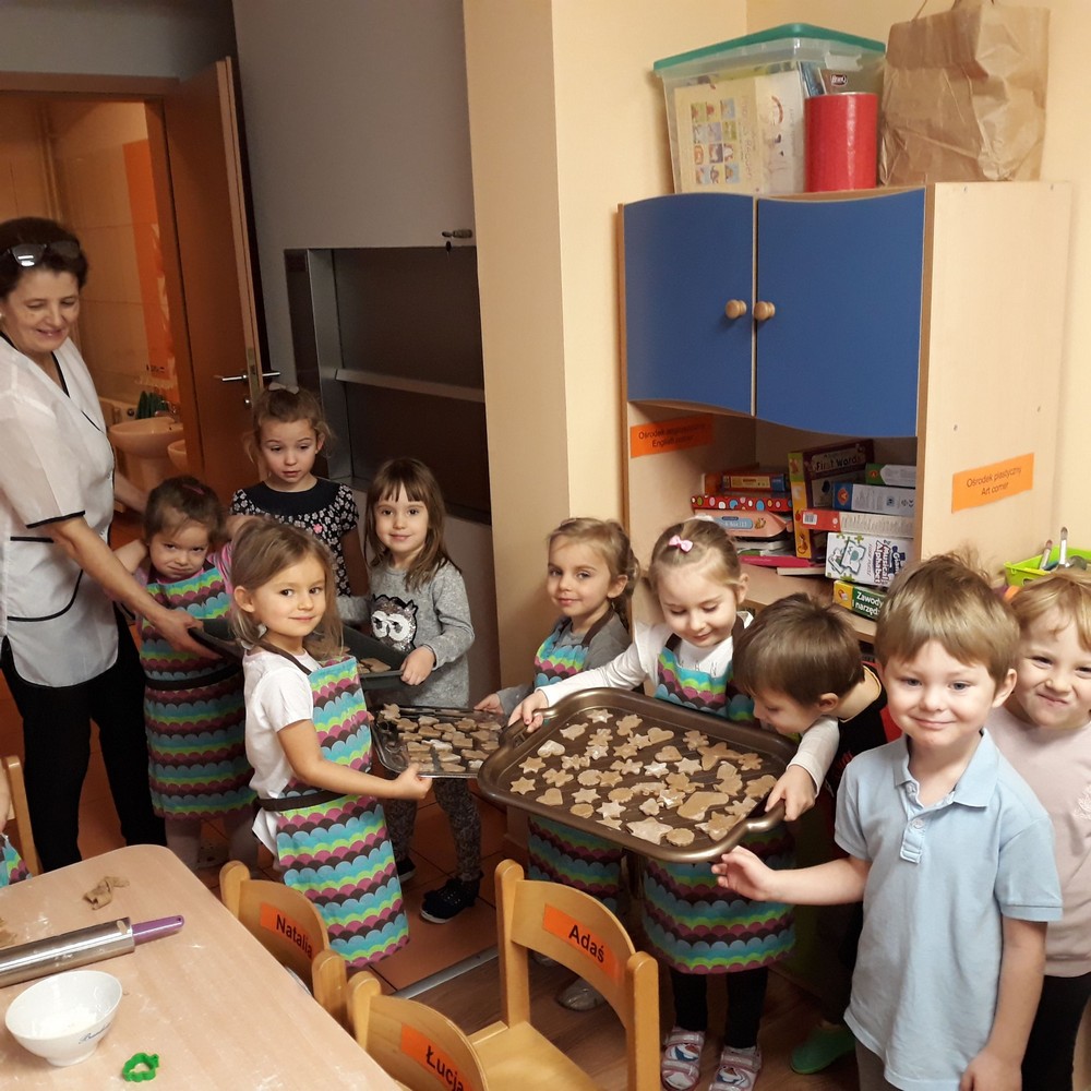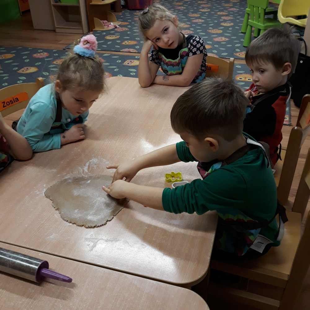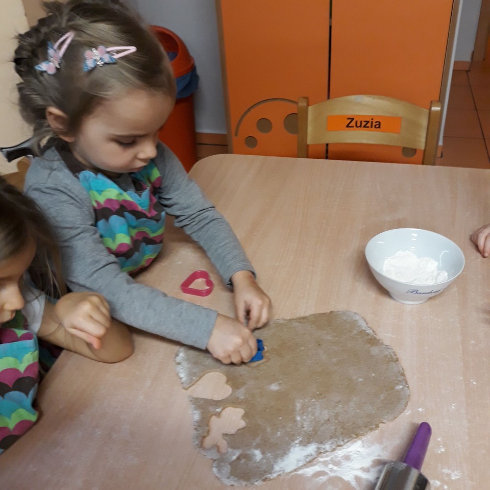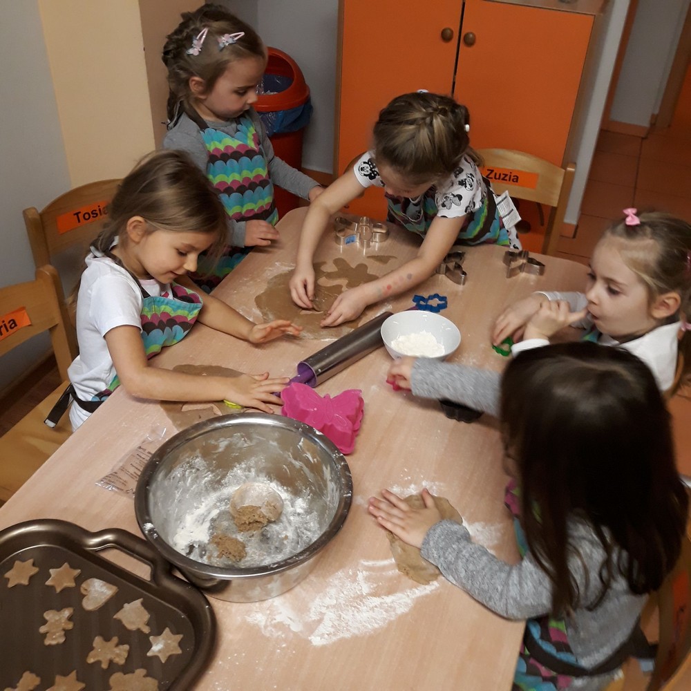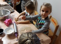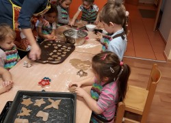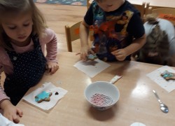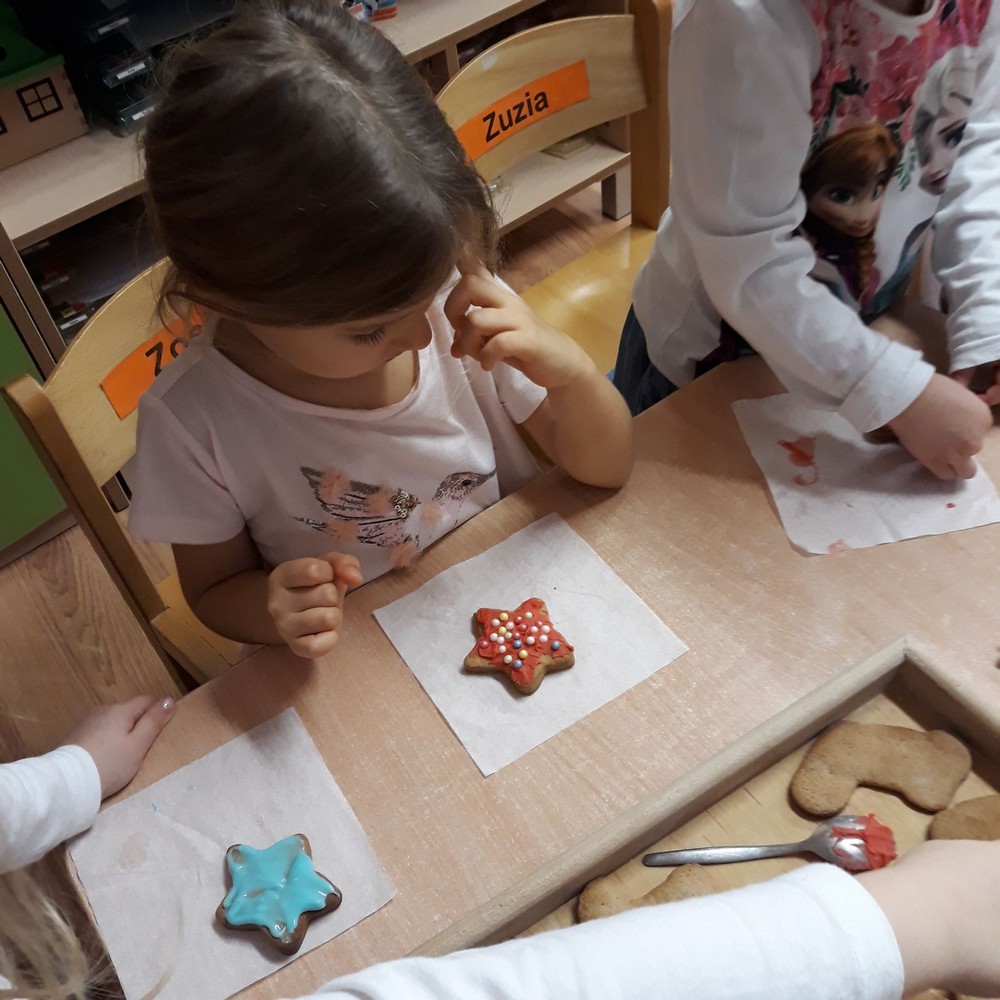 Śred­niaki przy­go­to­wu­jąc się do świąt samo­dziel­nie wyko­nały pier­niczki. Ugnia­tały wał­ko­wały, wyci­nały, aby stwo­rzyć świą­teczne sma­ko­łyki. Efekt koń­cowy był bardzo sma­ko­wity.