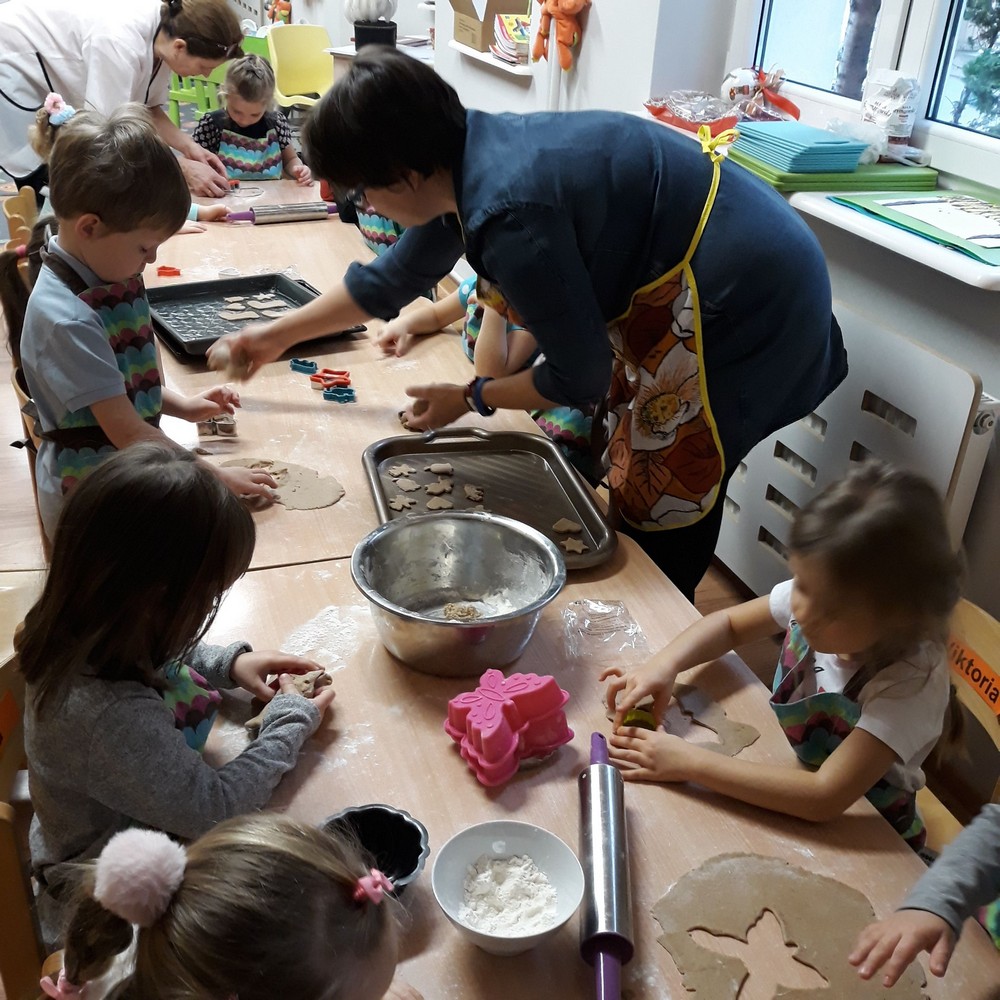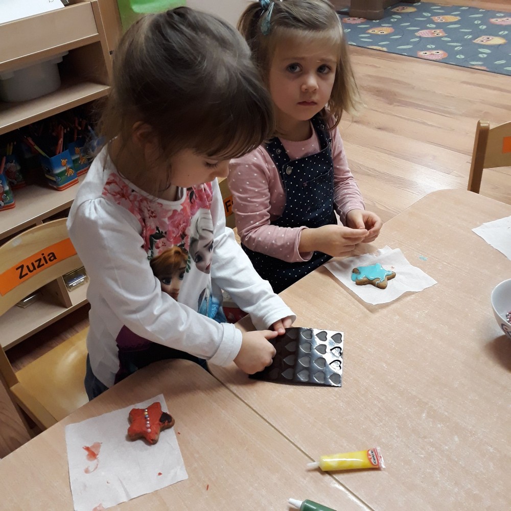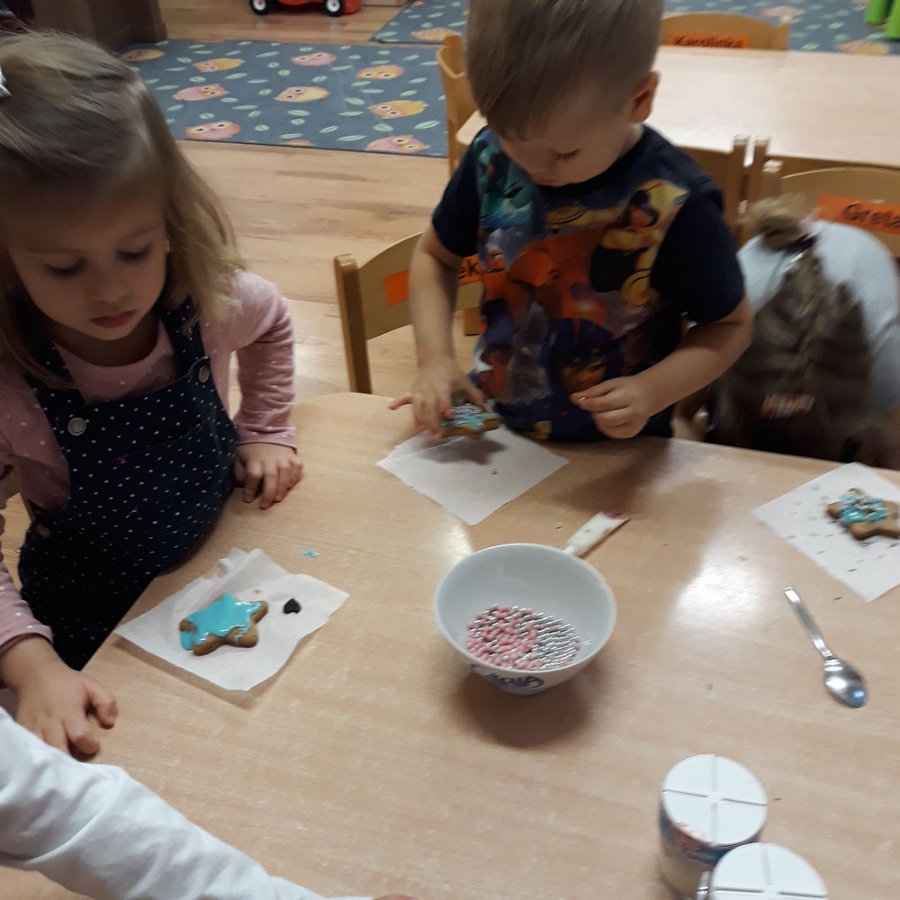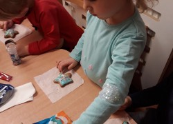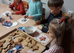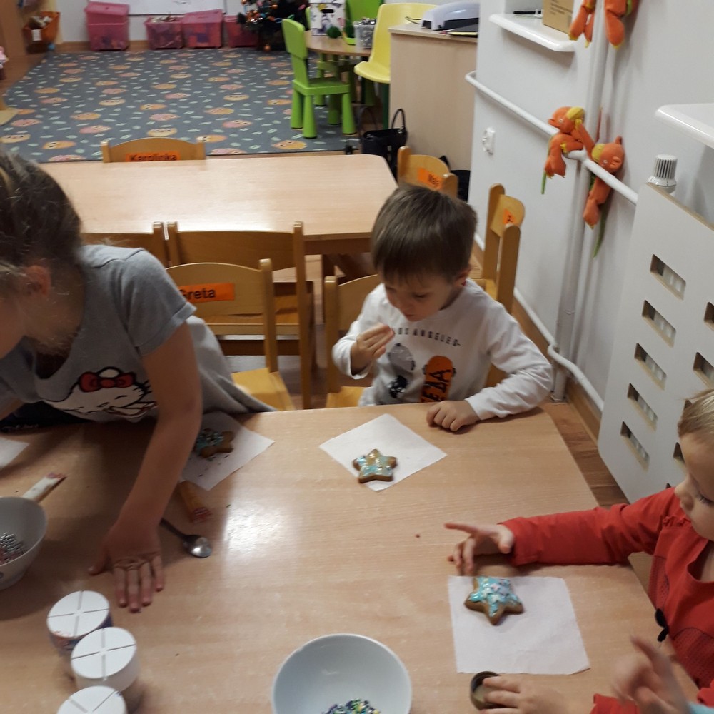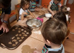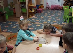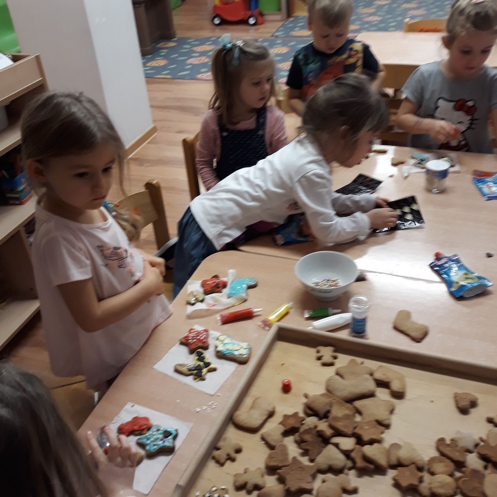 Śred­niaki przy­go­to­wu­jąc się do świąt samo­dziel­nie wyko­nały pier­niczki. Ugnia­tały wał­ko­wały, wyci­nały, aby stwo­rzyć świą­teczne sma­ko­łyki. Efekt koń­cowy był bardzo sma­ko­wity.