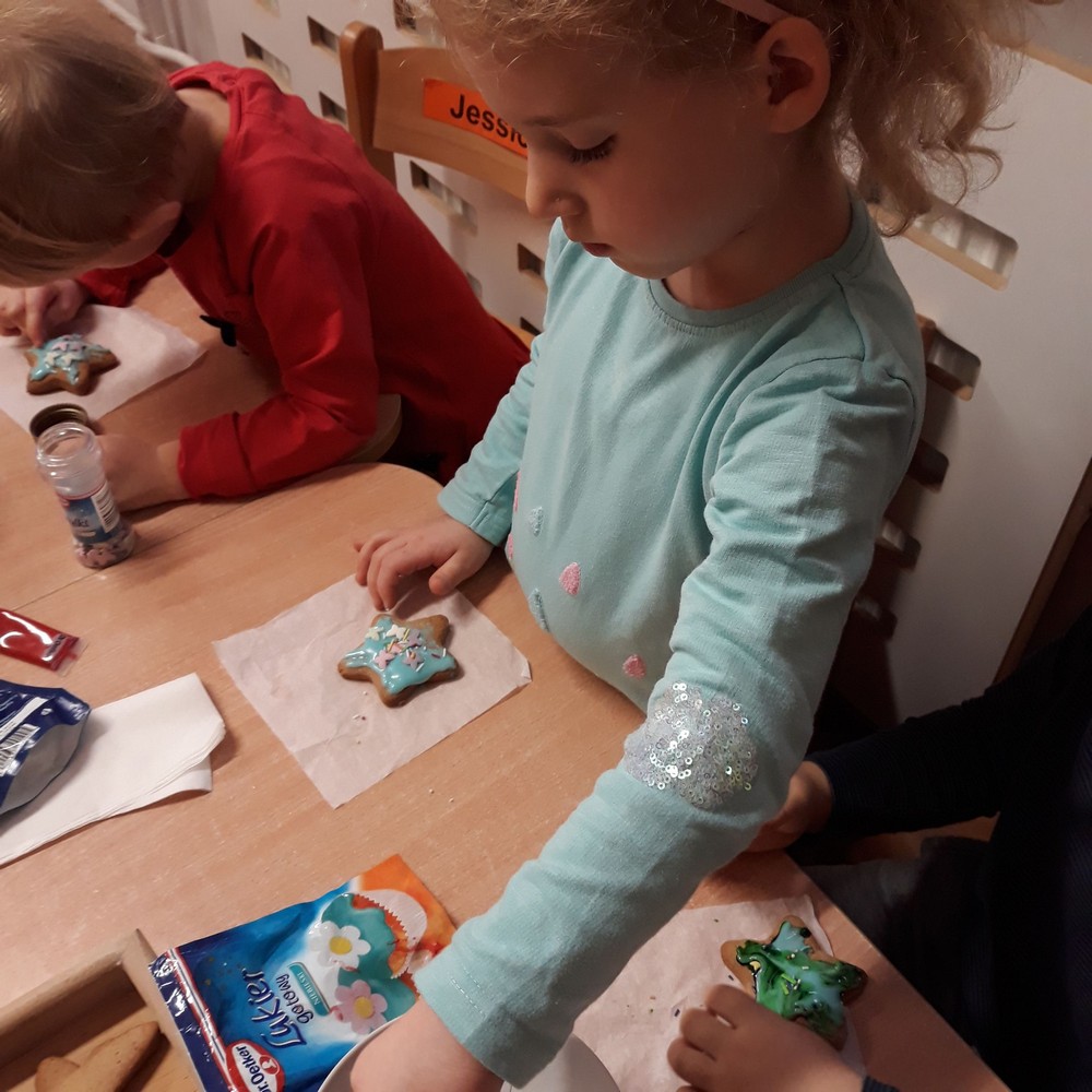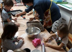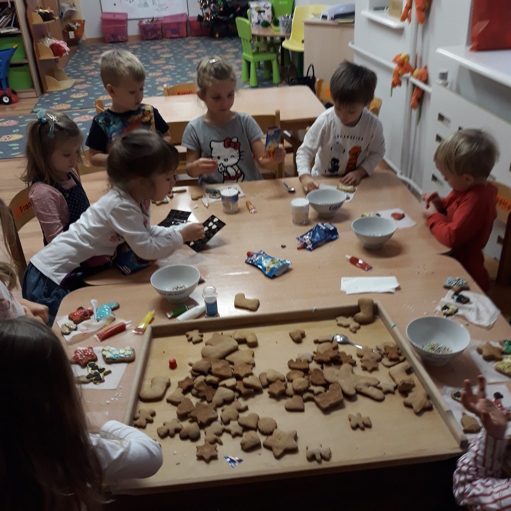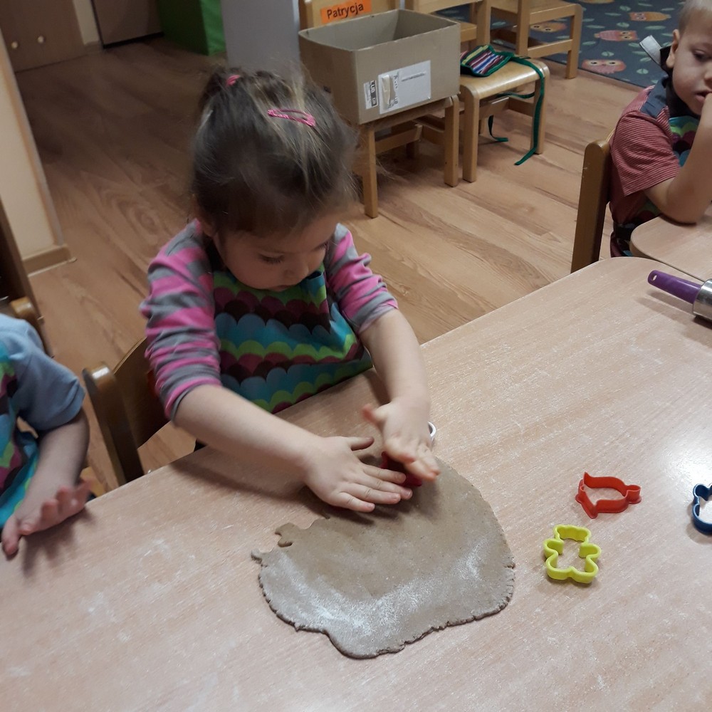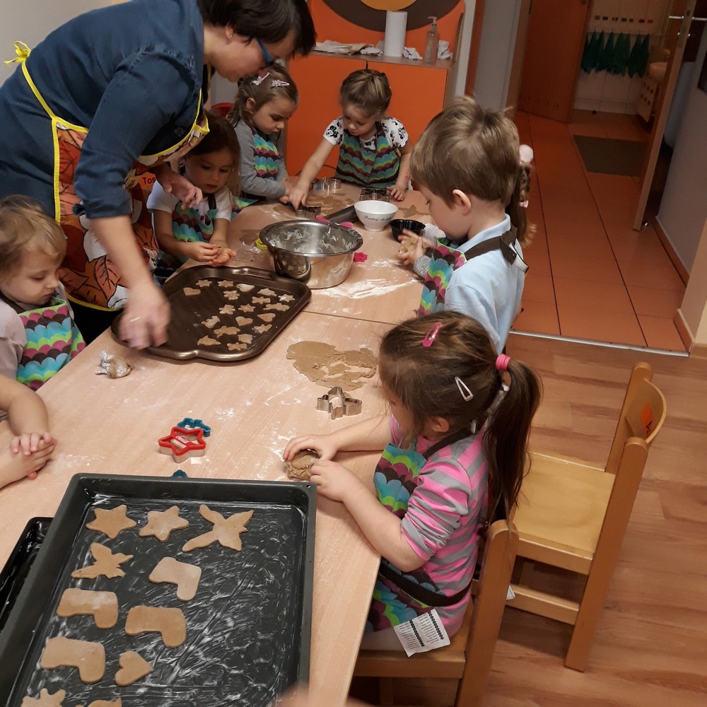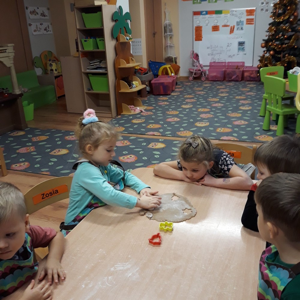Śred­niaki przy­go­to­wu­jąc się do świąt samo­dziel­nie wyko­nały pier­niczki. Ugnia­tały wał­ko­wały, wyci­nały, aby stwo­rzyć świą­teczne sma­ko­łyki. Efekt koń­cowy był bardzo sma­ko­wity.