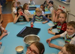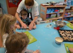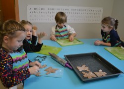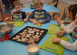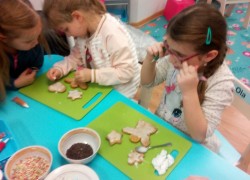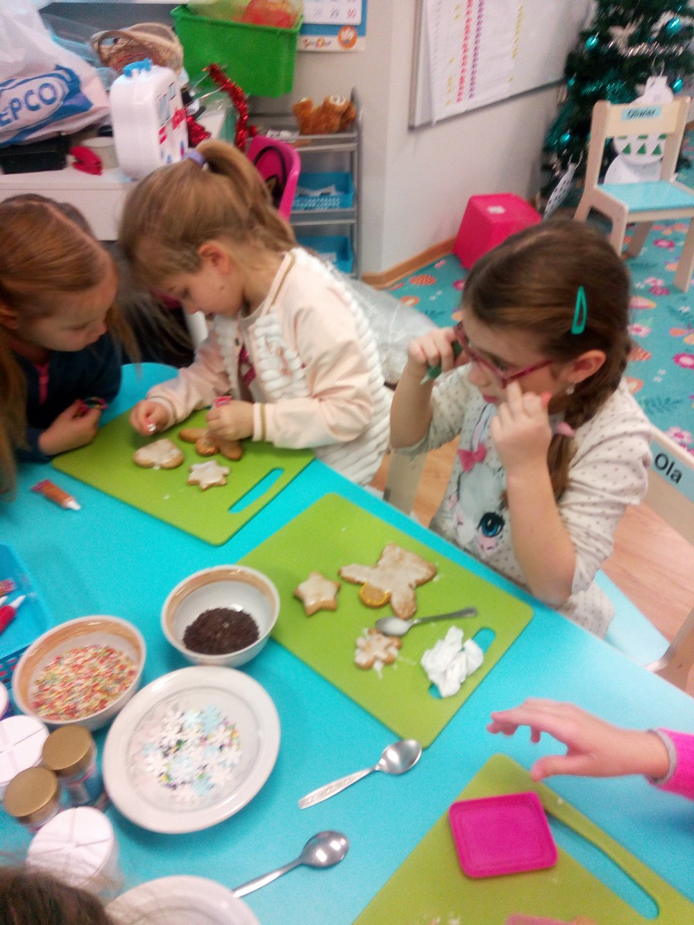 Przed świę­tami Bożego Naro­dze­nia nasi zerów­ko­wi­cze samo­dziel­nie two­rzyli, a następ­nie ozda­biali pier­niczki. Cia­steczka zostały wrę­czone rodzi­com po przed­sta­wie­niu jaseł­ko­wym, jako świą­teczny upo­mi­nek od dzieci.