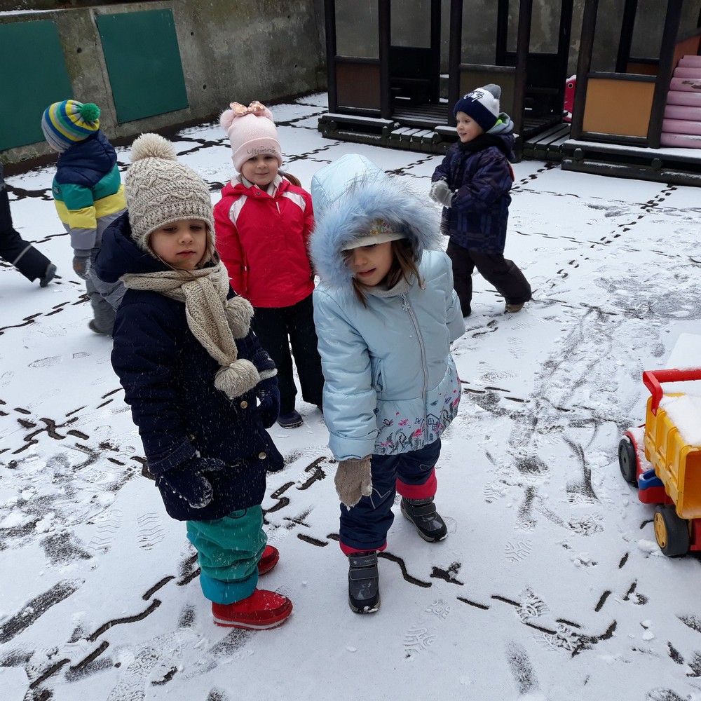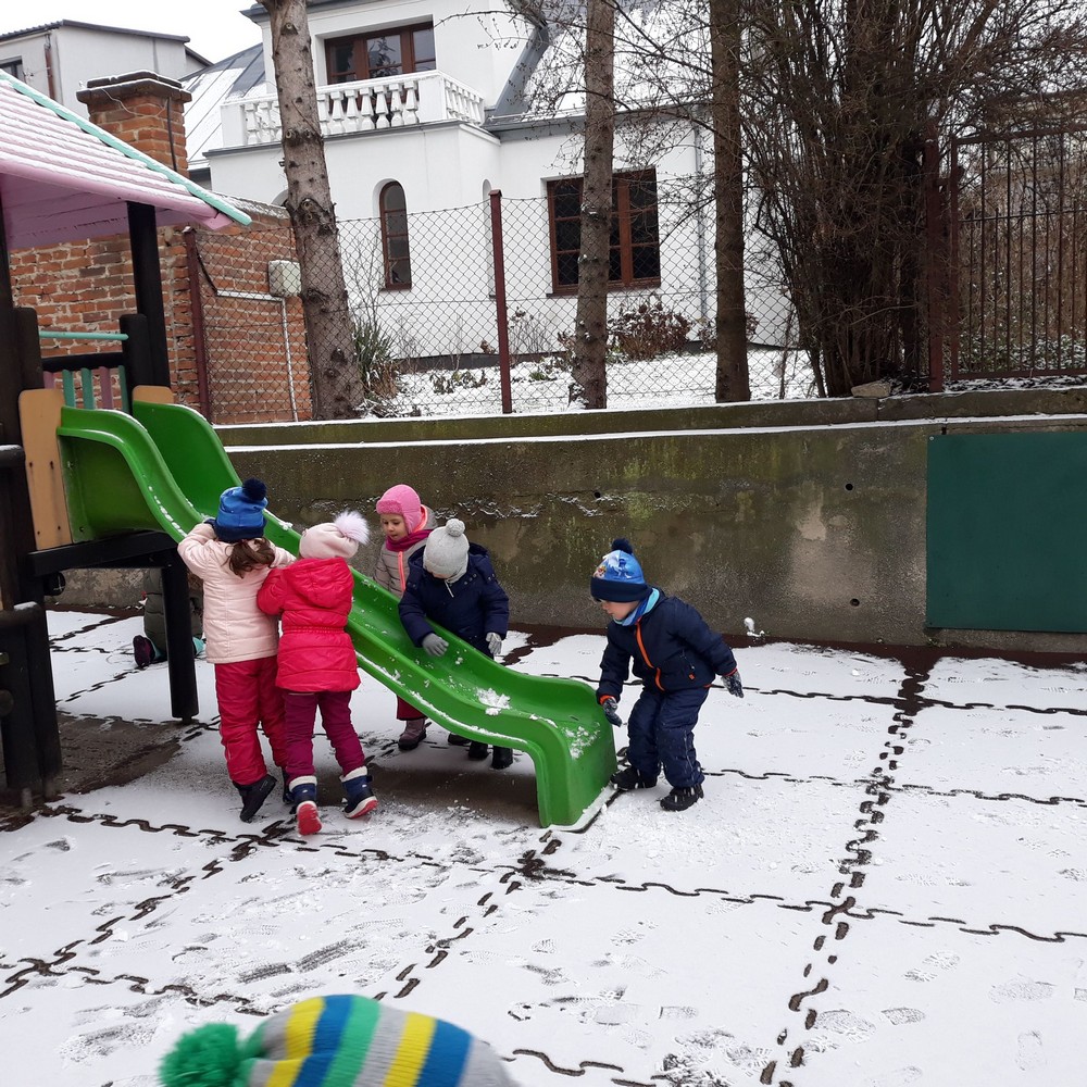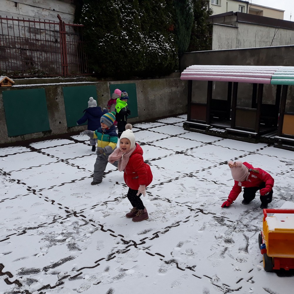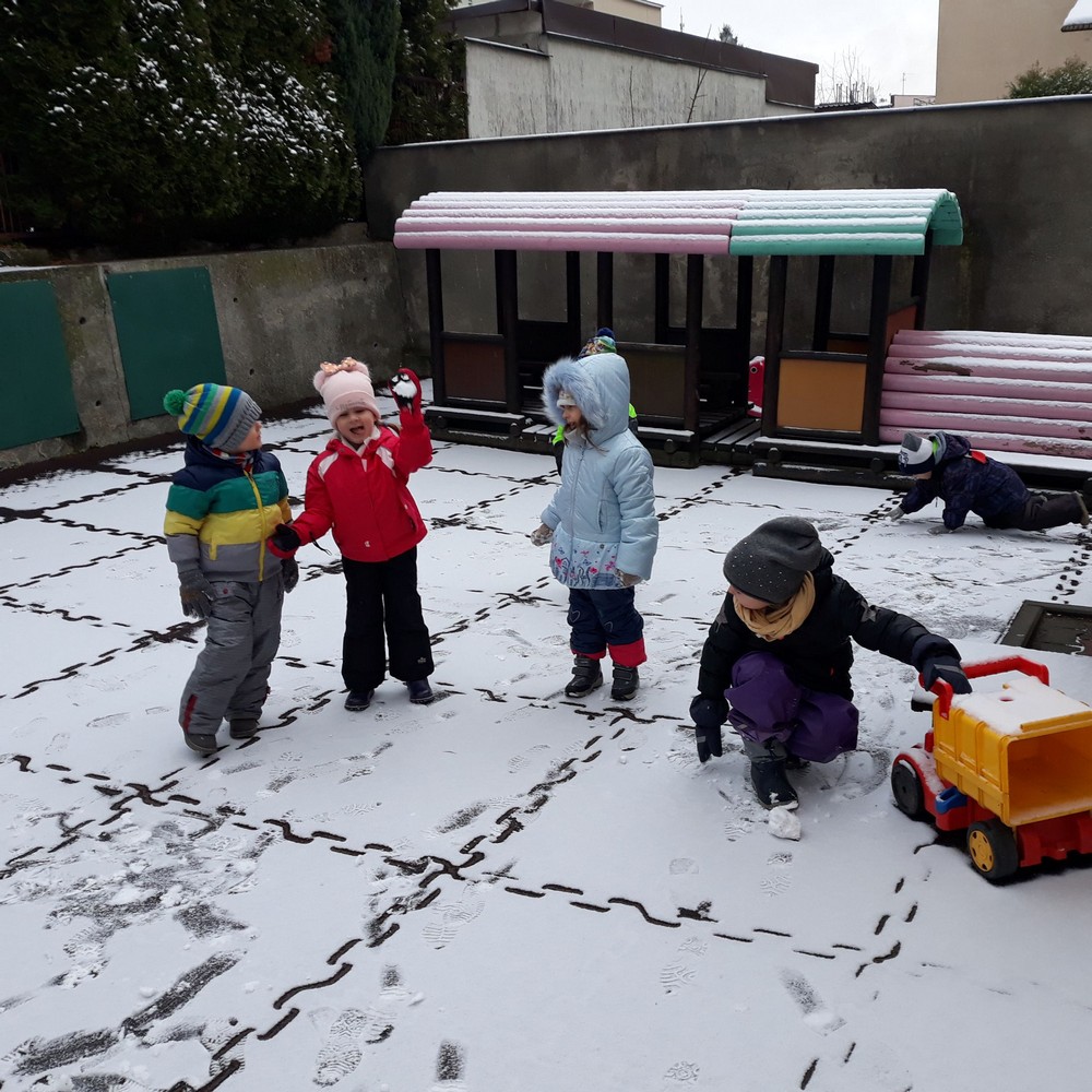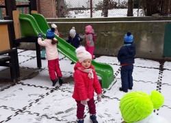 Dzieci chęt­nie bawią się na dworze, gdy pada śnieg. Nasze przed­szko­laki bardzo chęt­nie korzy­stały z moż­li­wo­ści zabaw na śniegu.