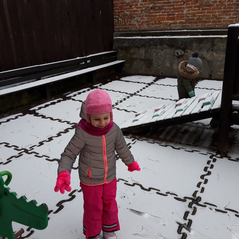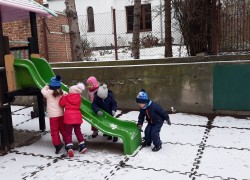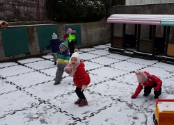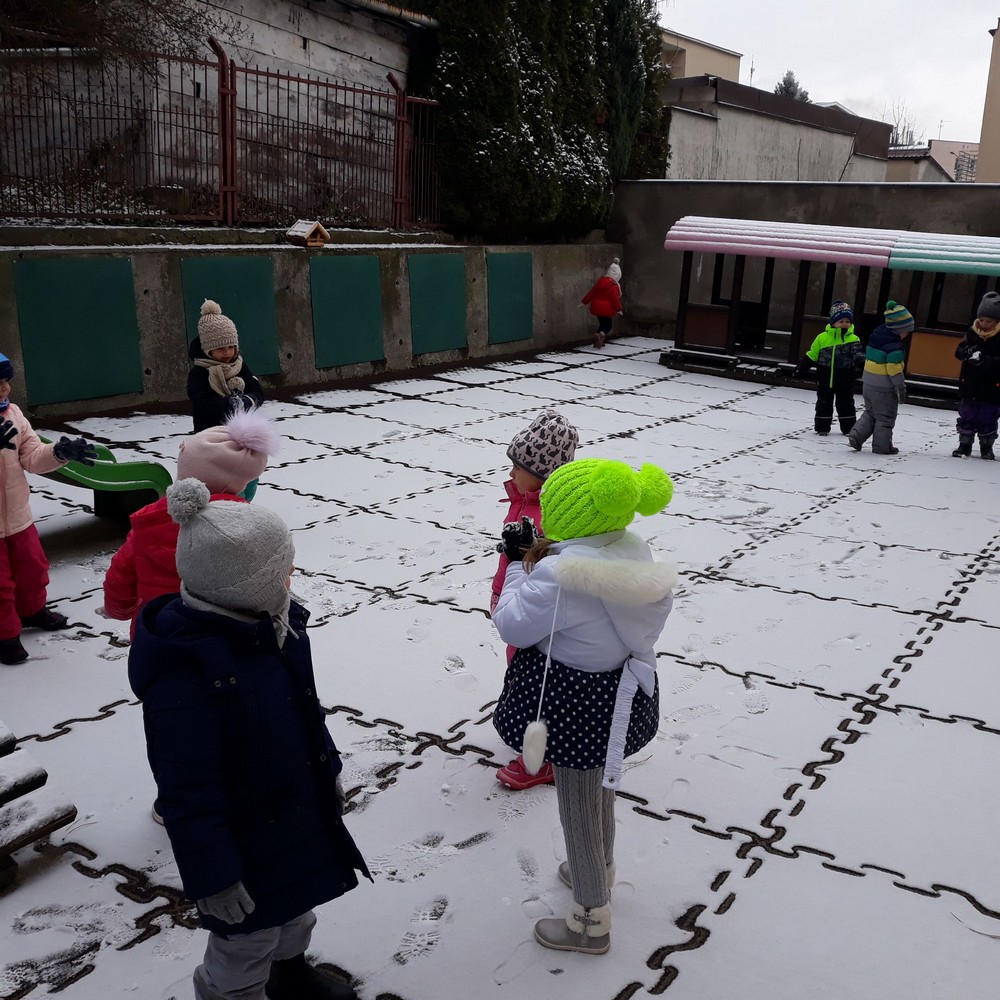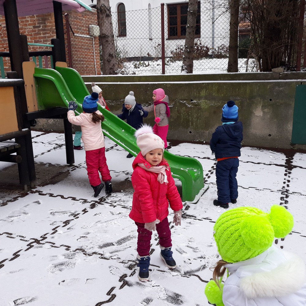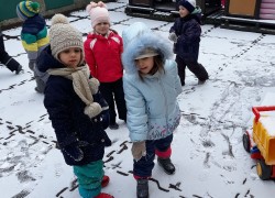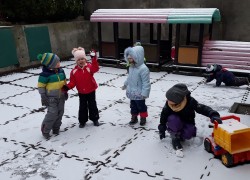 Dzieci chęt­nie bawią się na dworze, gdy pada śnieg. Nasze przed­szko­laki bardzo chęt­nie korzy­stały z moż­li­wo­ści zabaw na śniegu.