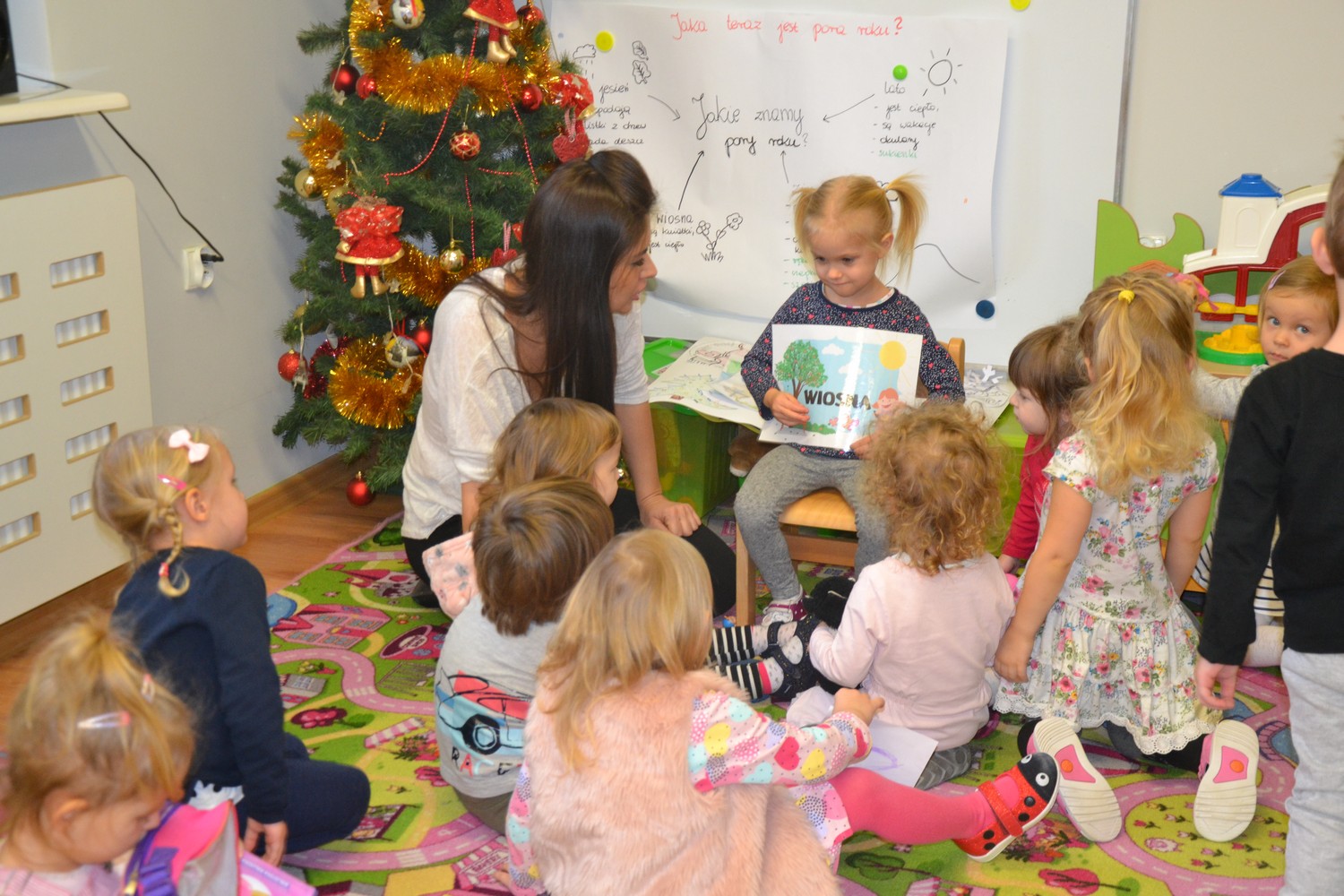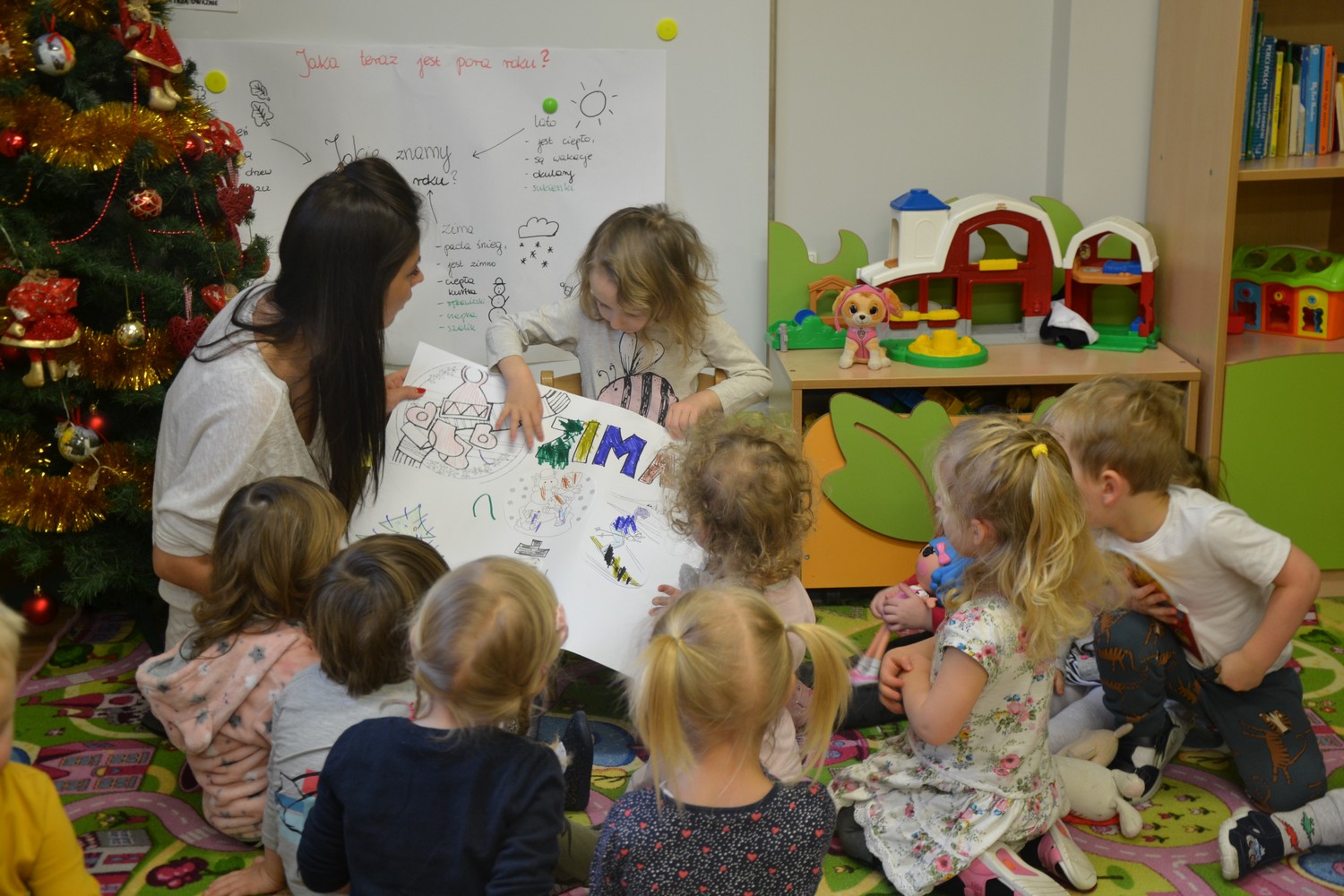 Pod­czas pracy metodą pro­jek­tów dzieci przed­sta­wiły „Domow­ni­czek – Moja ulu­biona pora roku. ”