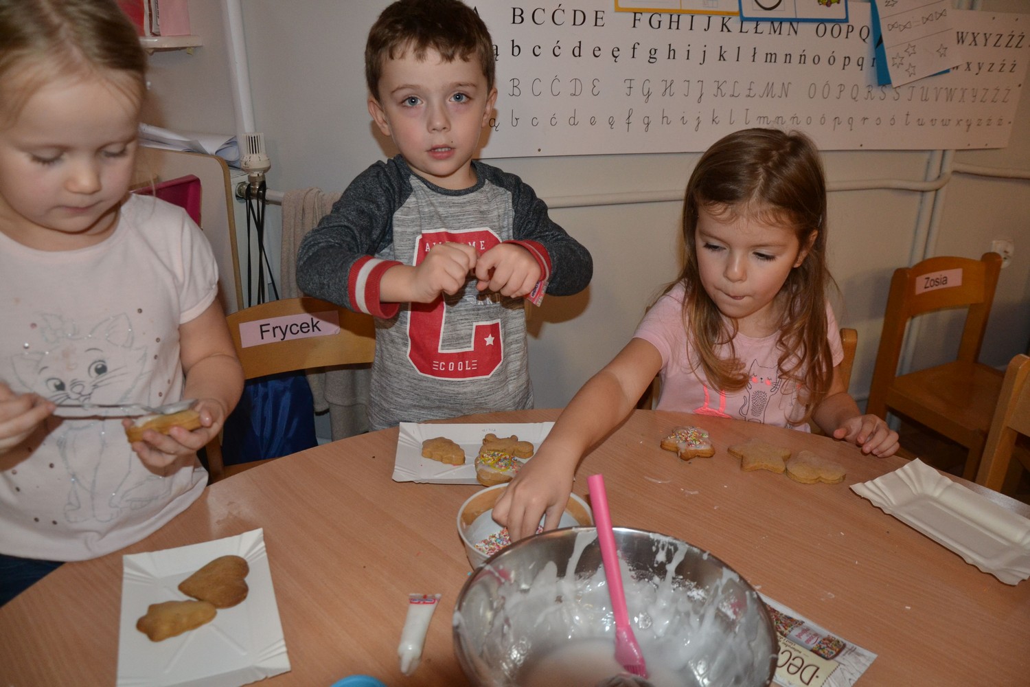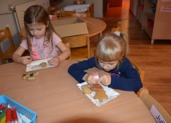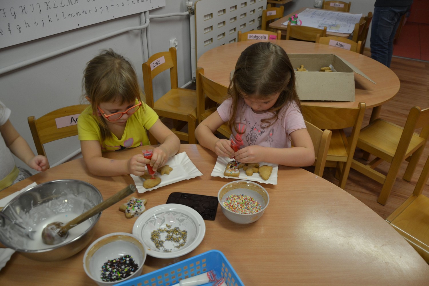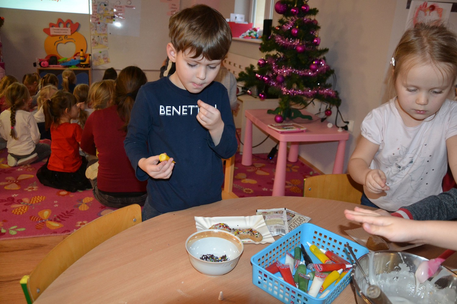 W świą­tecz­nym nastroju śred­niaki ozda­biały wcze­śniej upie­czone pier­niczki, które były świą­tecz­nym pre­zen­tem dla rodzi­ców.