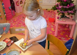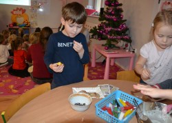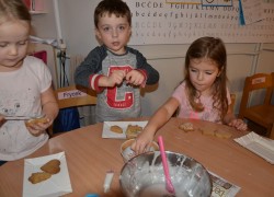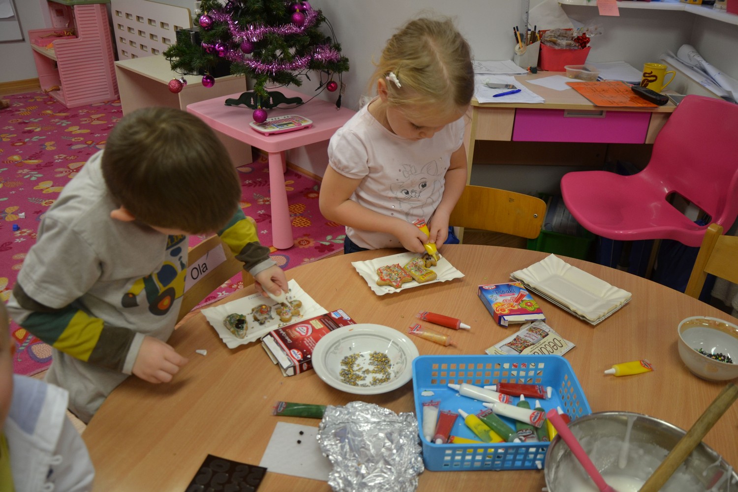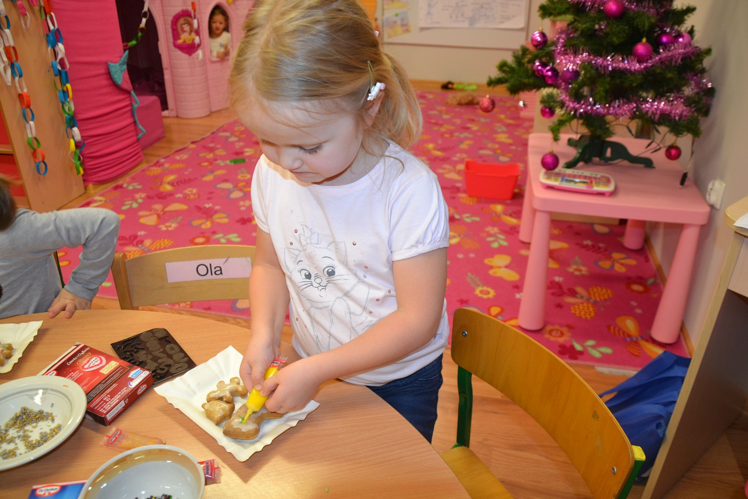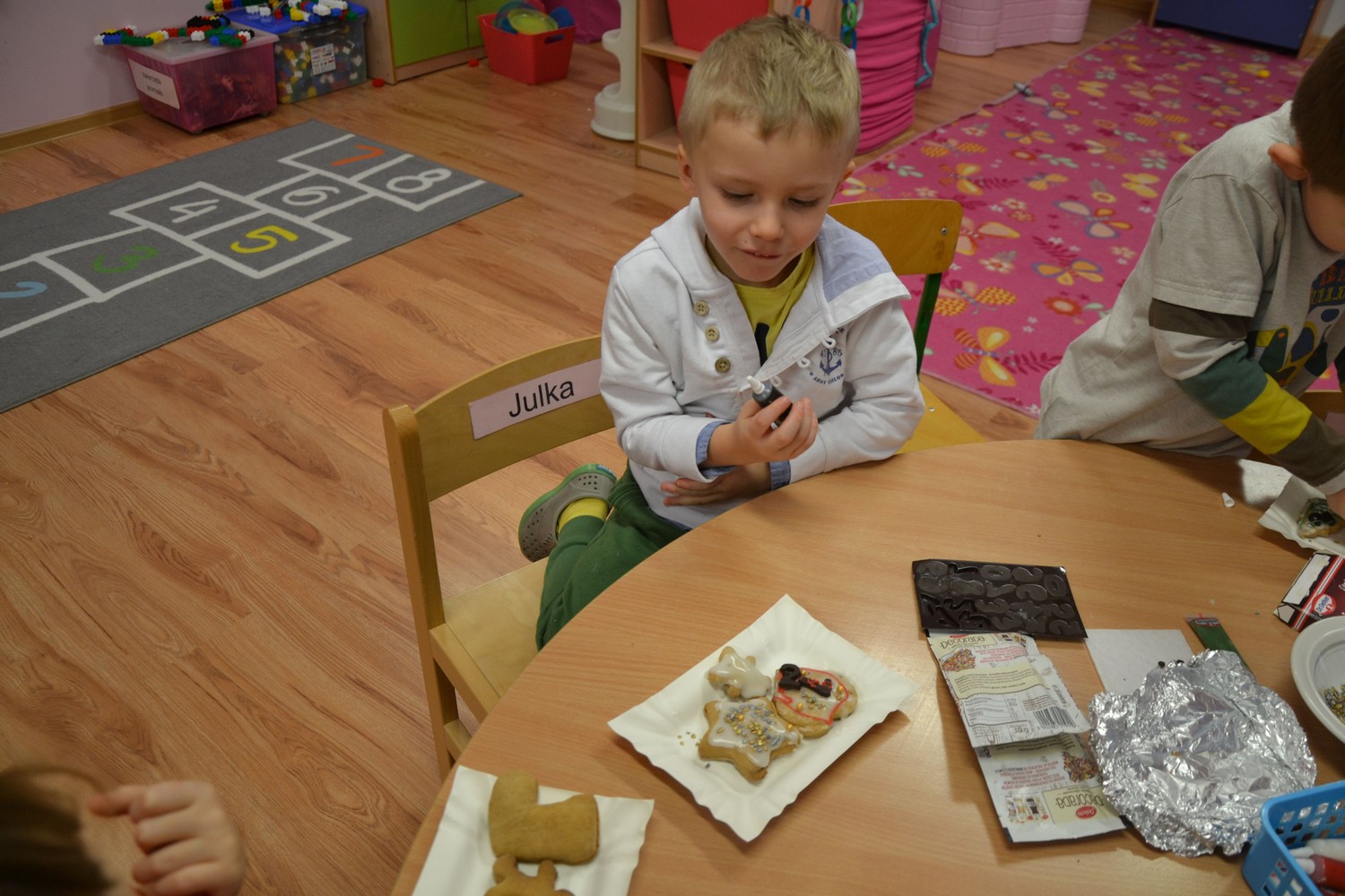 W świą­tecz­nym nastroju śred­niaki ozda­biały wcze­śniej upie­czone pier­niczki, które były świą­tecz­nym pre­zen­tem dla rodzi­ców.