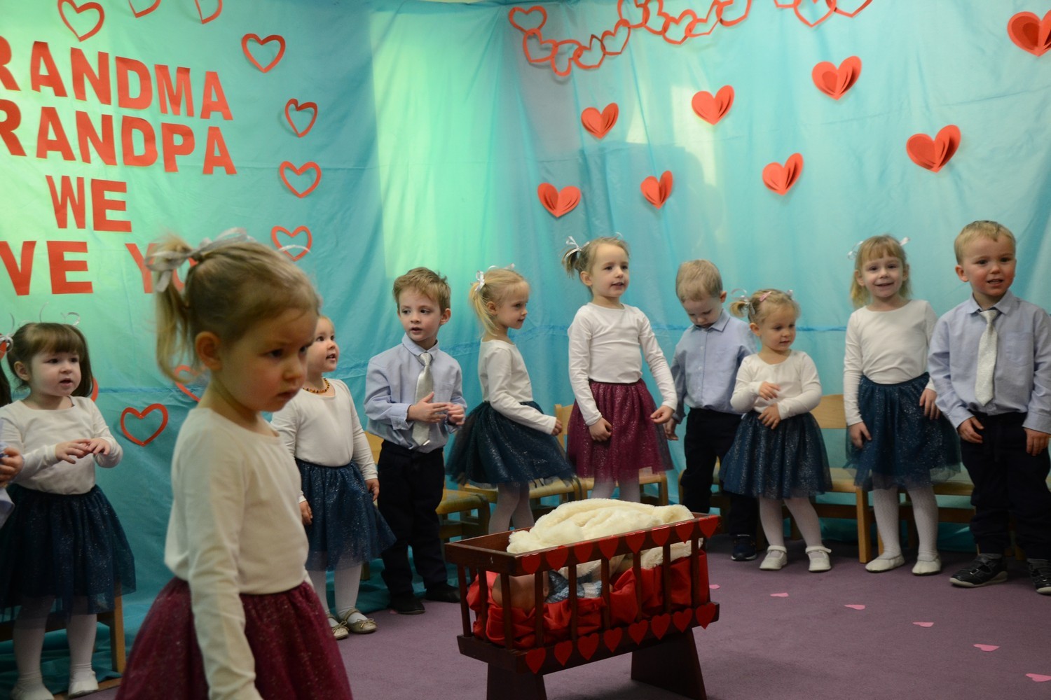 Z okazji Dnia Babci i Dziadka dzieci z grupy I przy­go­to­wały przed­sta­wie­nie pt. „Serce dla Babci i Dziadka”. Po przed­sta­wie­niu dzieci wrę­czyły Bab­ciom i Dziad­kom wła­sno­ręcz­nie wyko­nane pre­zenty.