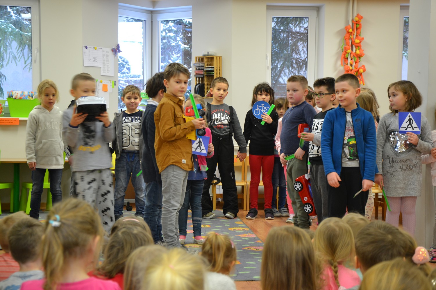 W ubie­głym tygo­dniu nasze przed­szkole odwie­dziły dzieci ze Szkoły Pod­sta­wo­wej nr 3 w Lubli­nie, które zapre­zen­to­wały nam przed­sta­wie­nie pt. „Znaki dro­gowe”.