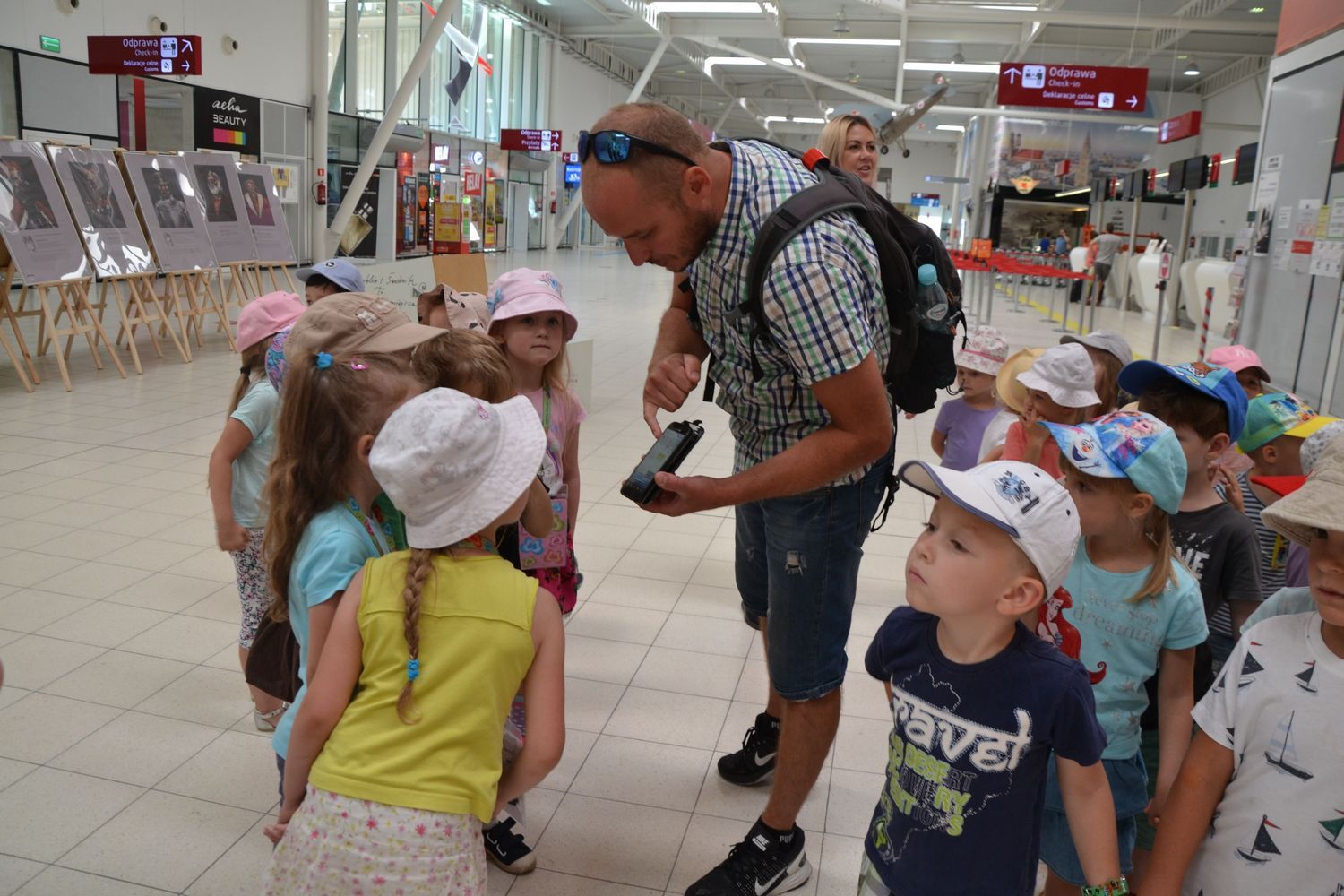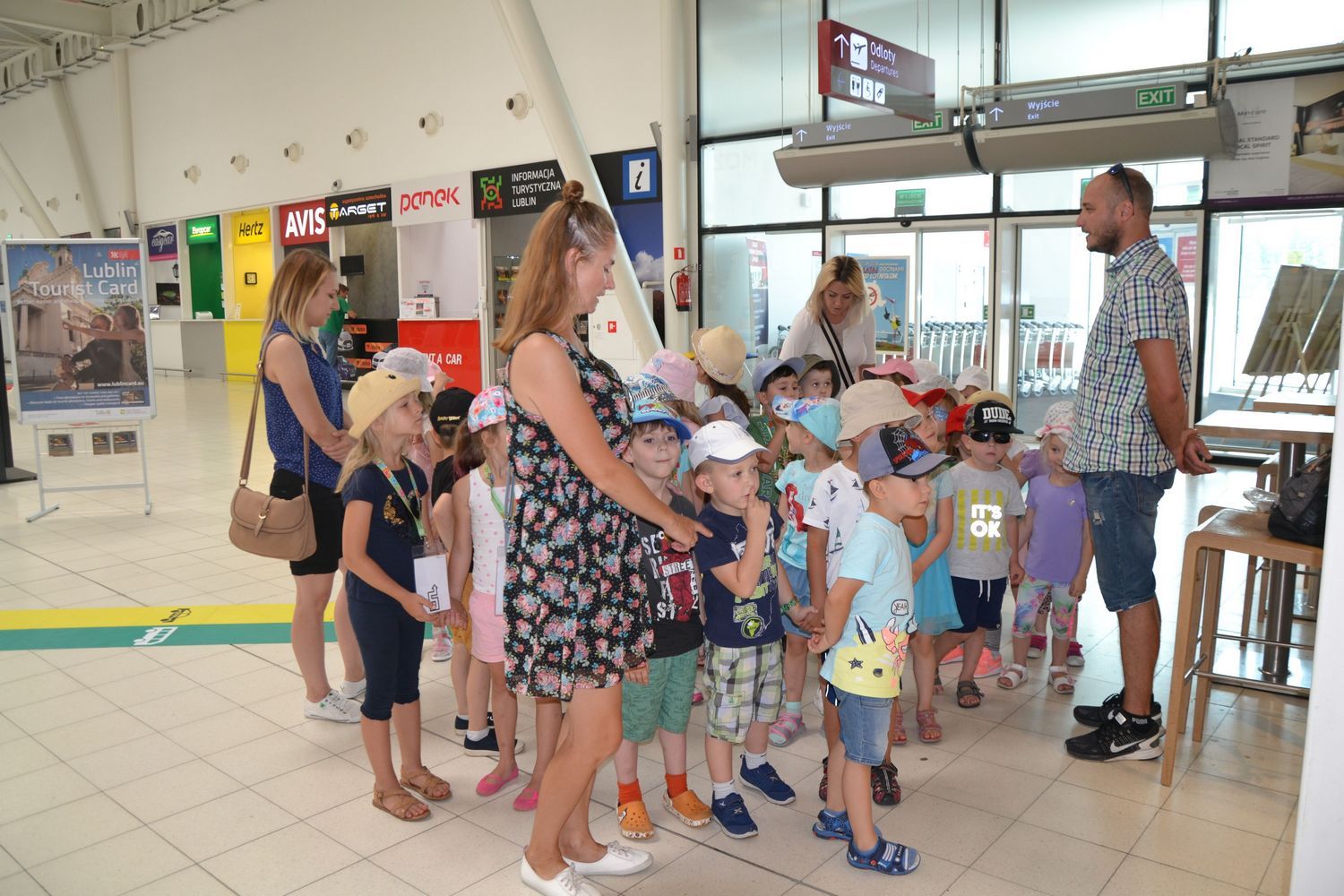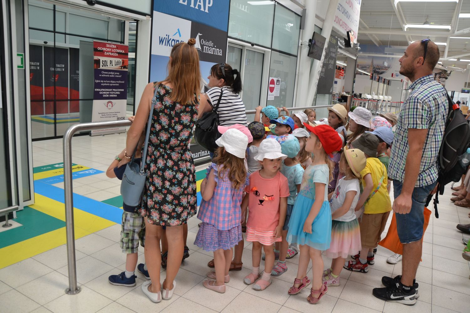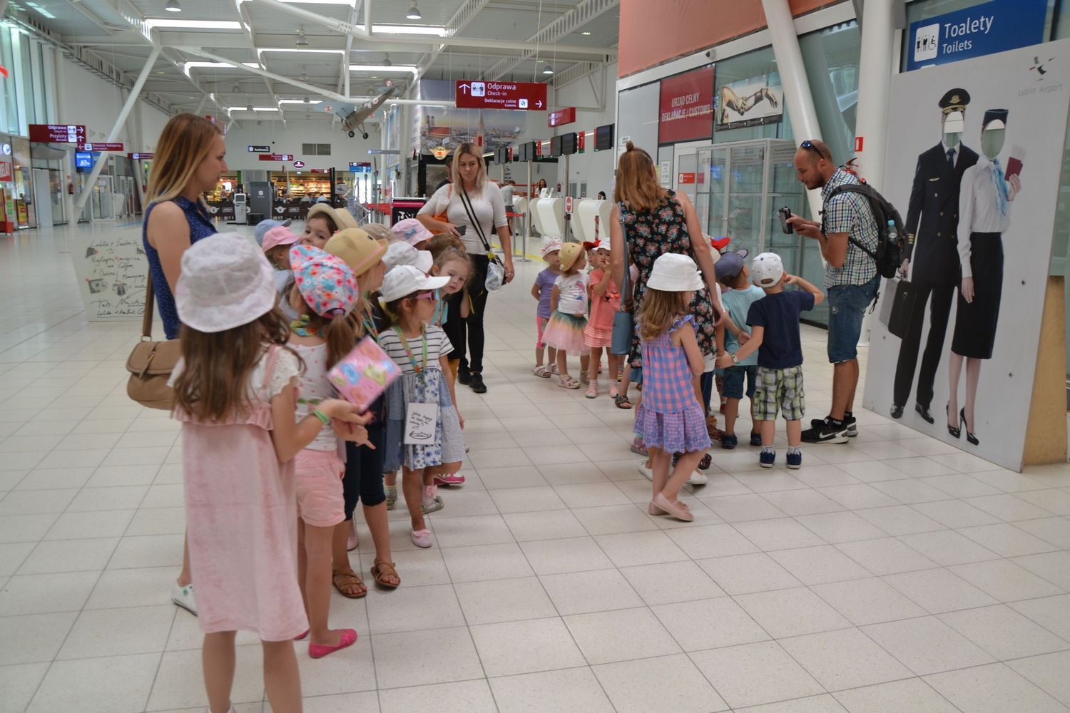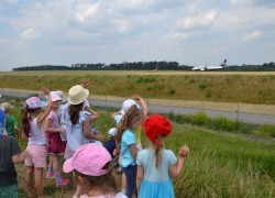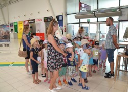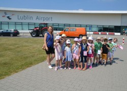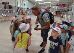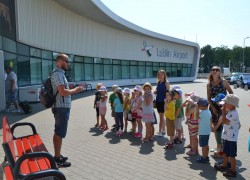21 czerwca nasze grupy wybrały się na zwiedzanie Portu Lotniczego w Świdniku. Dzieci oprowadził przewodnik Pan Tomasz, który dokładnie opowiedział o ogólnych zasadach bezpieczeństwa obowiązujących na lotnisku, odprawie, kontroli bezpieczeństwa. Przedszkolaki miały możliwość obserwacji odprawy bagażu i pobrania kart pokładowych oraz lądowania i startów samolotów. Wszystkim wycieczka bardzo się podobała.
