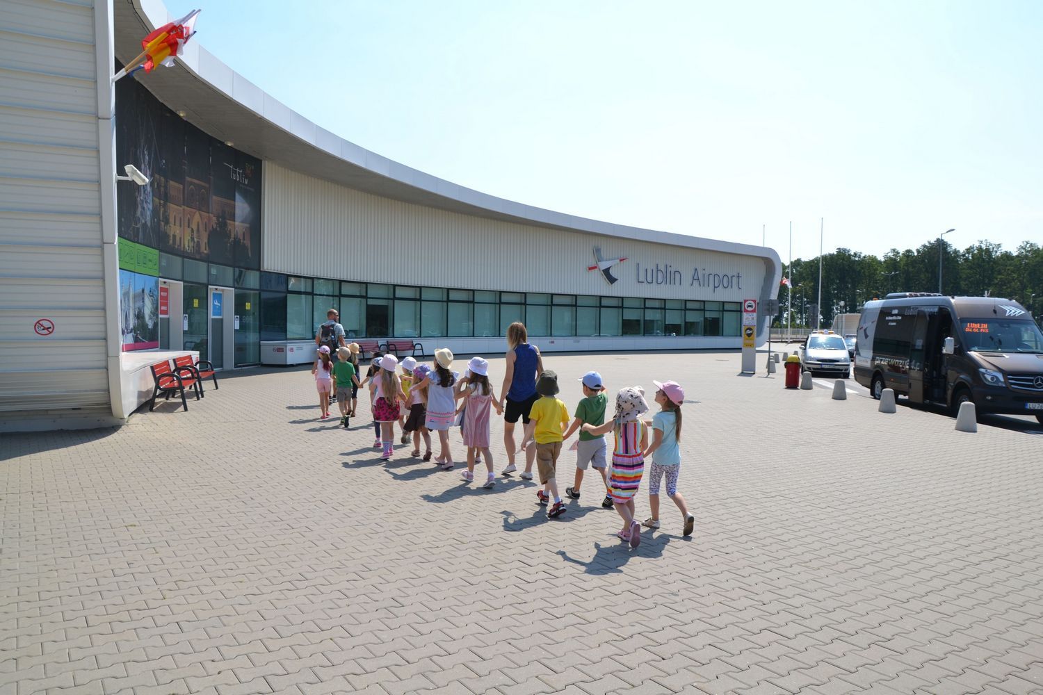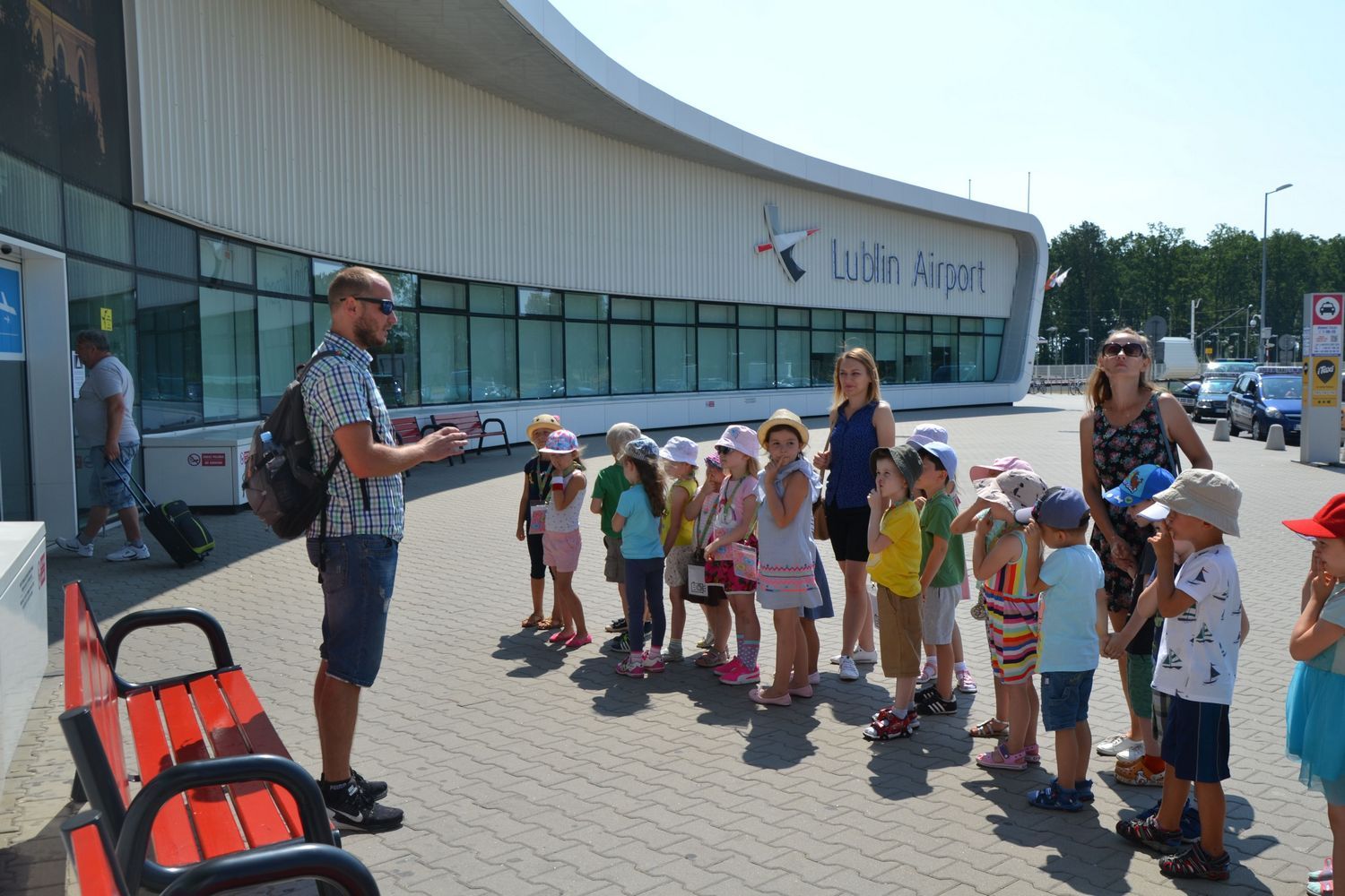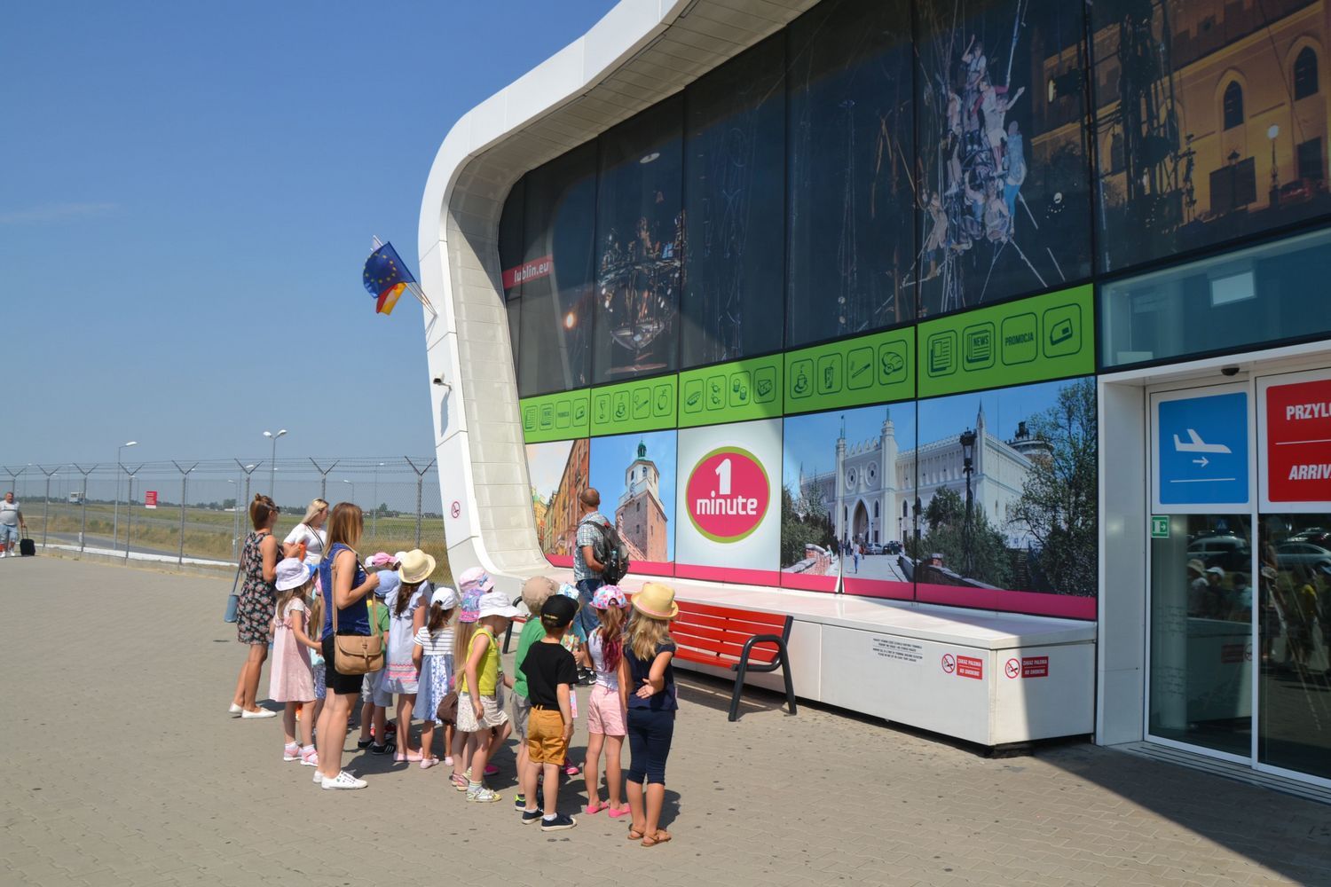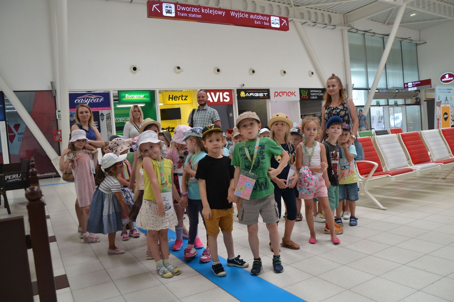 21 czerwca nasze grupy wybrały się na zwiedzanie Portu Lotniczego w Świdniku. Dzieci oprowadził przewodnik Pan Tomasz, który dokładnie opowiedział o ogólnych zasadach bezpieczeństwa obowiązujących na lotnisku, odprawie, kontroli bezpieczeństwa. Przedszkolaki miały możliwość obserwacji odprawy bagażu i pobrania kart pokładowych oraz lądowania i startów samolotów. Wszystkim wycieczka bardzo się podobała.