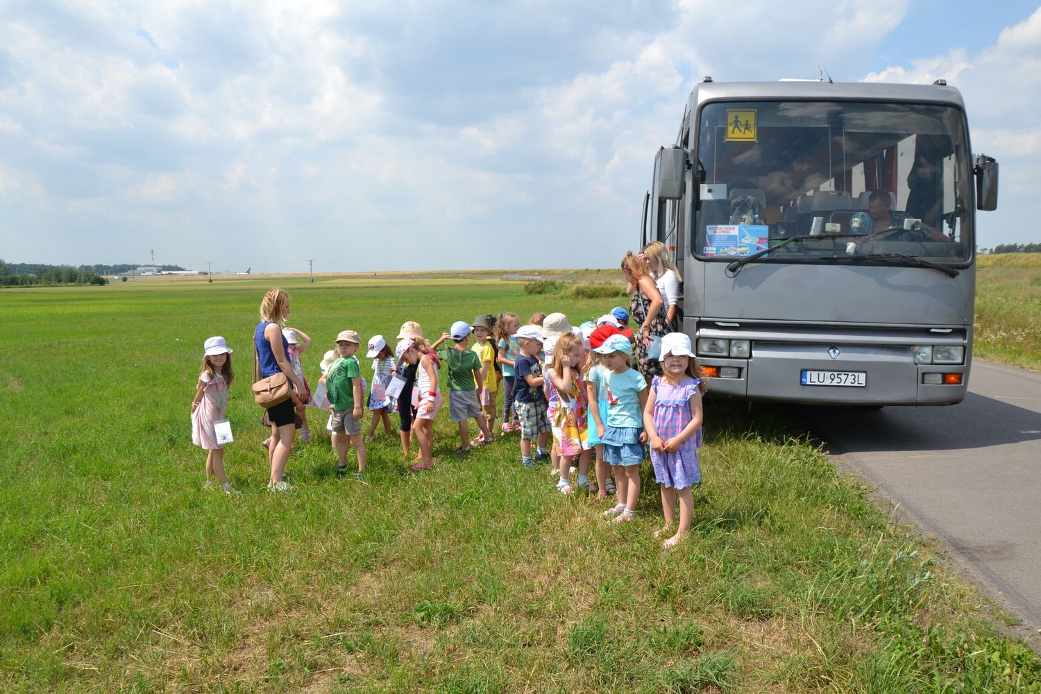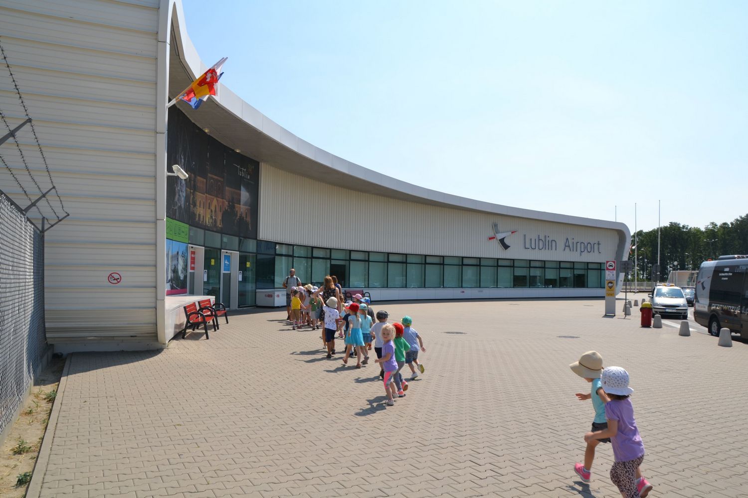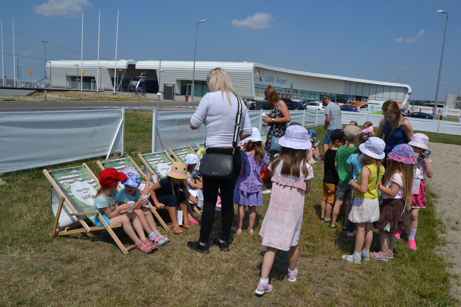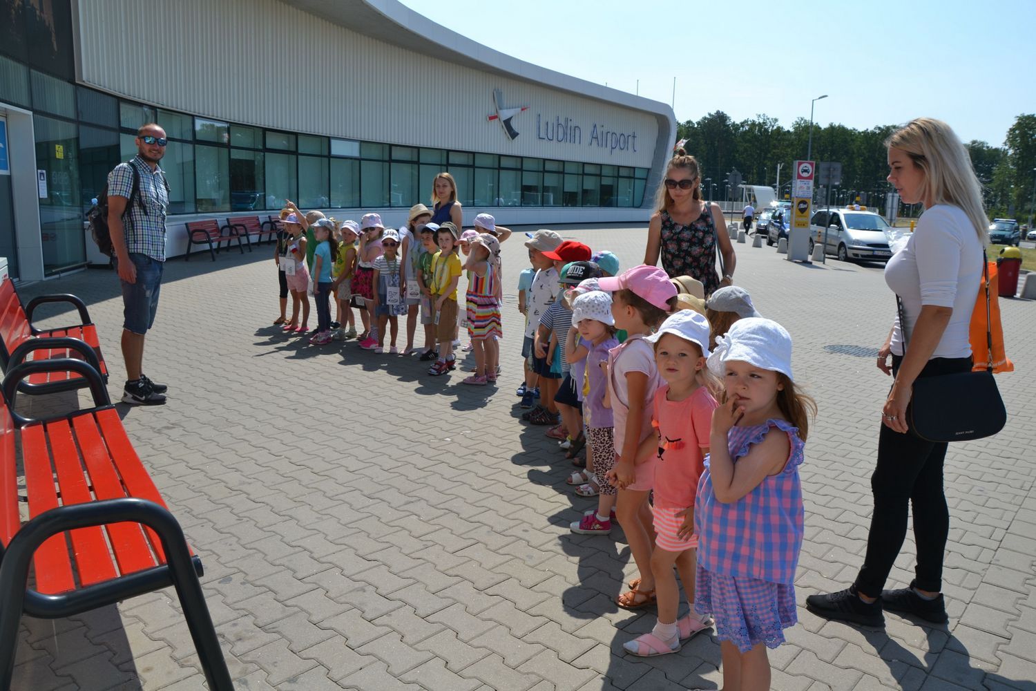 21 czerwca nasze grupy wybrały się na zwiedzanie Portu Lotniczego w Świdniku. Dzieci oprowadził przewodnik Pan Tomasz, który dokładnie opowiedział o ogólnych zasadach bezpieczeństwa obowiązujących na lotnisku, odprawie, kontroli bezpieczeństwa. Przedszkolaki miały możliwość obserwacji odprawy bagażu i pobrania kart pokładowych oraz lądowania i startów samolotów. Wszystkim wycieczka bardzo się podobała.