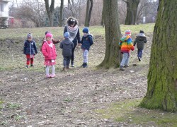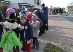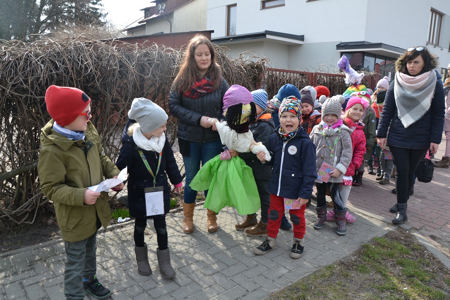 W pierwszy dzień wiosny nasze najstarsze grupy wybrały się z wcześniej przygotowanymi Marzannami na wyprawę edukacyjną w celu pożegnania zimy i odnalezienia pierwszych oznak wiosny. Udało się nam odnaleźć krokusy, przebiśniegi oraz pączki na drzewach. Dzieci były bardzo zaangażowane a znalezienie nawet najmniejszej oznaki nowej pory roku sprawiało wiele radości.