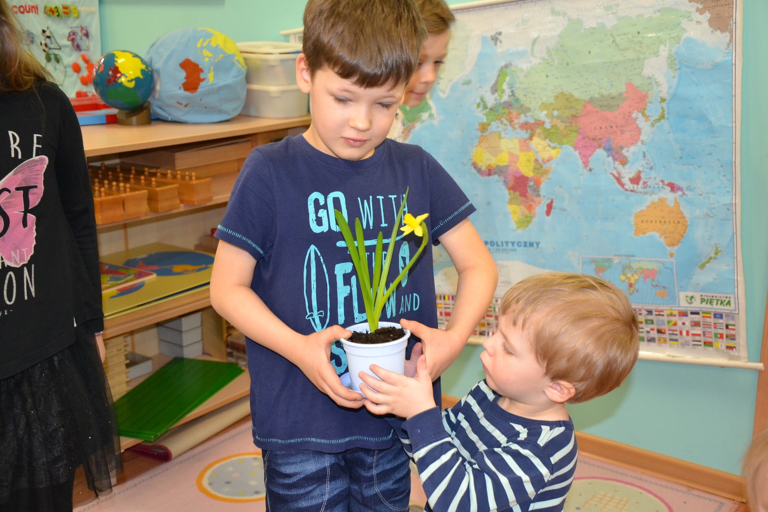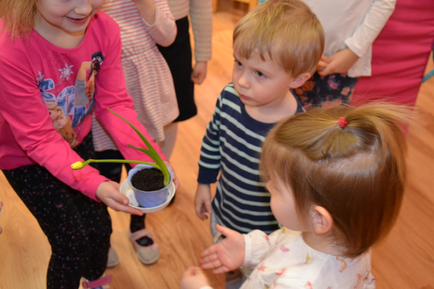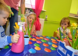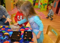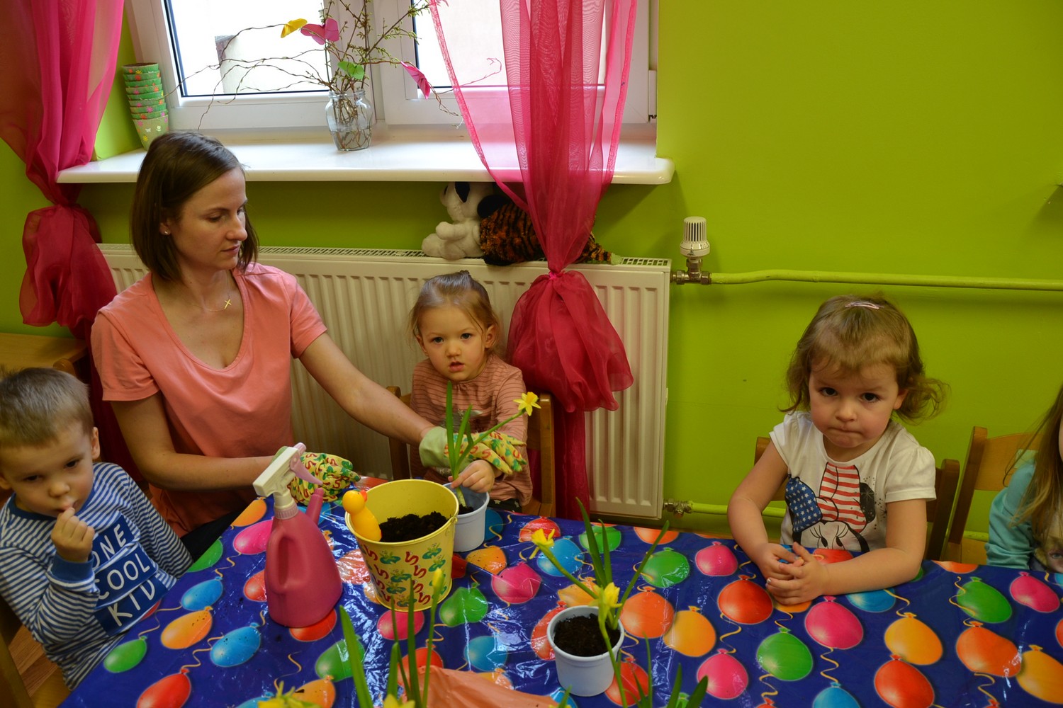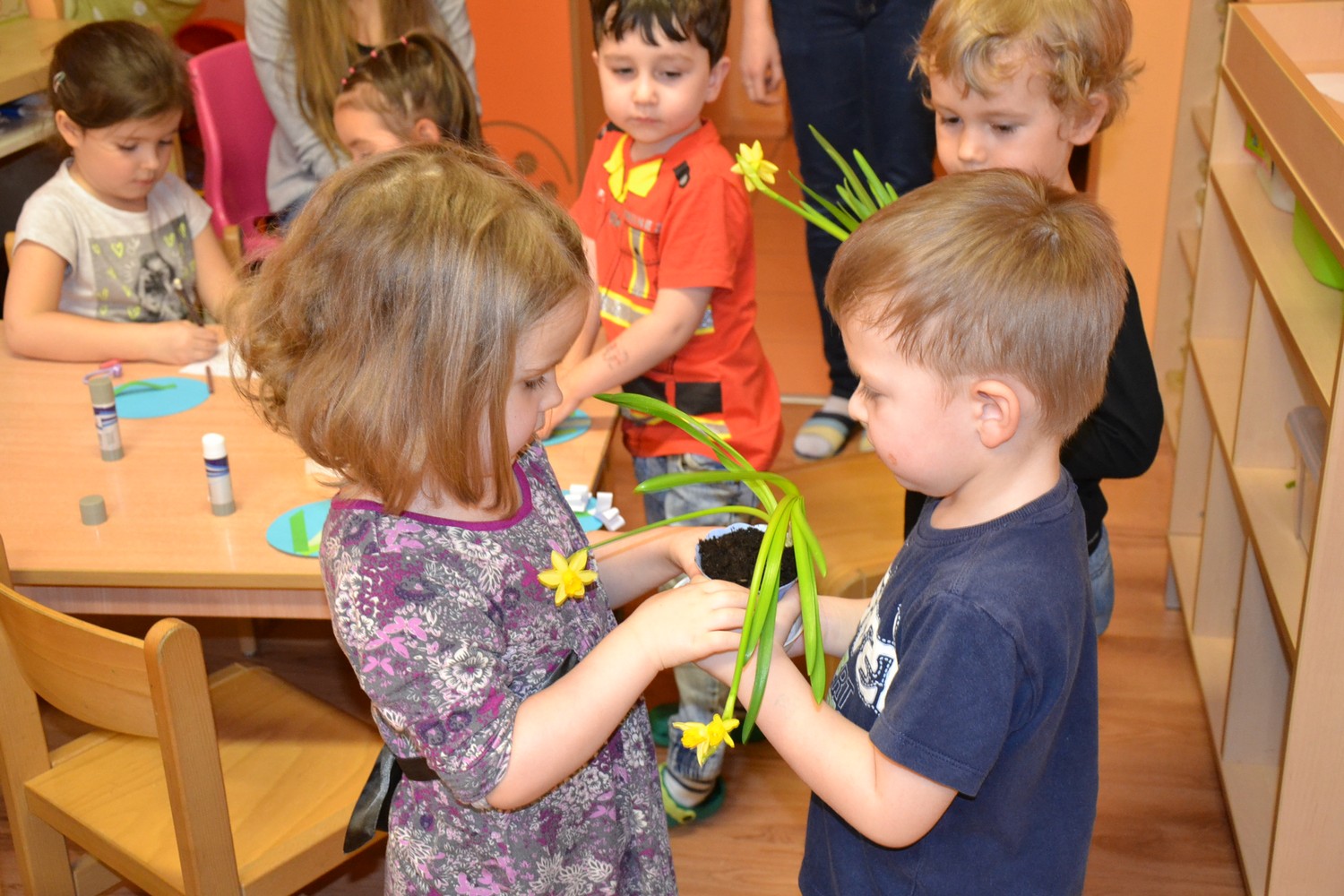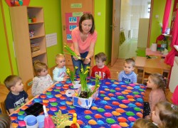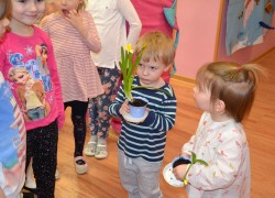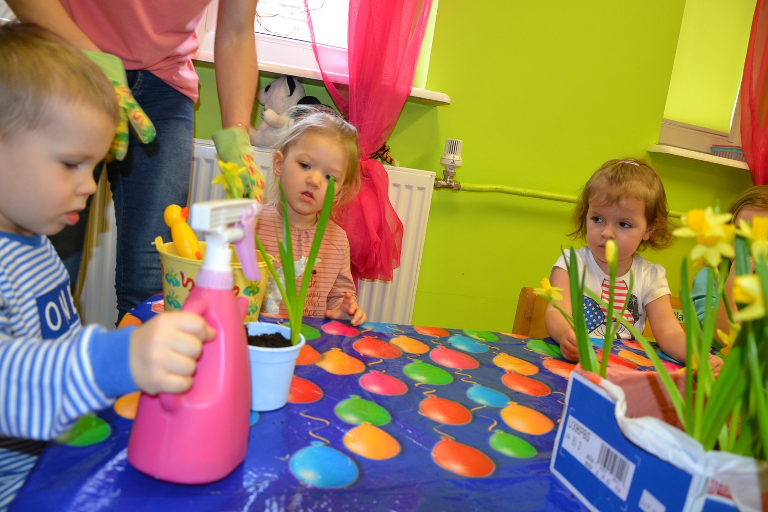 Dzieci z grupy I bardzo chęt­nie włą­czyły się w prace zwią­zane z zakła­da­niem zie­lo­nego ogródka w naszej sali. Sadziły żon­kile, cebulki na szczy­pio­rek oraz nasiona kopru i dyni. Posa­dzo­nymi kwia­tami obda­ro­wały rów­nież dzieci pozo­sta­łych grup.
