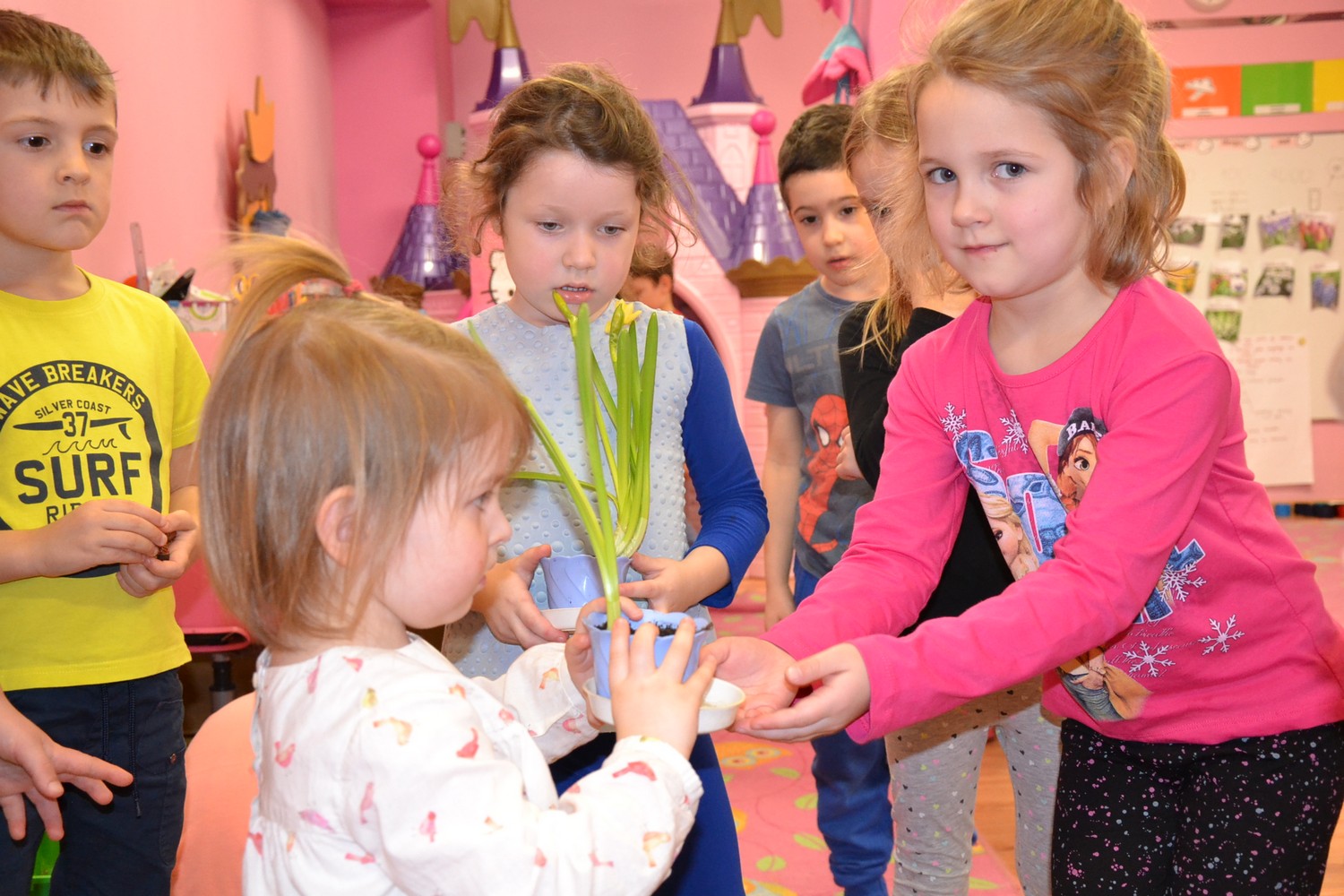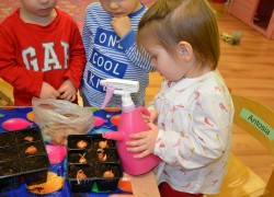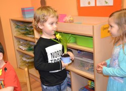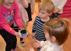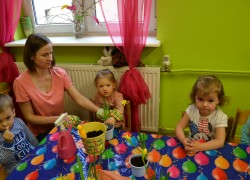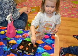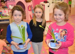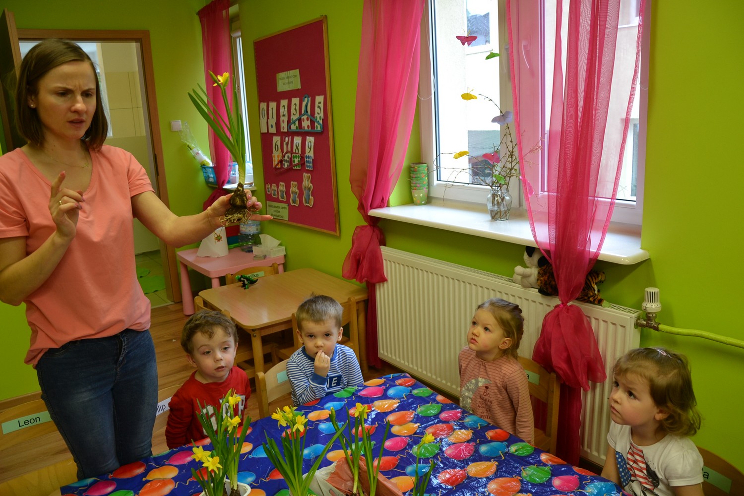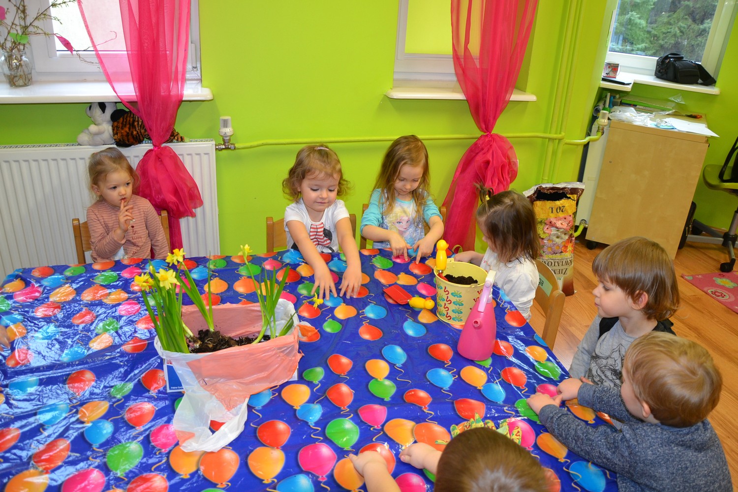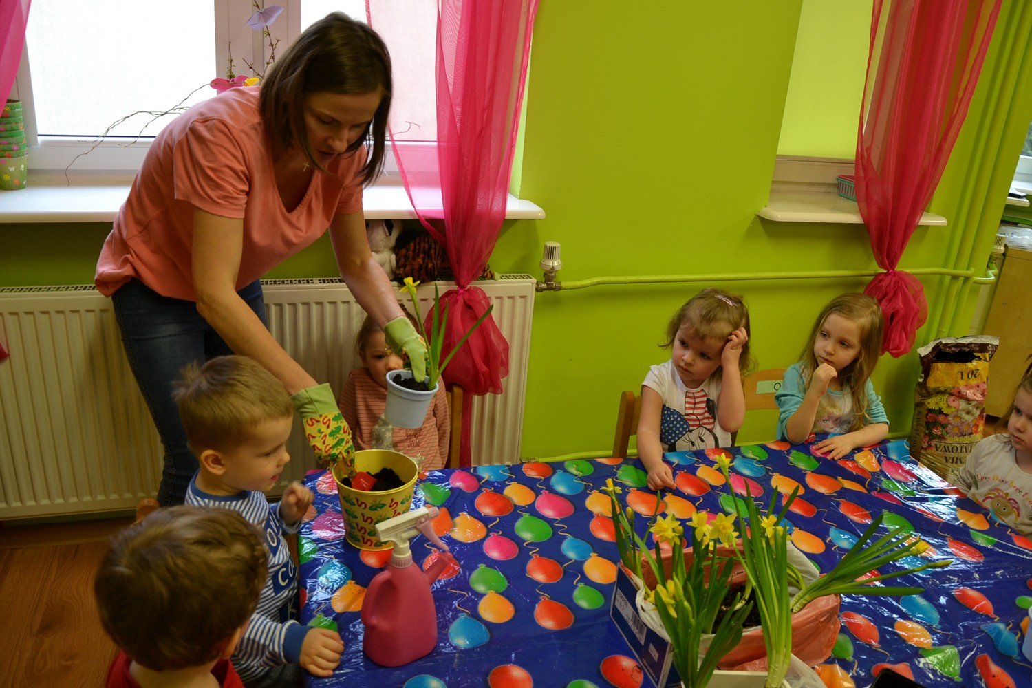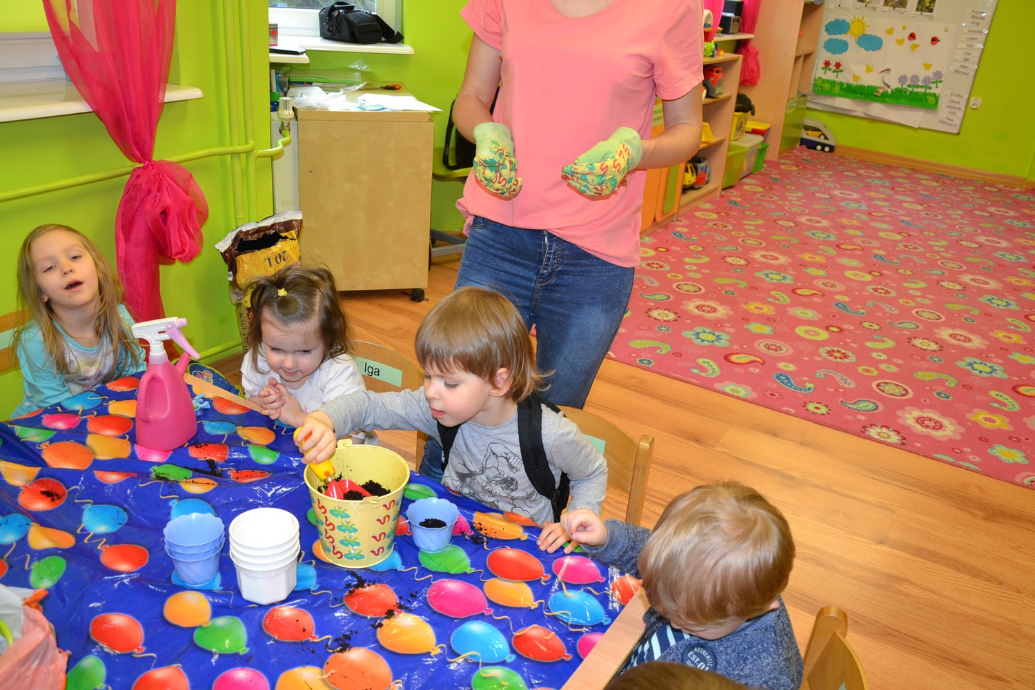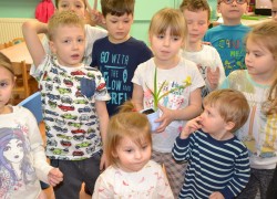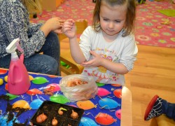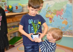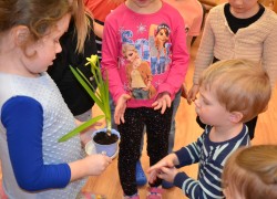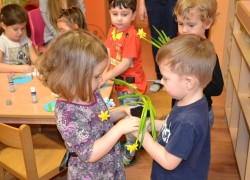 Dzieci z grupy I bardzo chęt­nie włą­czyły się w prace zwią­zane z zakła­da­niem zie­lo­nego ogródka w naszej sali. Sadziły żon­kile, cebulki na szczy­pio­rek oraz nasiona kopru i dyni. Posa­dzo­nymi kwia­tami obda­ro­wały rów­nież dzieci pozo­sta­łych grup.