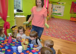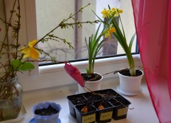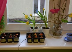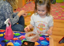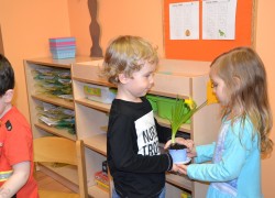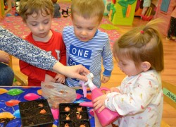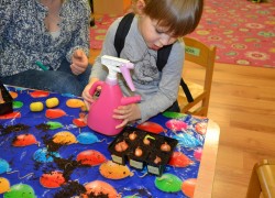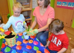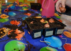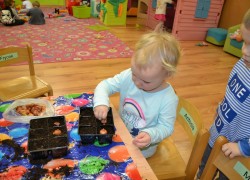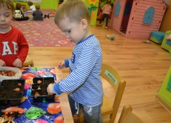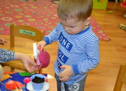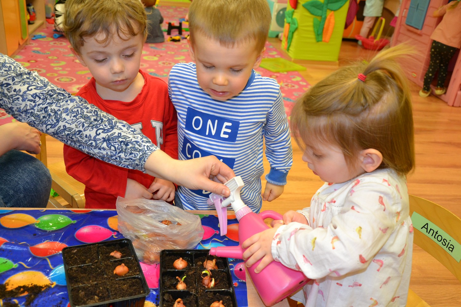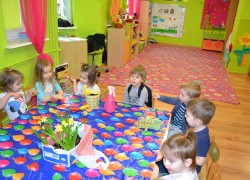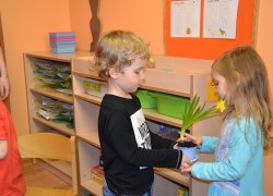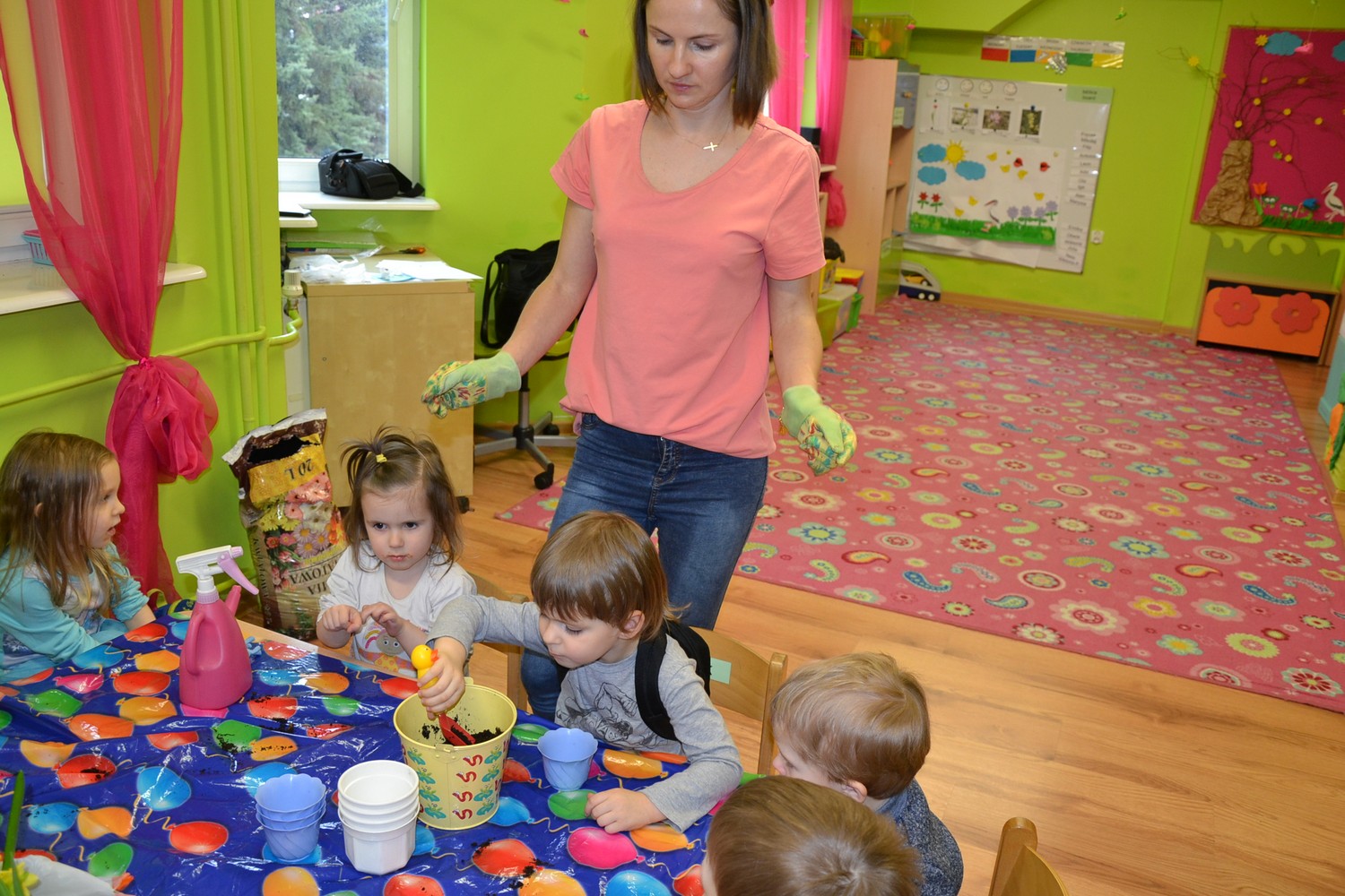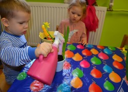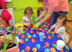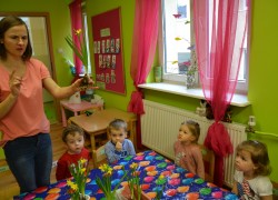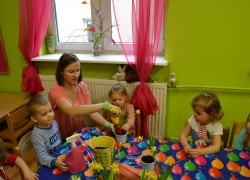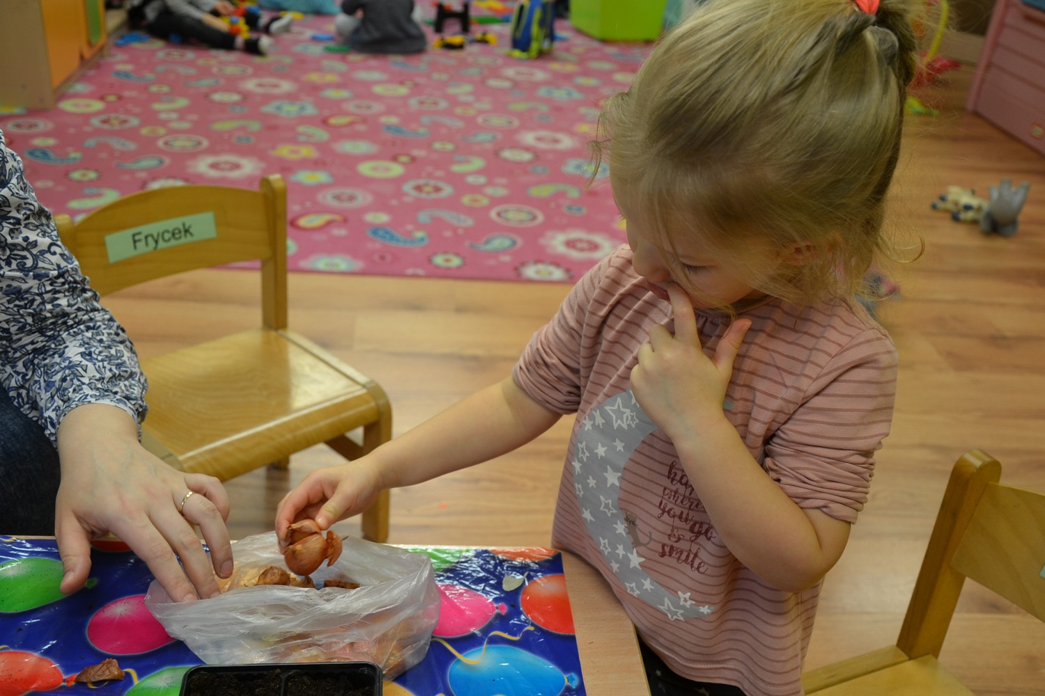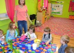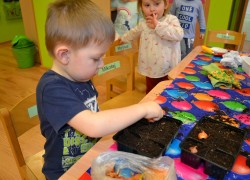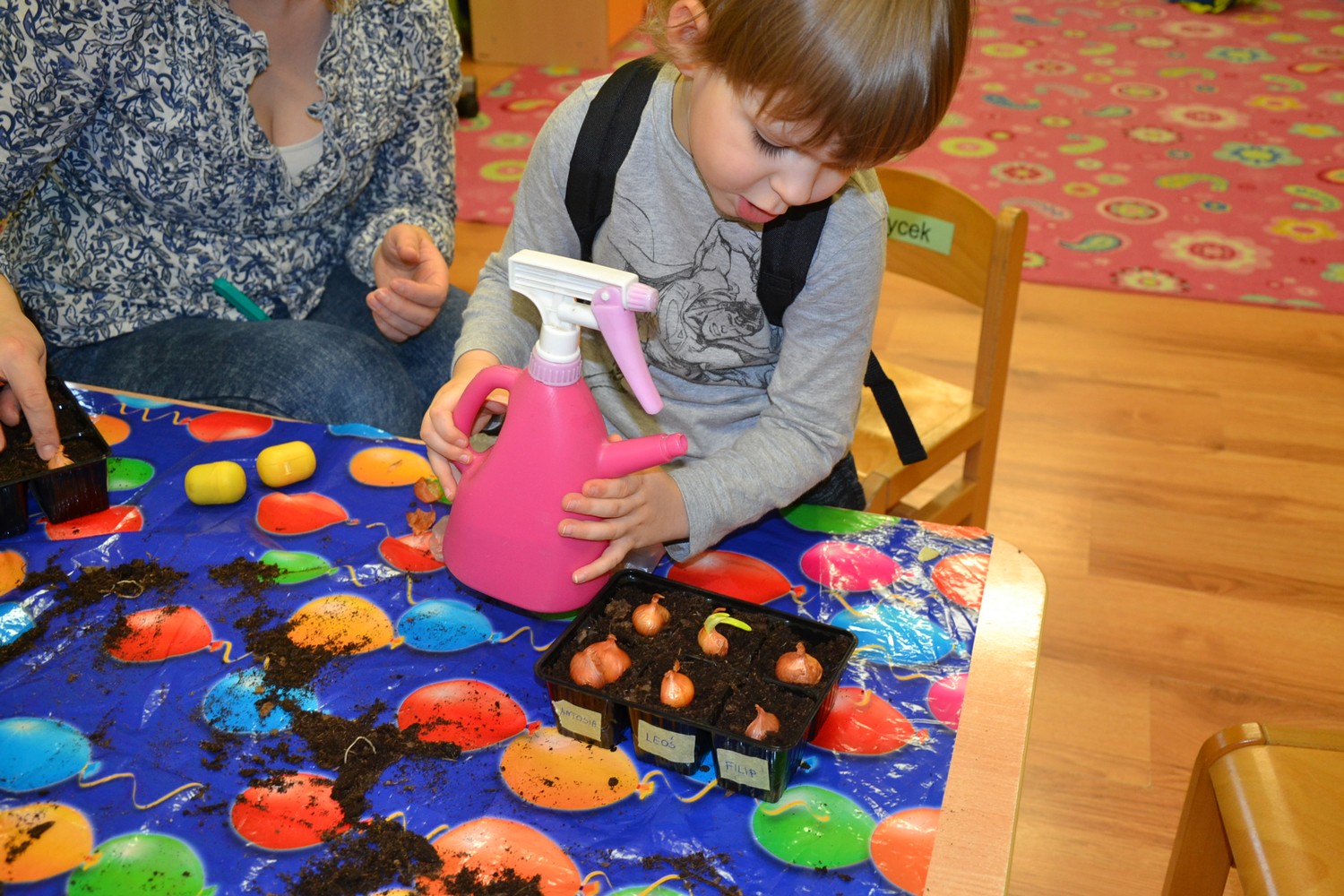 Dzieci z grupy I bardzo chęt­nie włą­czyły się w prace zwią­zane z zakła­da­niem zie­lo­nego ogródka w naszej sali. Sadziły żon­kile, cebulki na szczy­pio­rek oraz nasiona kopru i dyni. Posa­dzo­nymi kwia­tami obda­ro­wały rów­nież dzieci pozo­sta­łych grup.