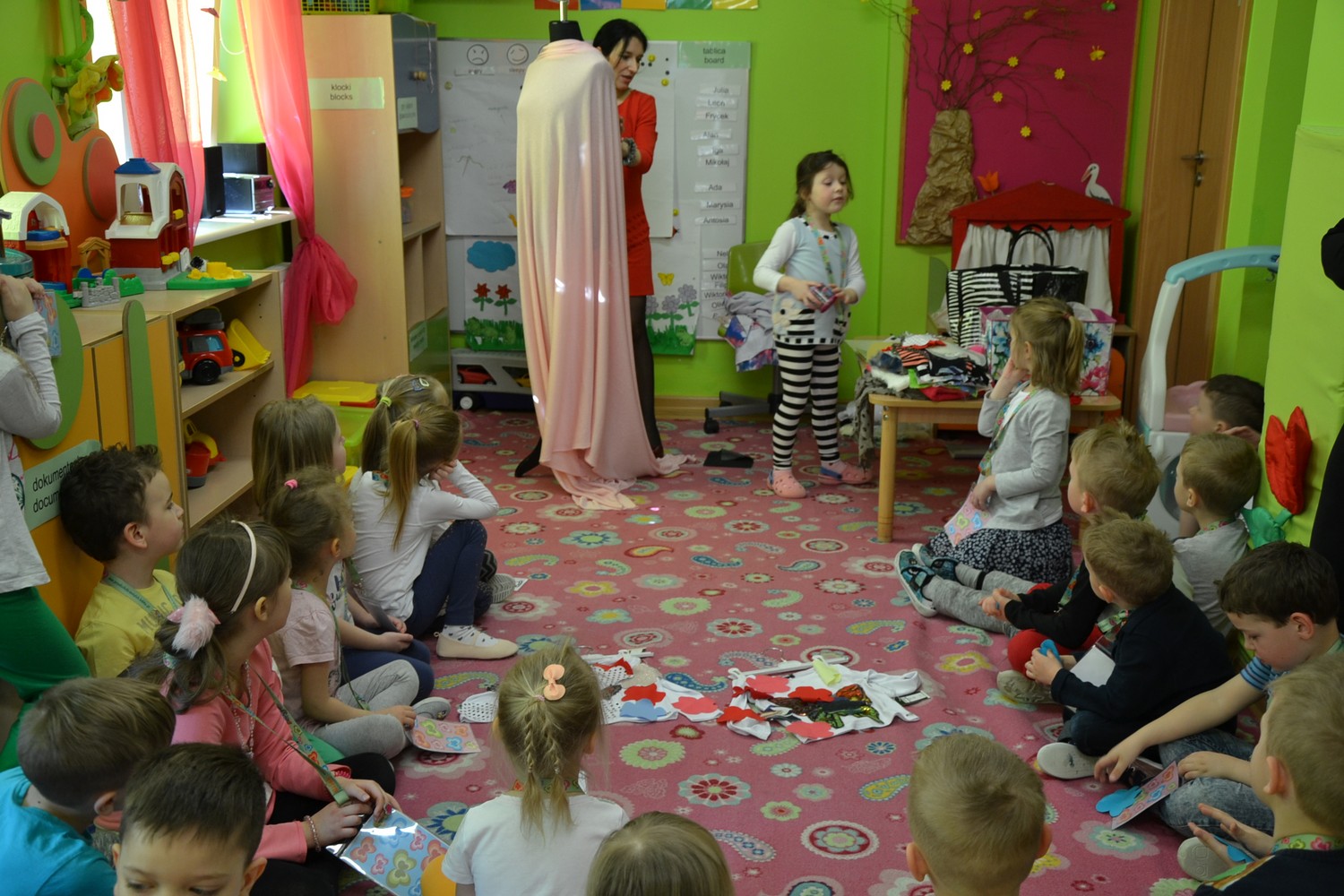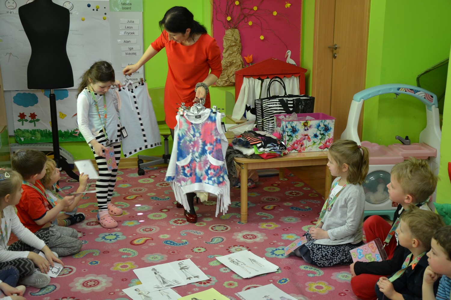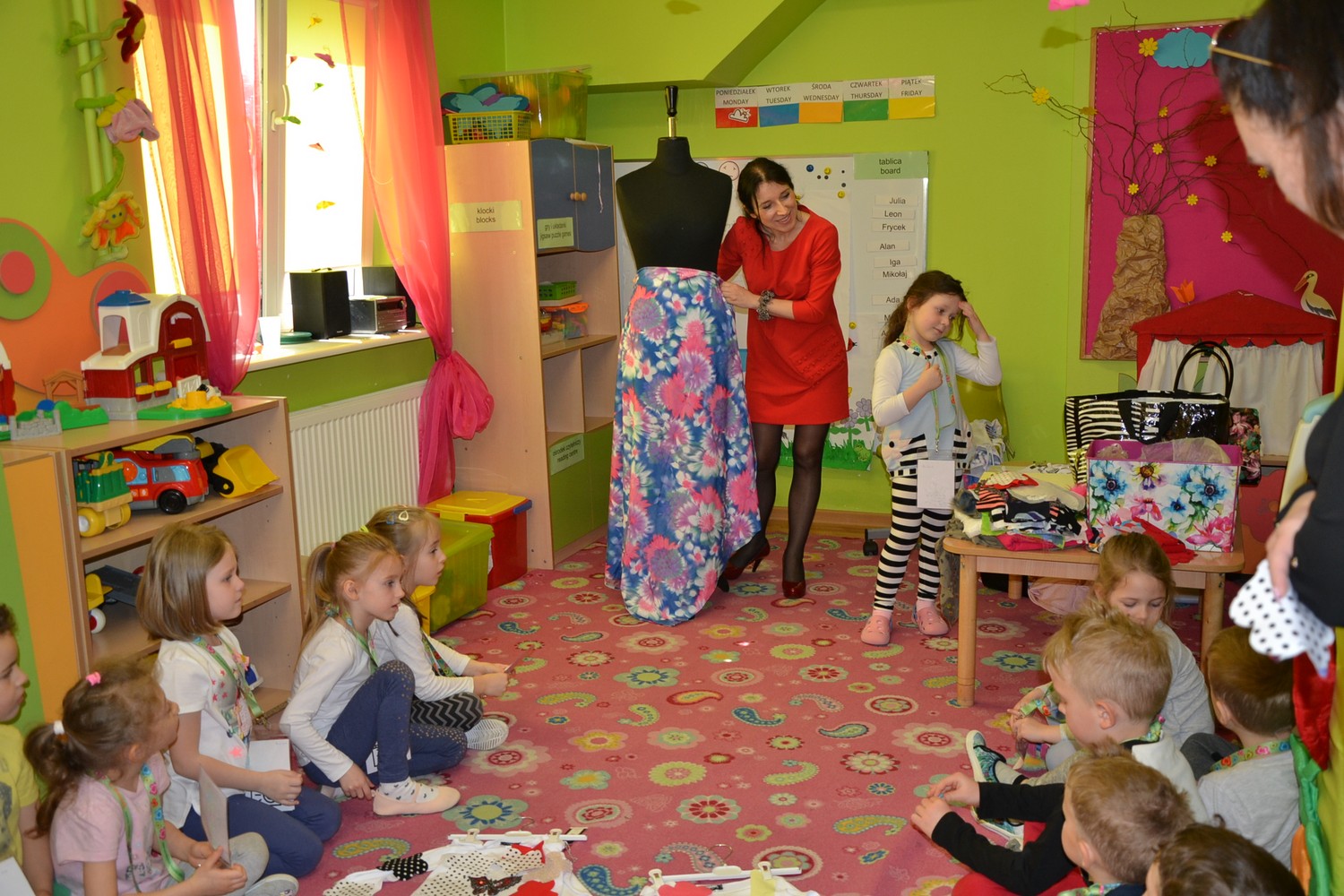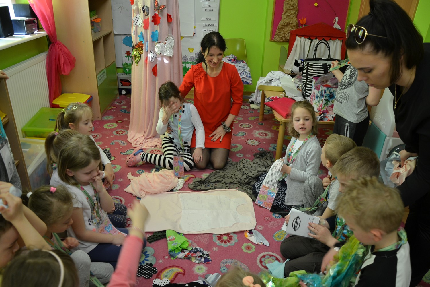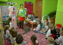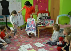 Podczas realizacji tematu dotyczącego mody oraz pracy krawcowej zostało zorganizowane spotkanie z mamą Tosi z III grupy. Powiedziała ona dzieciom na czym polega praca projektantki mody oraz jak tworzy się ubrania. Dzieci dowiedziały się, czym jest pokaz mody oraz w jaki sposób prezentuje się na nim stroje. Serdecznie dziękujemy mamie Tosi za przeprowadzenie ciekawych zajęć.