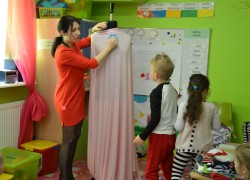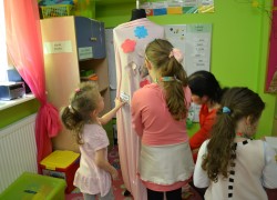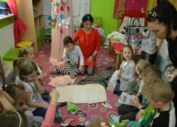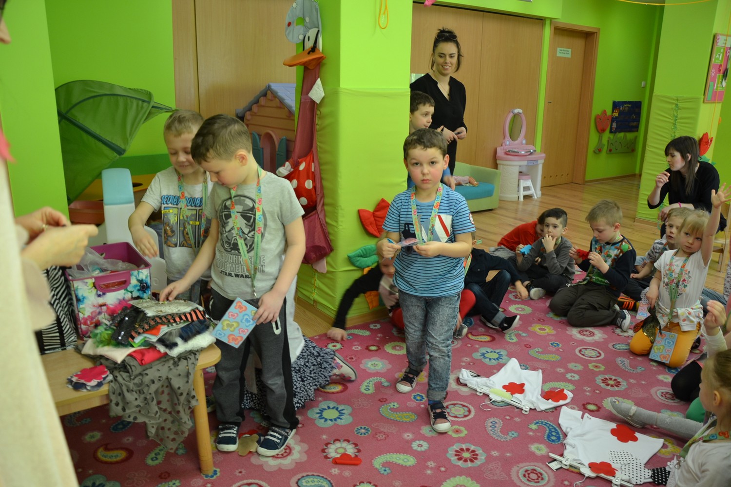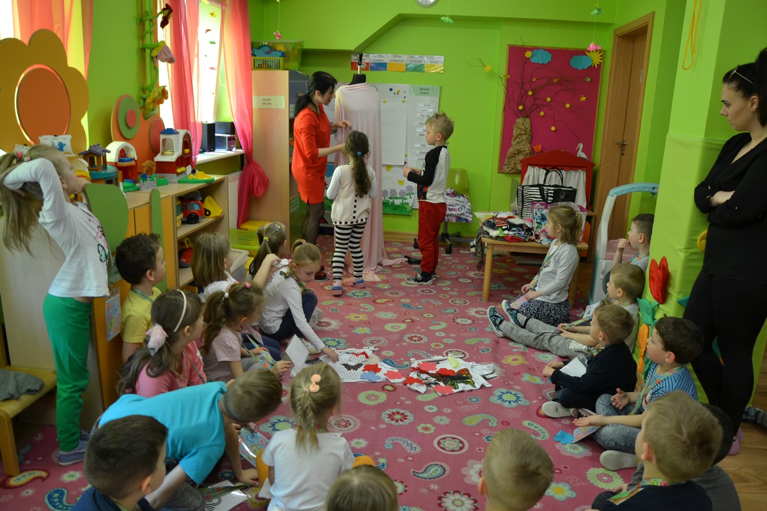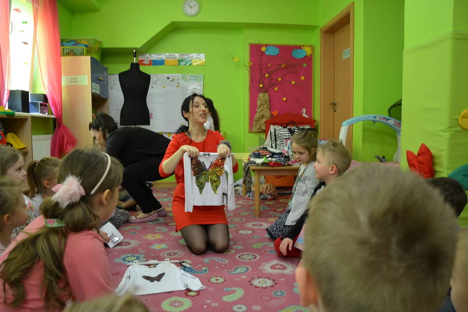 Podczas realizacji tematu dotyczącego mody oraz pracy krawcowej zostało zorganizowane spotkanie z mamą Tosi z III grupy. Powiedziała ona dzieciom na czym polega praca projektantki mody oraz jak tworzy się ubrania. Dzieci dowiedziały się, czym jest pokaz mody oraz w jaki sposób prezentuje się na nim stroje. Serdecznie dziękujemy mamie Tosi za przeprowadzenie ciekawych zajęć.
