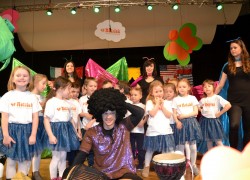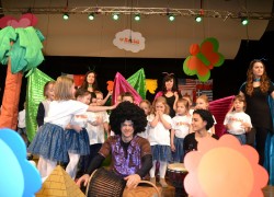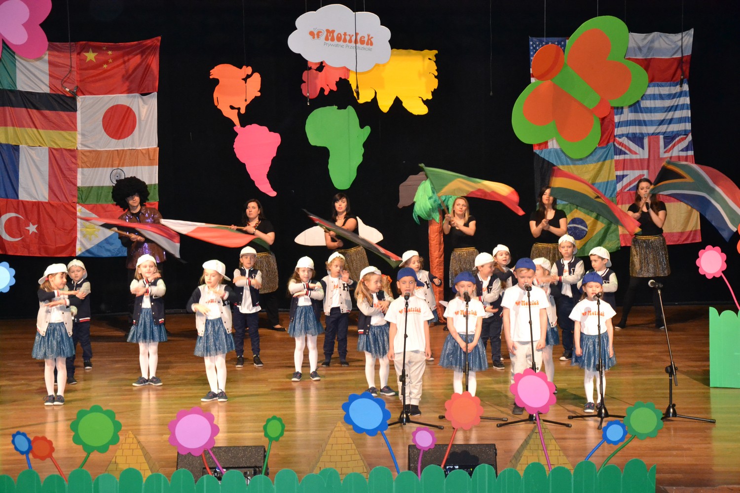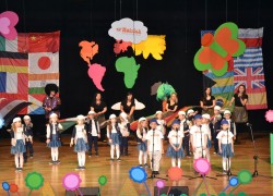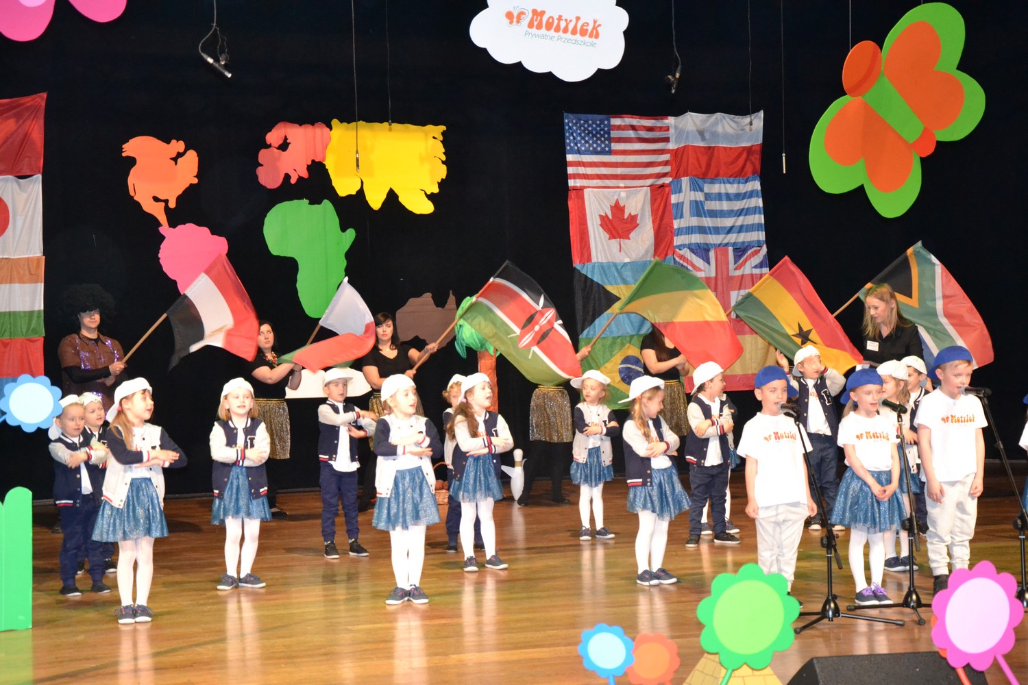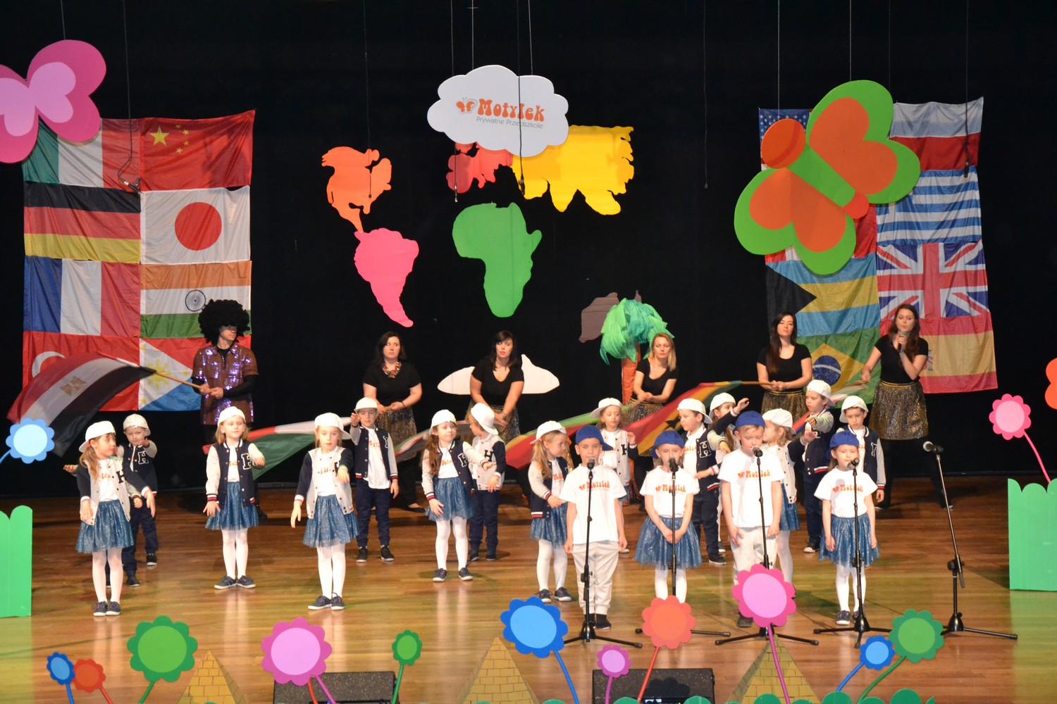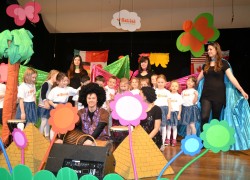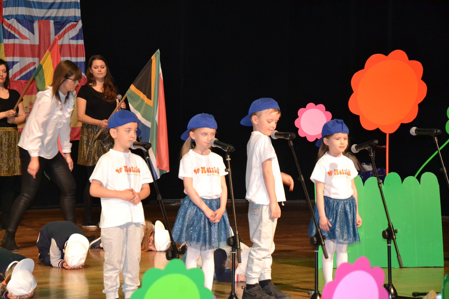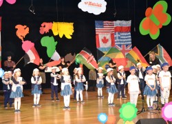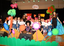Przy mikro­fo­nach sta­nęli sami chłopcy, zaśpie­wali bez tremy, męskimi gło­sami na Prze­glą­dzie Przed­szkol­nej Pio­senki Angiel­skiej.