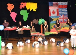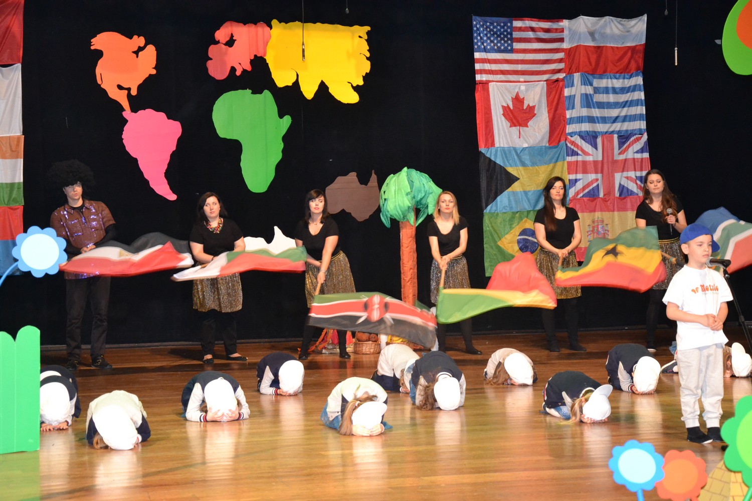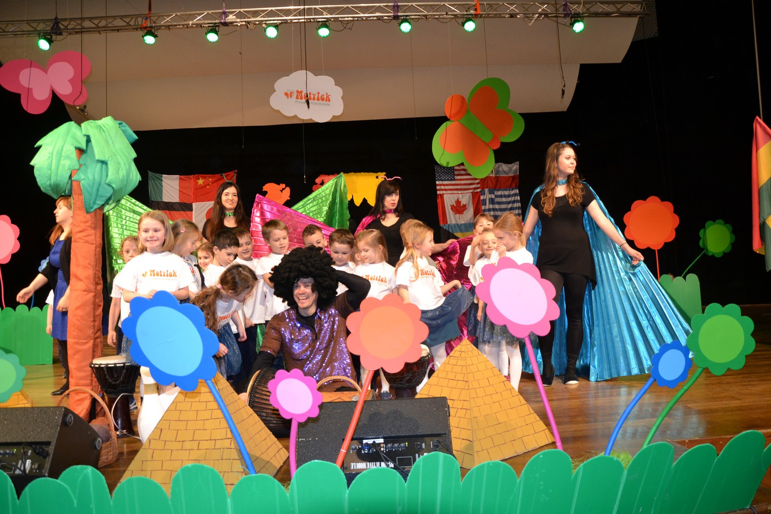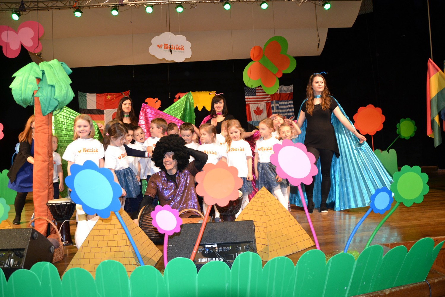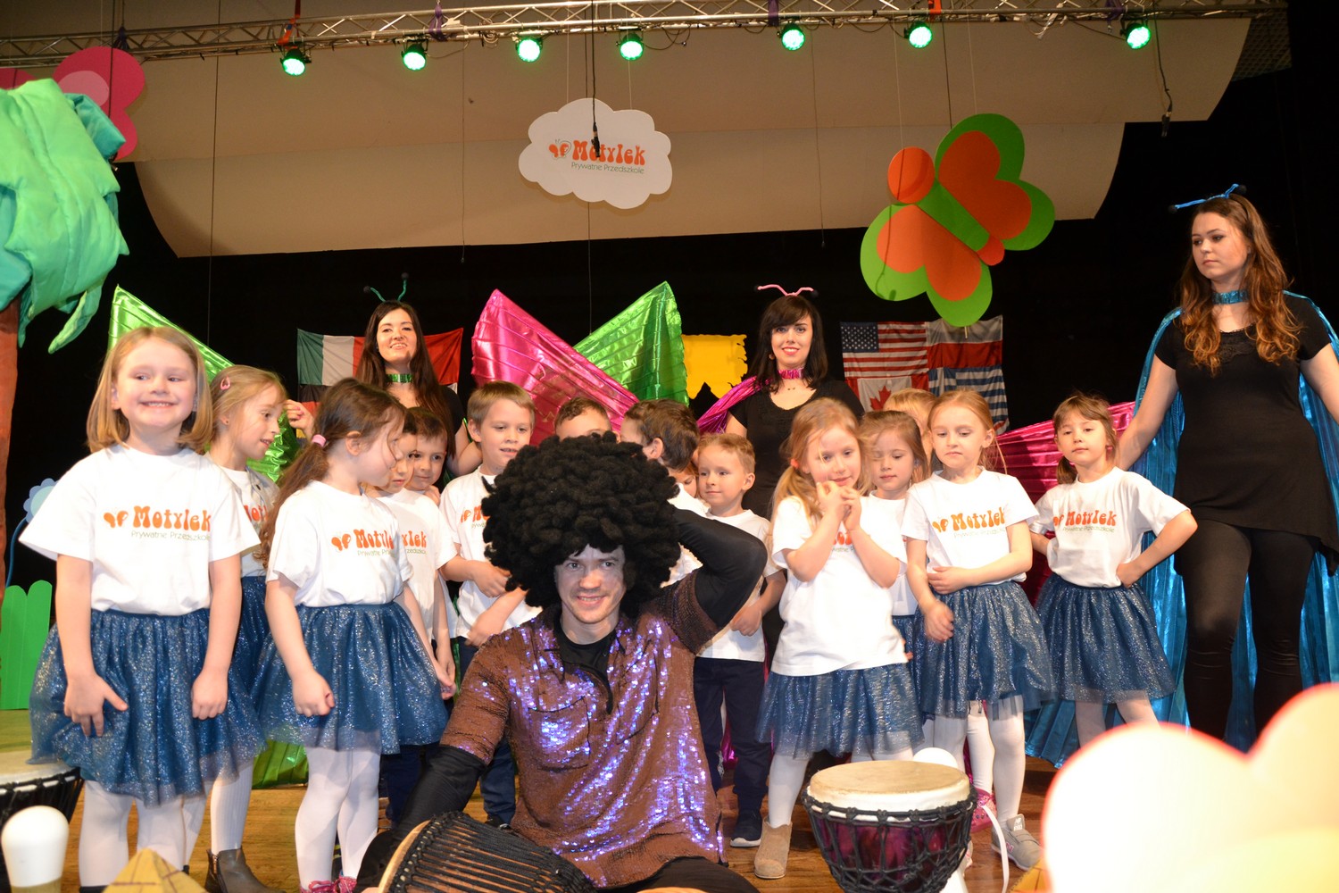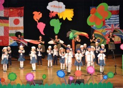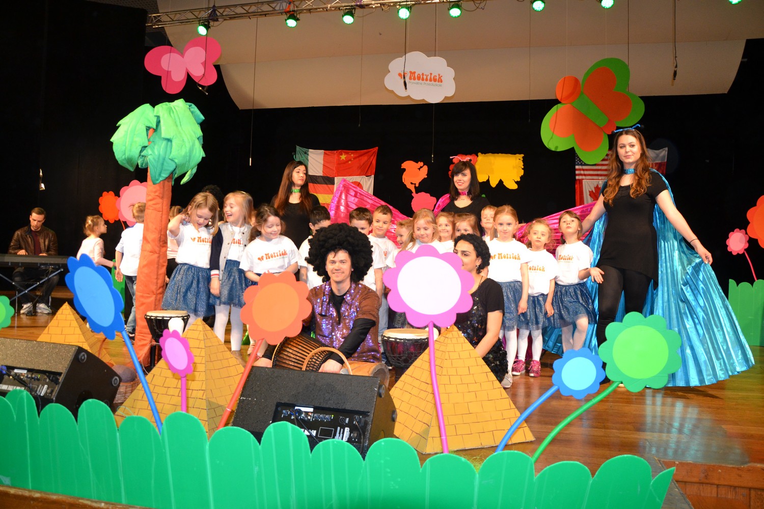 Przy mikro­fo­nach sta­nęli sami chłopcy, zaśpie­wali bez tremy, męskimi gło­sami na Prze­glą­dzie Przed­szkol­nej Pio­senki Angiel­skiej.