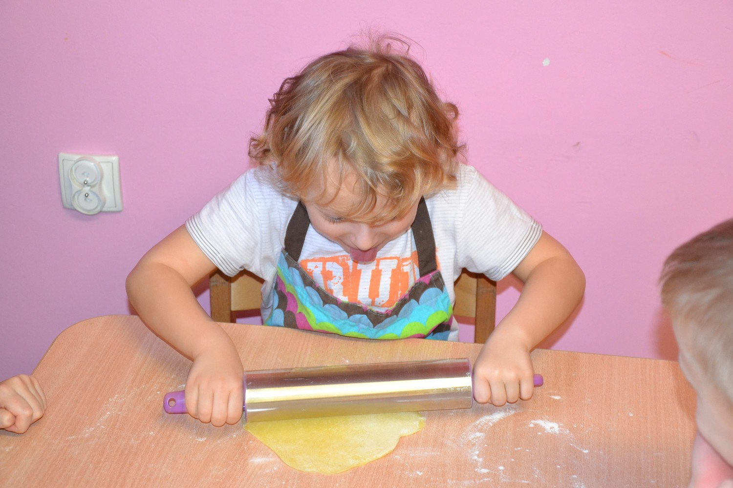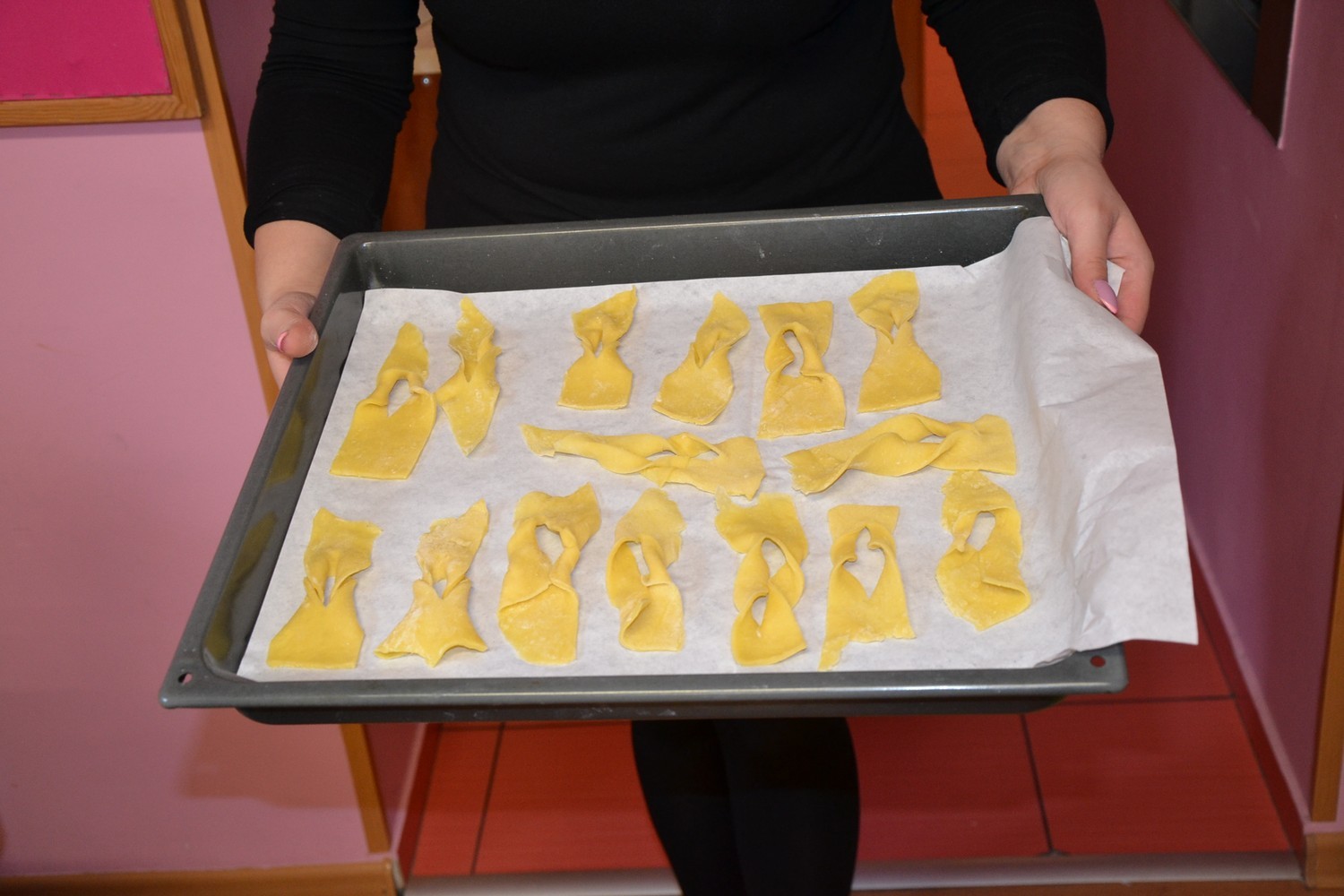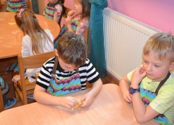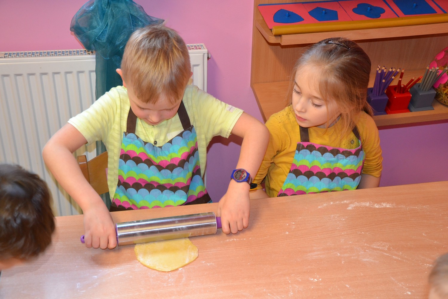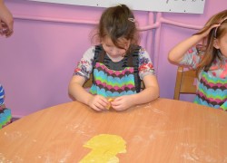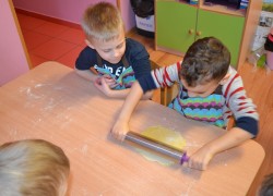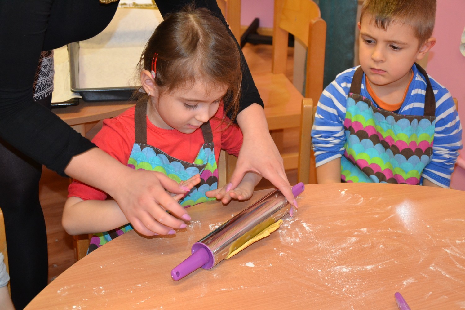 W tłusty czwartek w naszej grupie dzieci upiekły faworki. Pani Grażynka przygotowała nam wcześniej w kuchni ciasto, a my podzieliliśmy je na mniejsze kawałki. Starannie rozwałkowaliśmy je i wycieliśmy z niego kawałki, z których stworzyliśmy faworki. Następnie trafiły do piekarnika, a później zjedliśmy je na podwieczorek. Były pyszne!