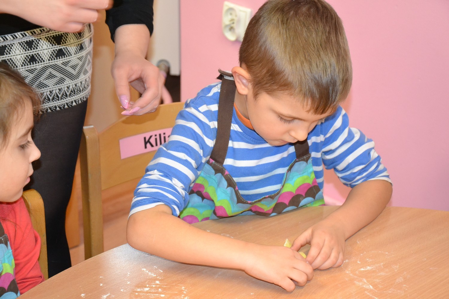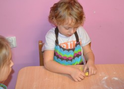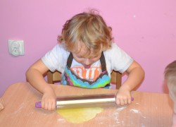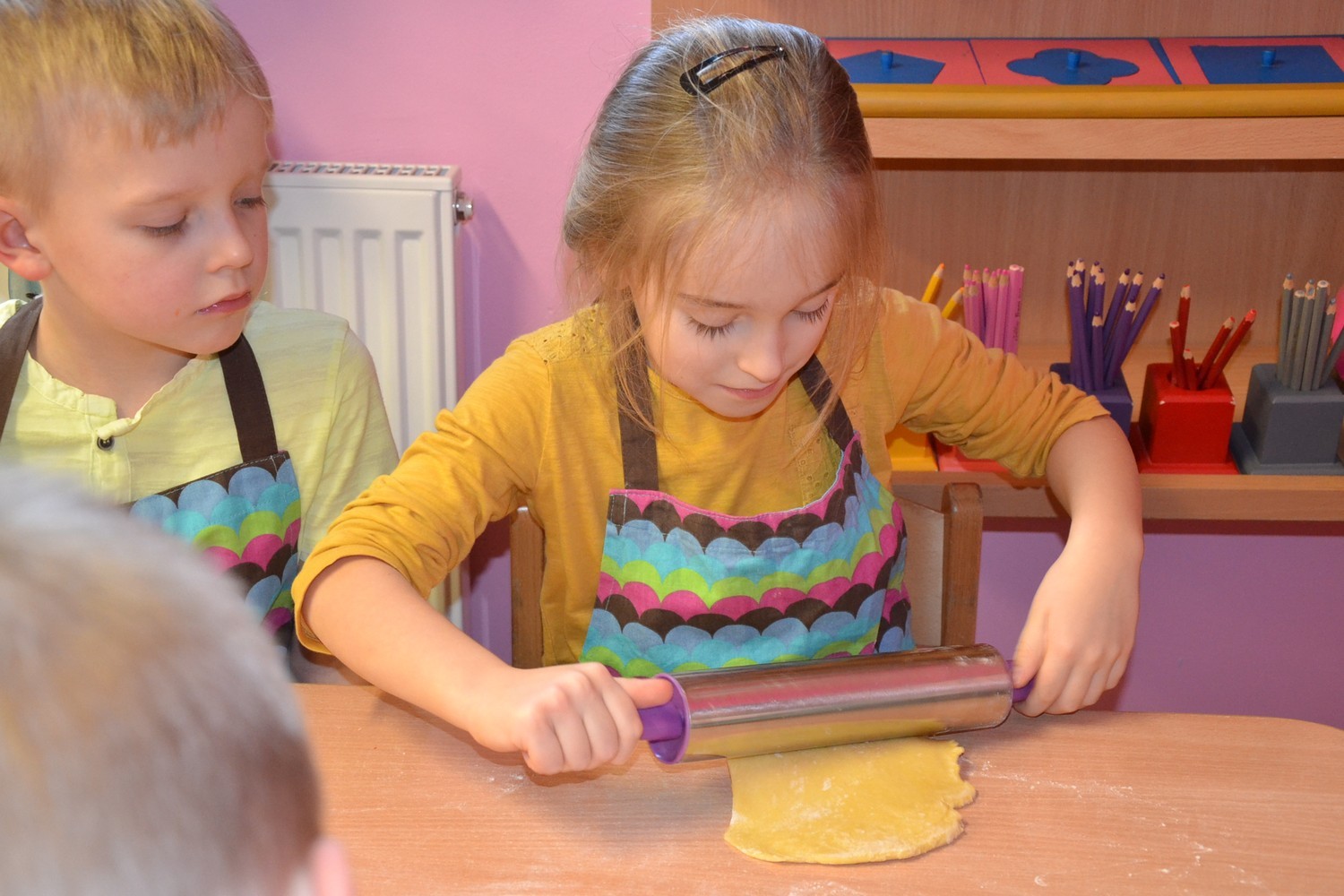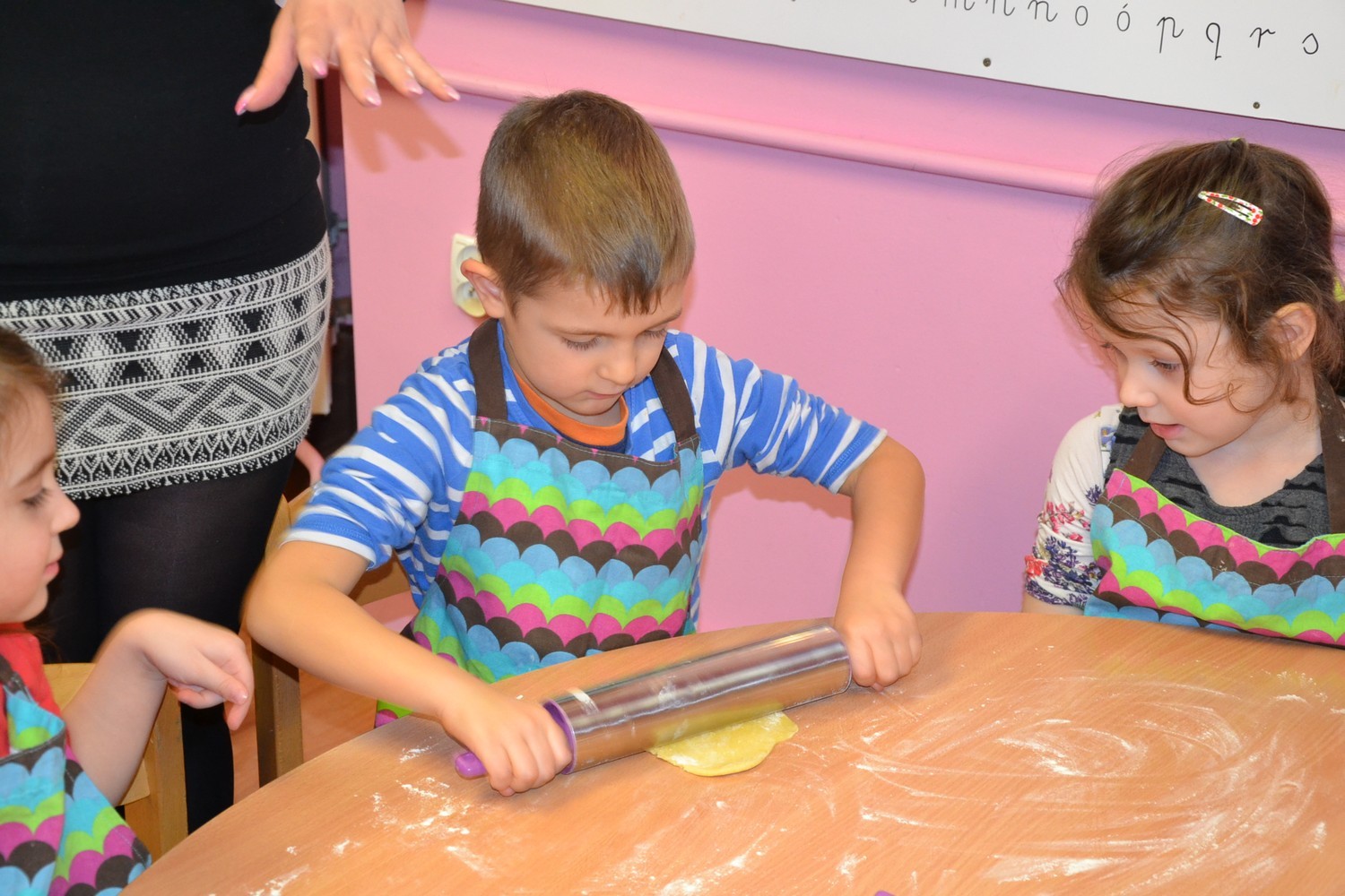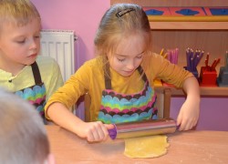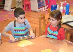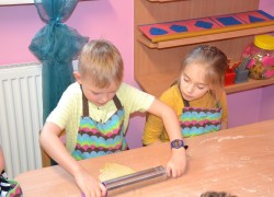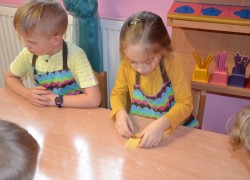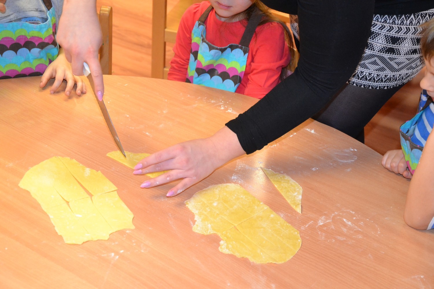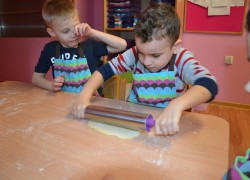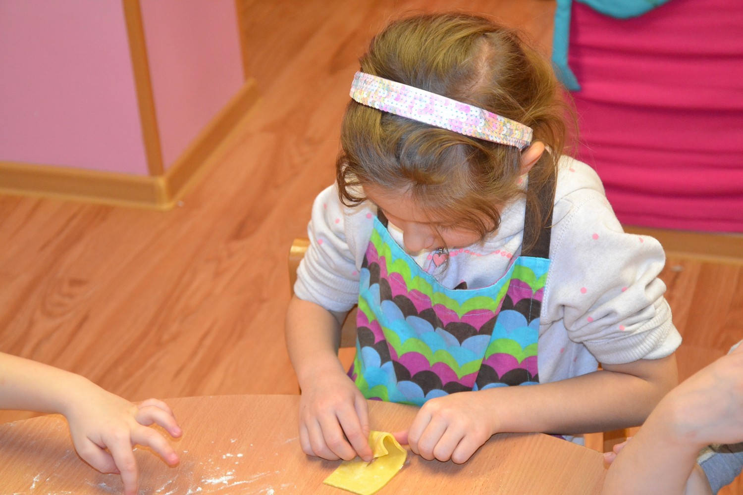 W tłusty czwartek w naszej grupie dzieci upiekły faworki. Pani Grażynka przygotowała nam wcześniej w kuchni ciasto, a my podzieliliśmy je na mniejsze kawałki. Starannie rozwałkowaliśmy je i wycieliśmy z niego kawałki, z których stworzyliśmy faworki. Następnie trafiły do piekarnika, a później zjedliśmy je na podwieczorek. Były pyszne!