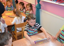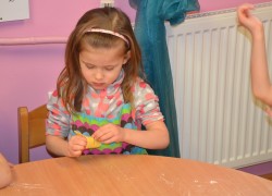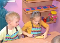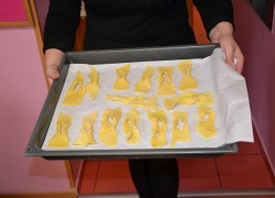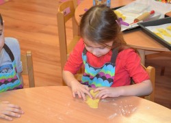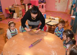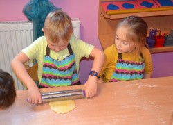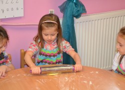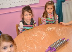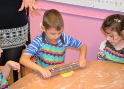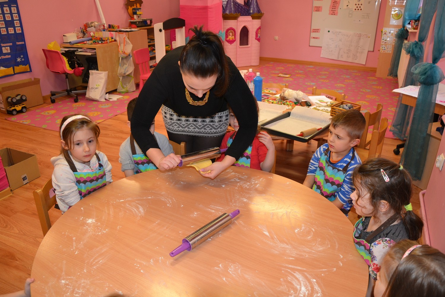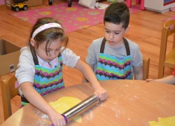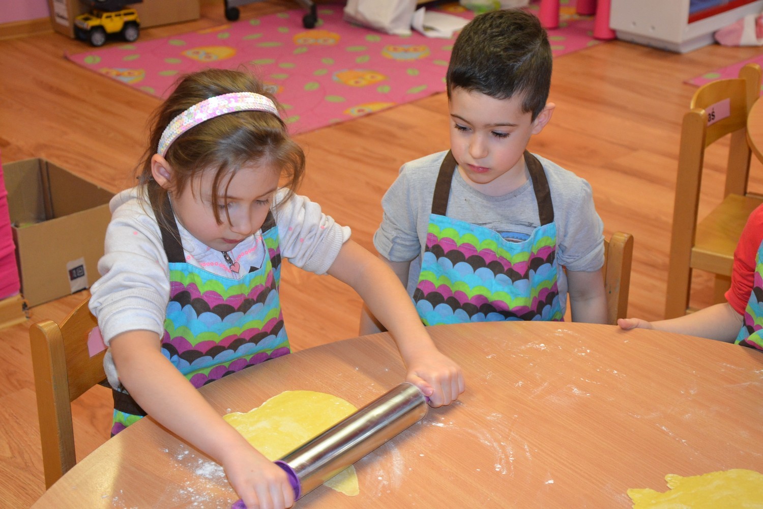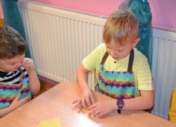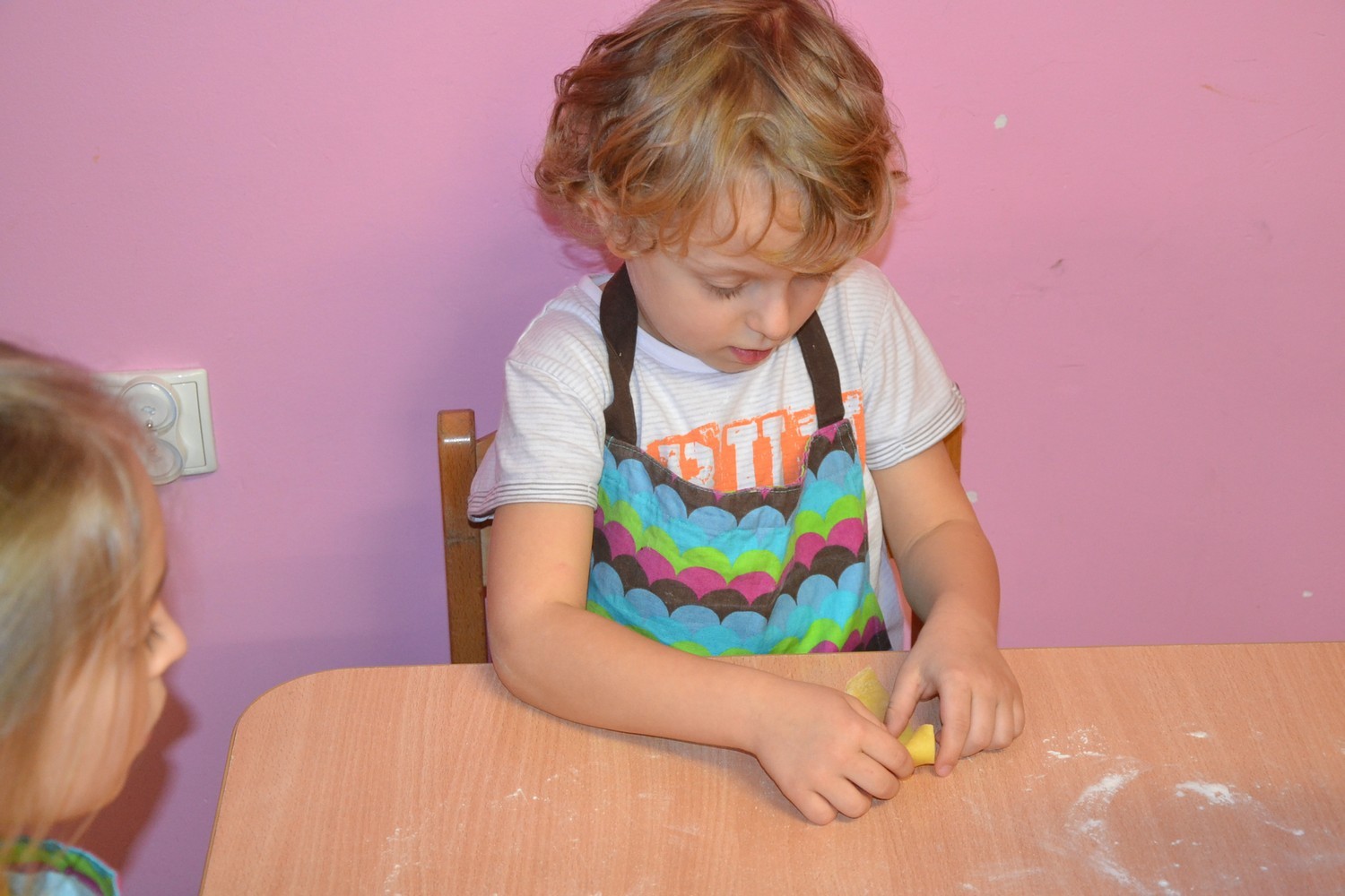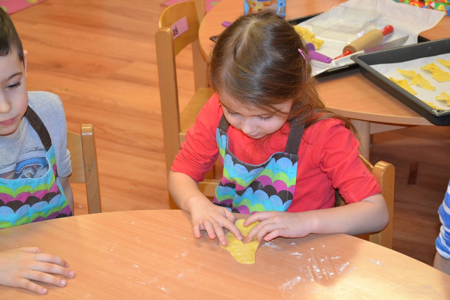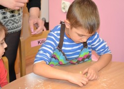 W tłusty czwartek w naszej grupie dzieci upiekły faworki. Pani Grażynka przygotowała nam wcześniej w kuchni ciasto, a my podzieliliśmy je na mniejsze kawałki. Starannie rozwałkowaliśmy je i wycieliśmy z niego kawałki, z których stworzyliśmy faworki. Następnie trafiły do piekarnika, a później zjedliśmy je na podwieczorek. Były pyszne!