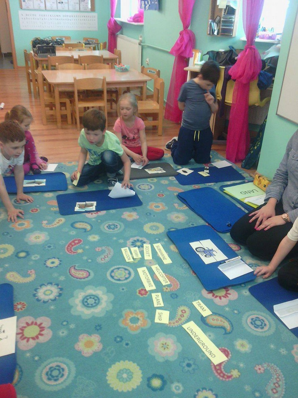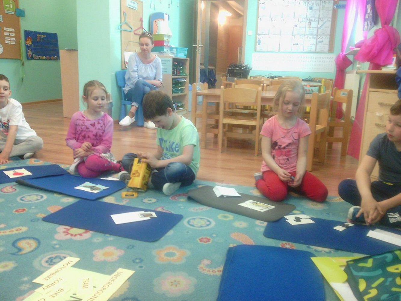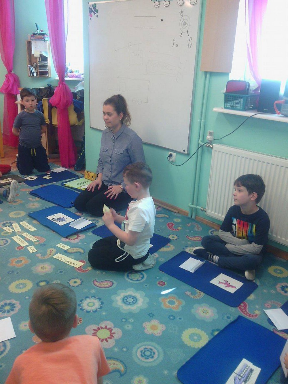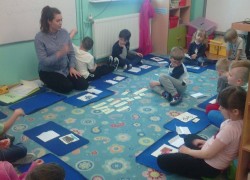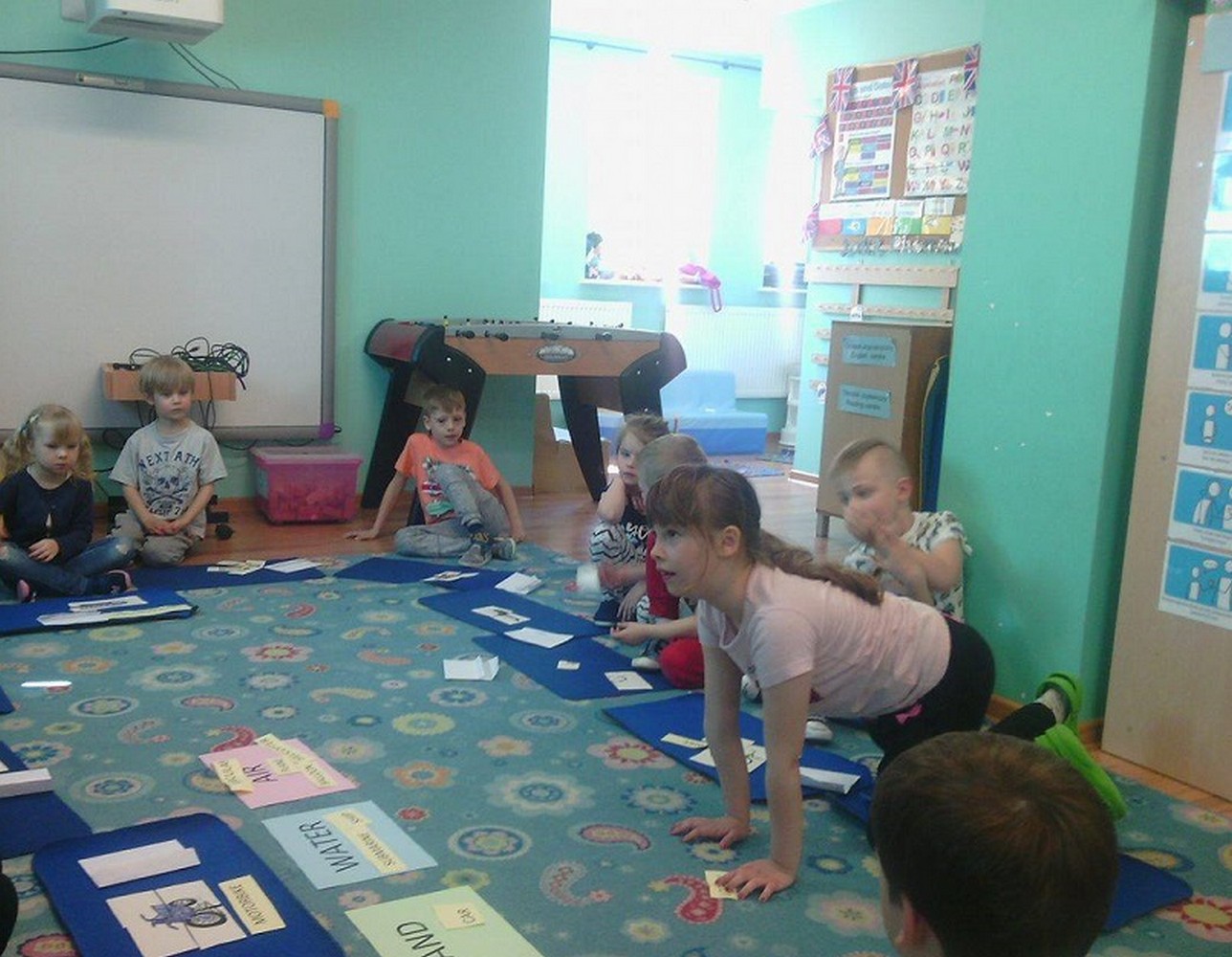 Dzieci z sali niebieskiej wzięły udział w zajęciach języka angielskiego, którym przyglądała się Pani Dyrektor Przedszkola. Grupa bardzo ładnie uczestniczyła w zabawach i niemal bezbłędnie wykonała wszystkie zadania. Podczas zajęć dzieci nie tylko powtórzyły nazwy poszczególnych środków lokomocji, ale też doskonaliły czytanie w jęz. angielskim co jest nie lada wyczynem!