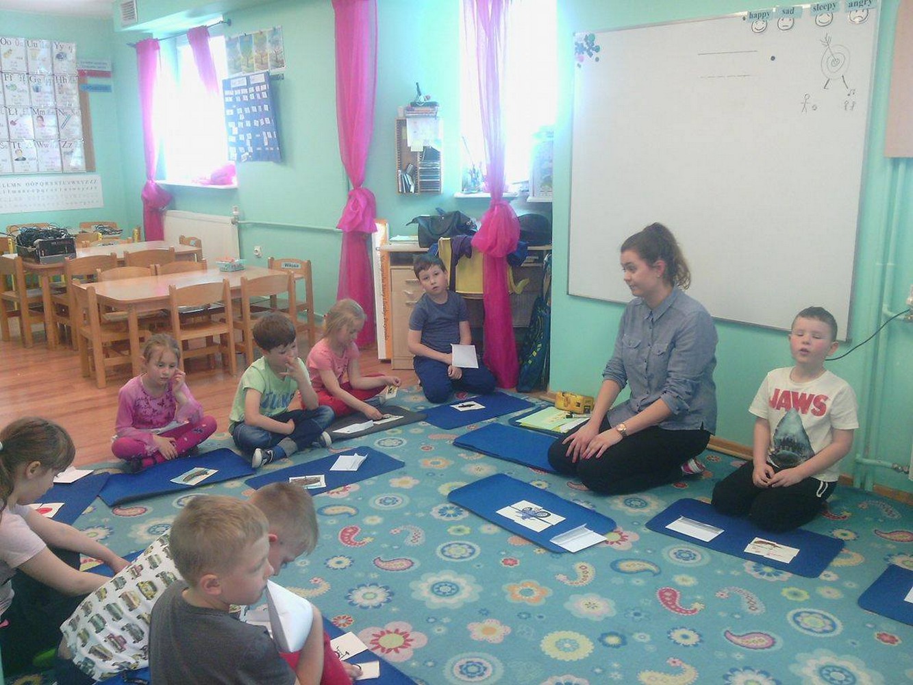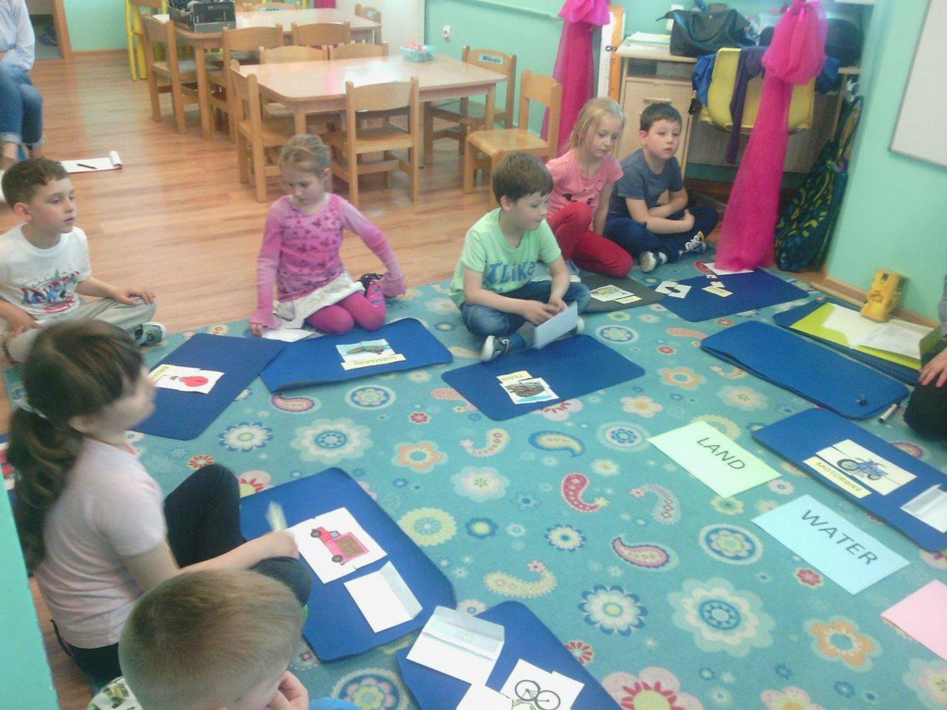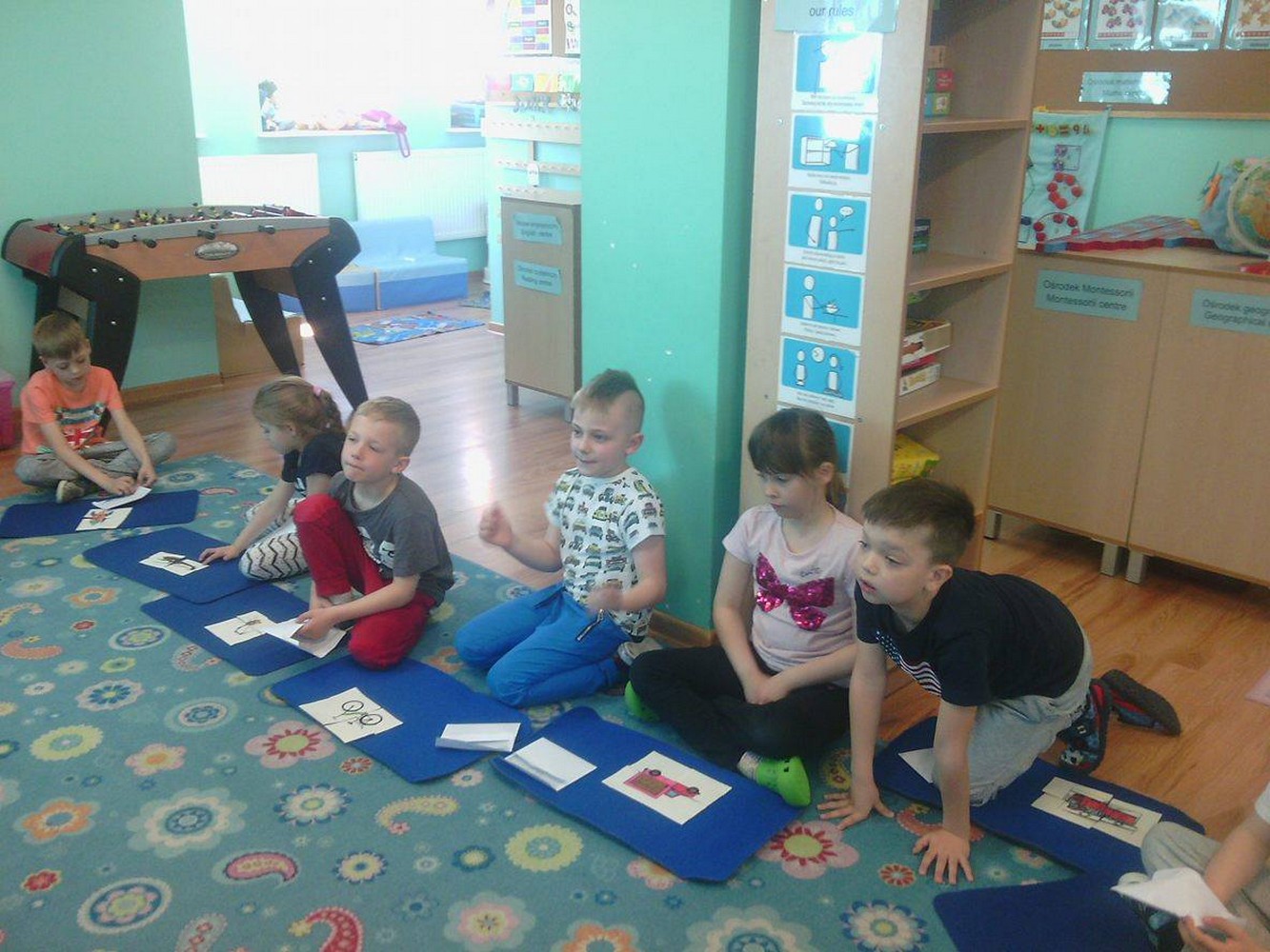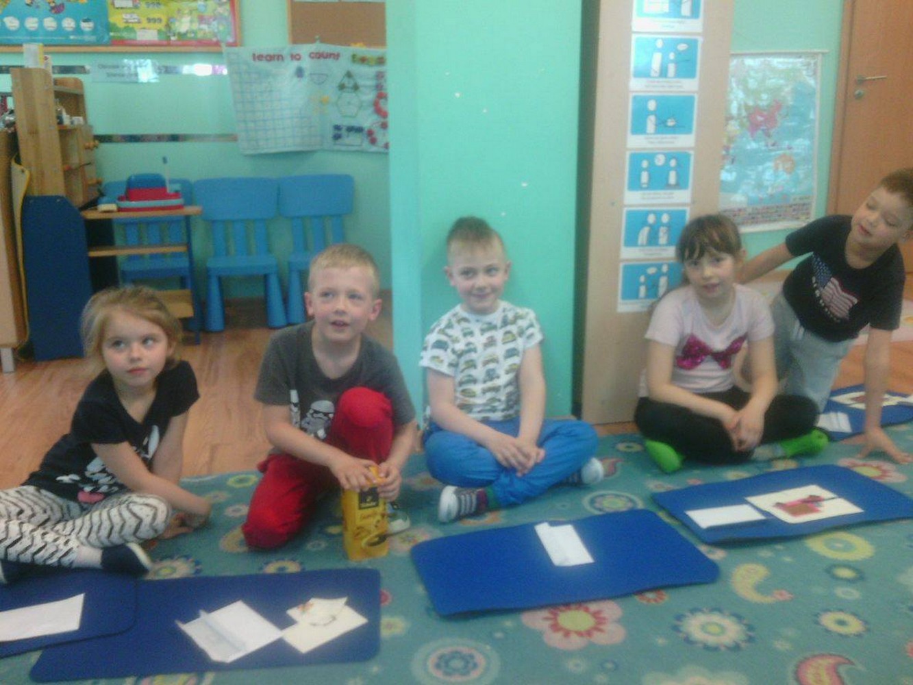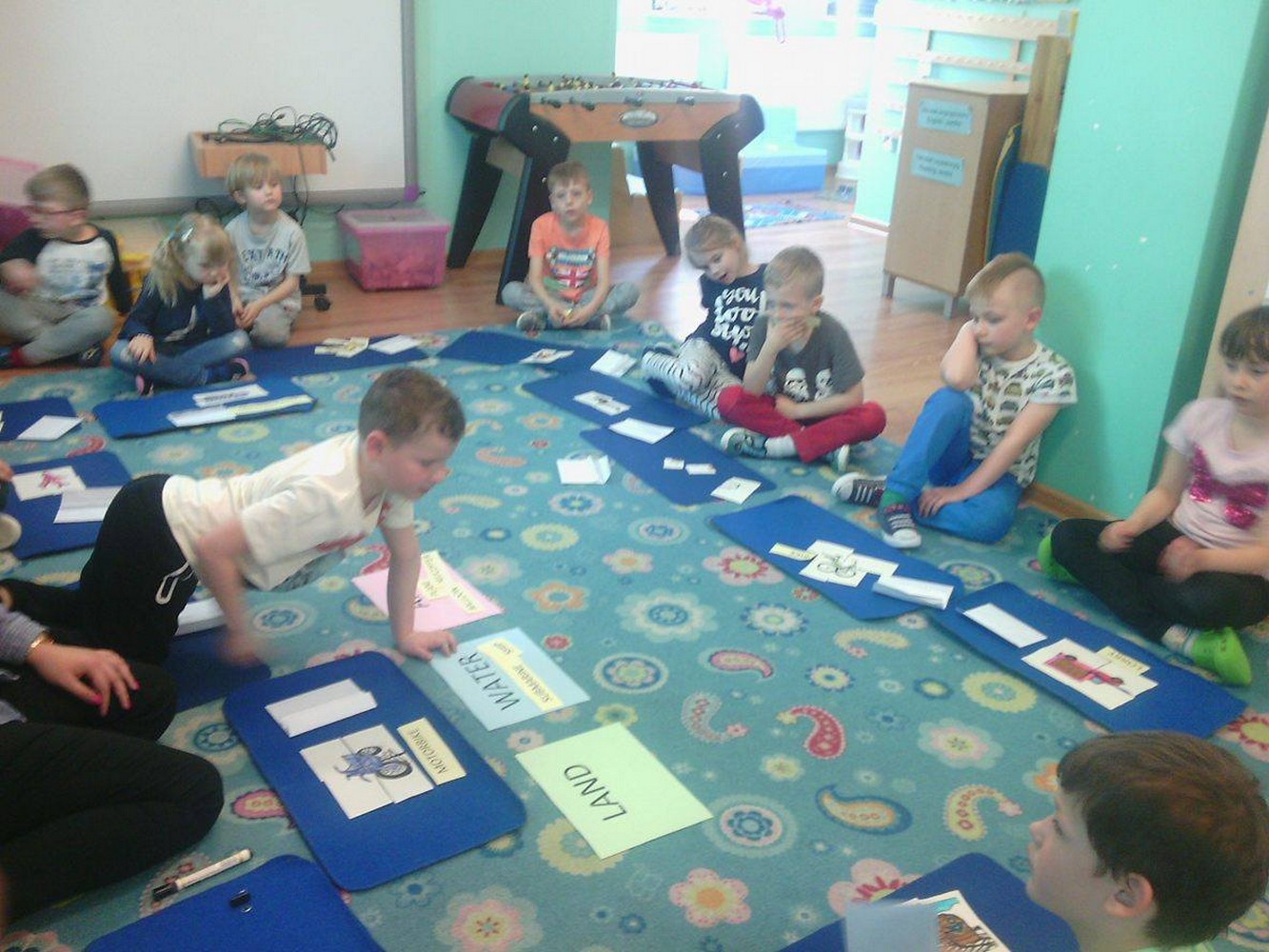 Dzieci z sali niebieskiej wzięły udział w zajęciach języka angielskiego, którym przyglądała się Pani Dyrektor Przedszkola. Grupa bardzo ładnie uczestniczyła w zabawach i niemal bezbłędnie wykonała wszystkie zadania. Podczas zajęć dzieci nie tylko powtórzyły nazwy poszczególnych środków lokomocji, ale też doskonaliły czytanie w jęz. angielskim co jest nie lada wyczynem!