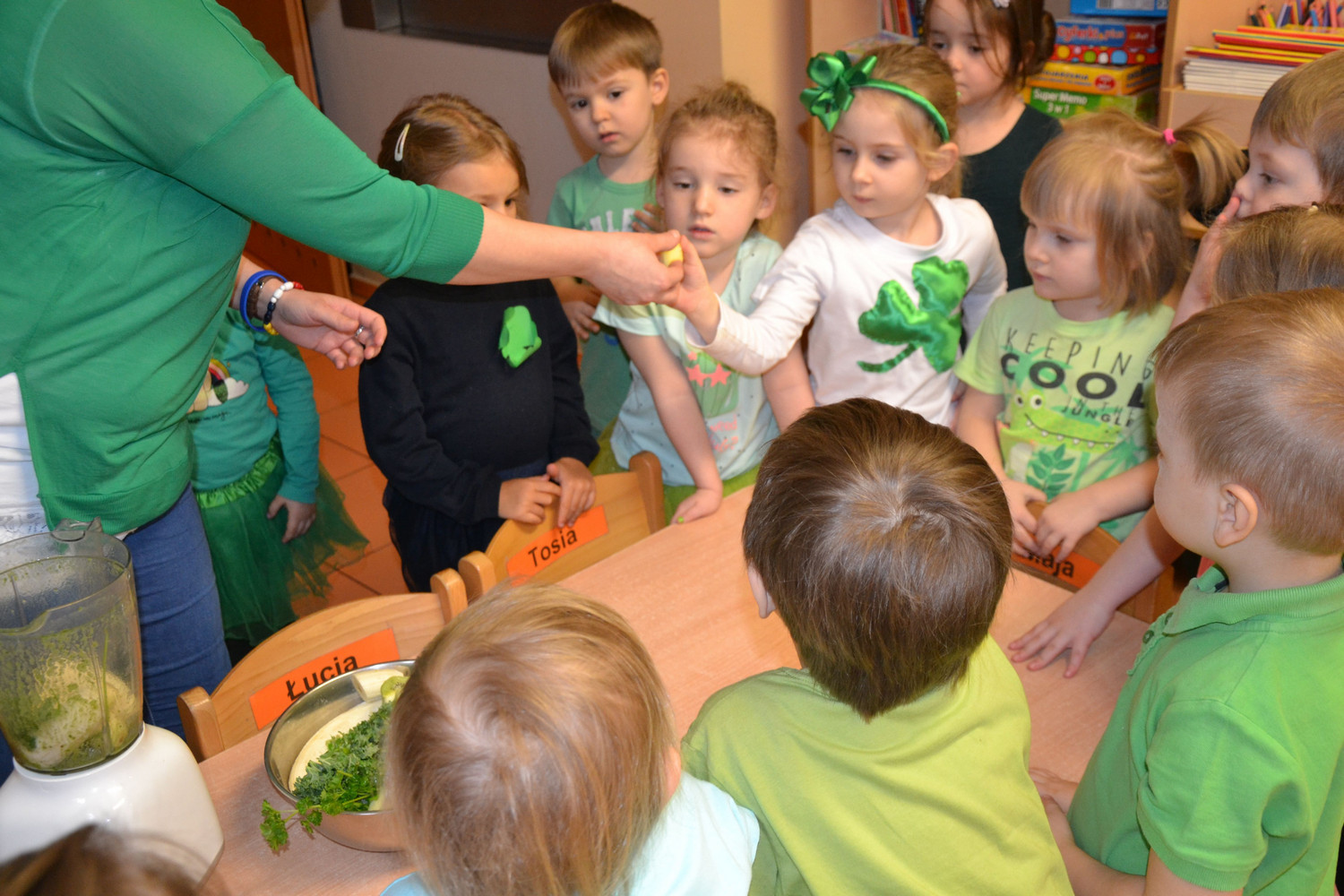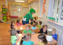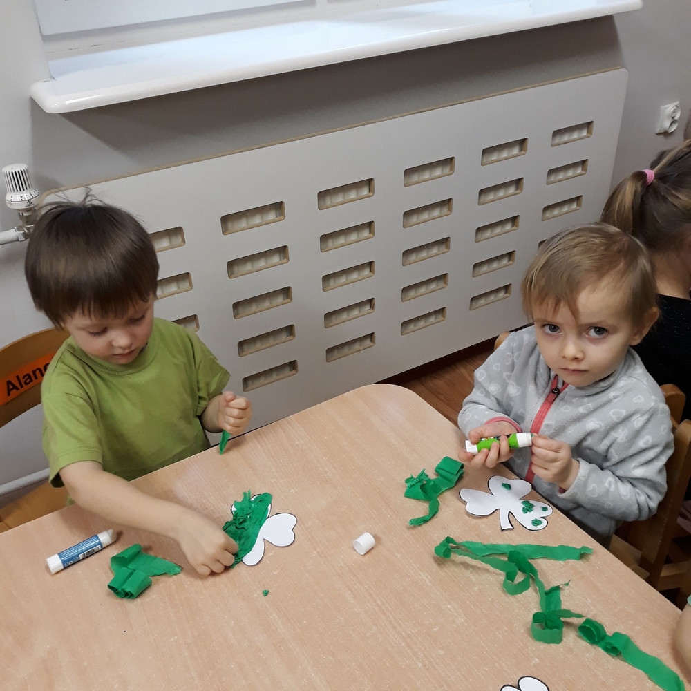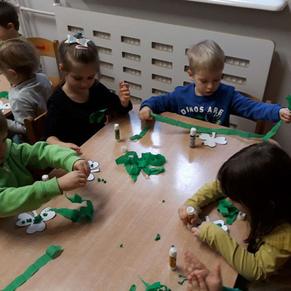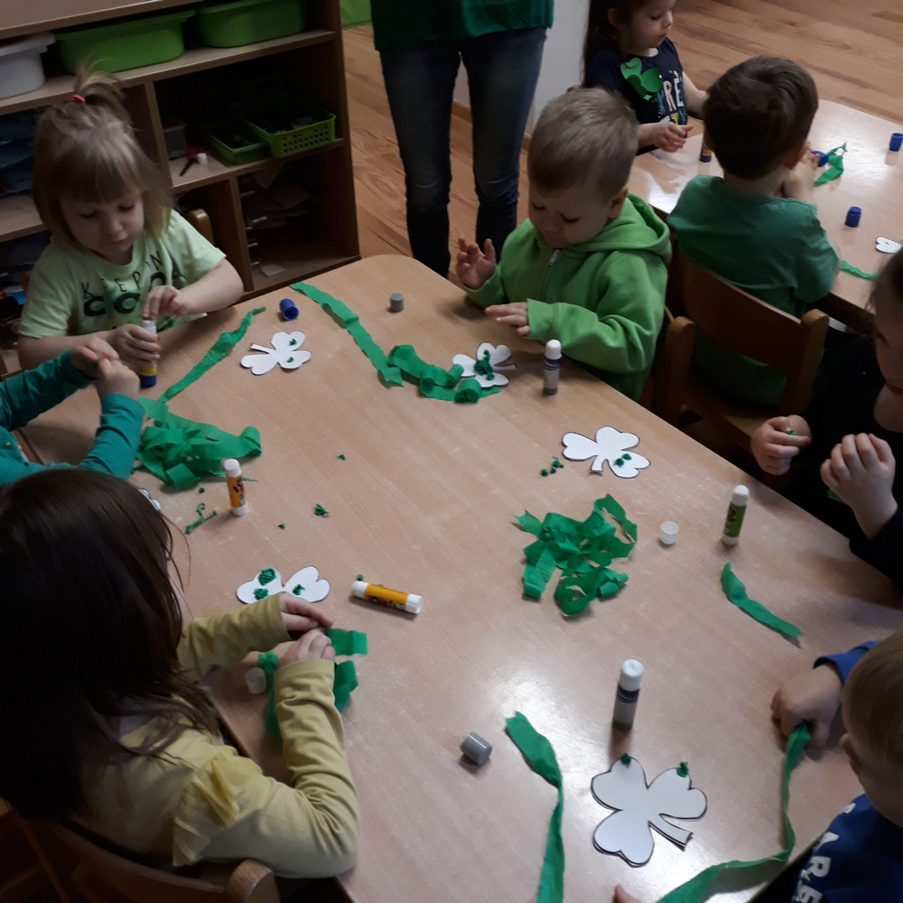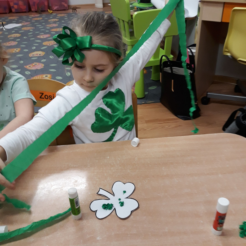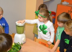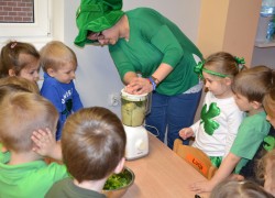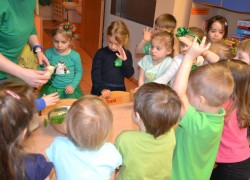 Dzieci z grupy II miały moż­li­wość poznać święto pocho­dzące z Irlan­dii. Zapo­znały się z legenda o św. Patryku. Wyko­nały koń­czynke i przy­go­to­wały pyszny zie­lony kok­tajl.