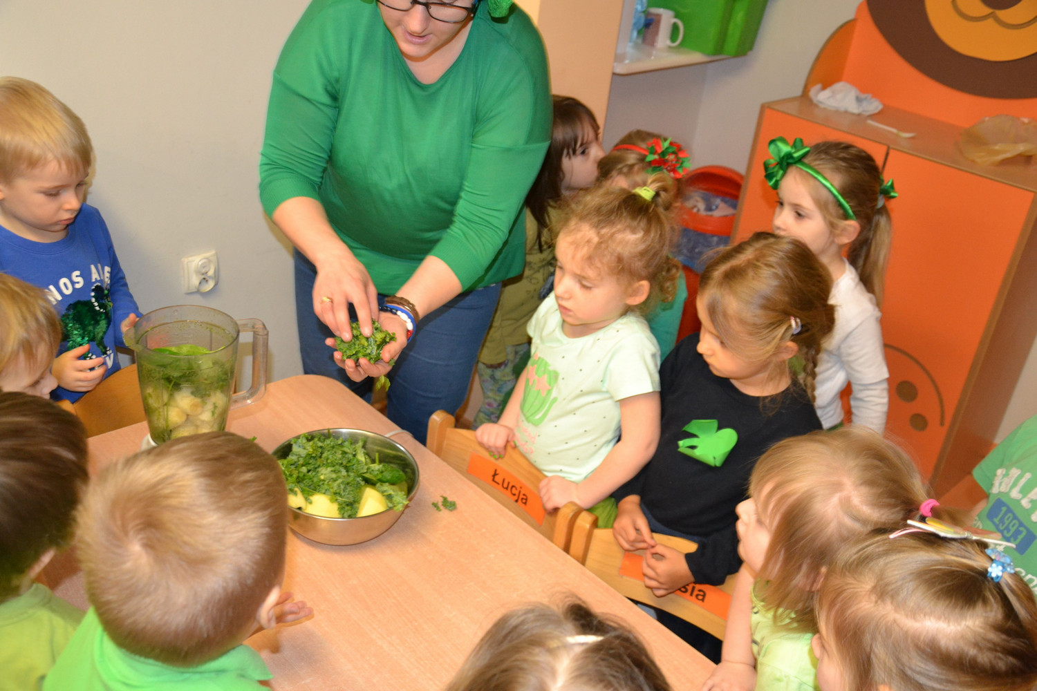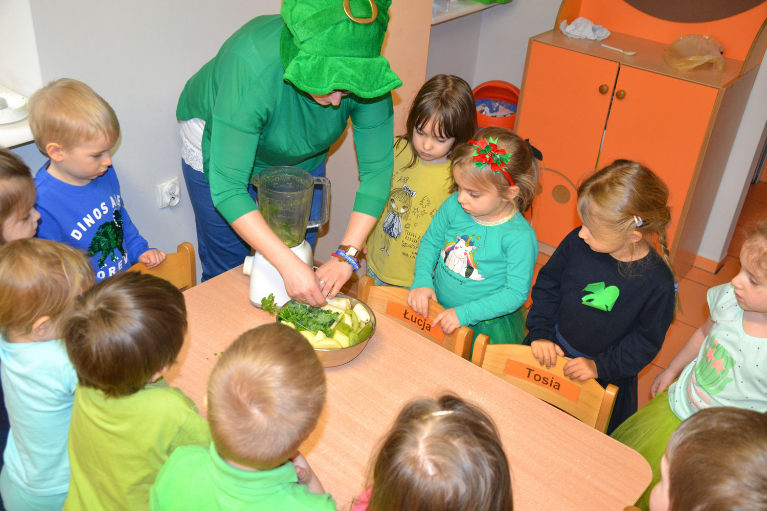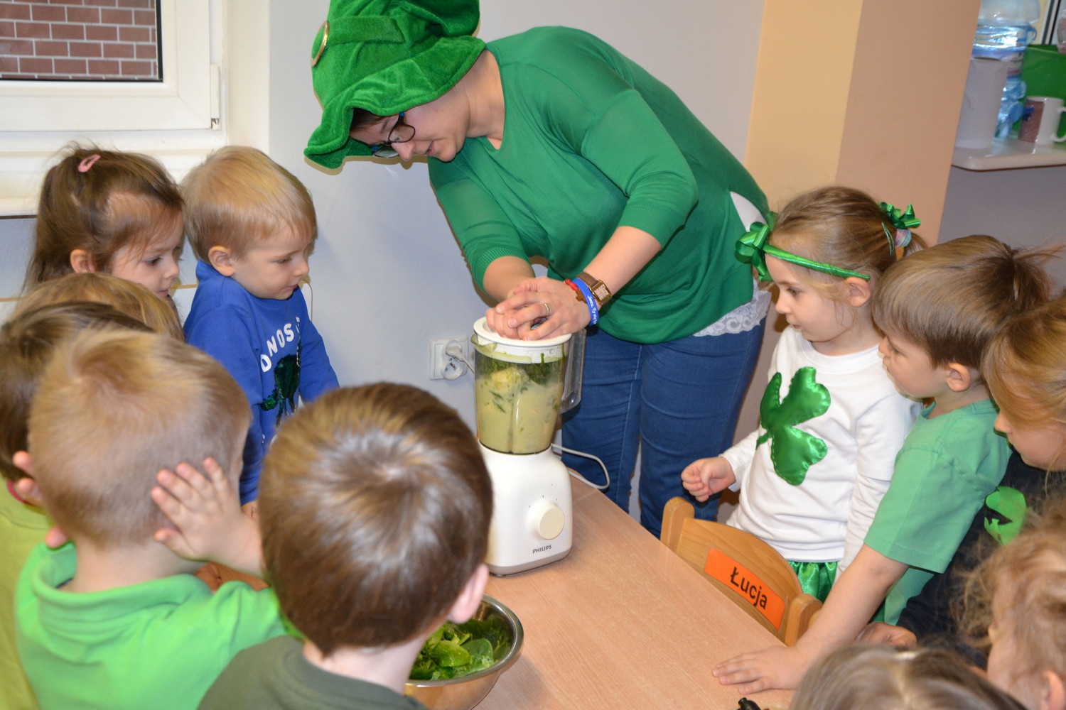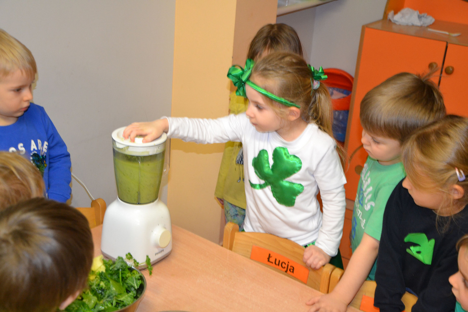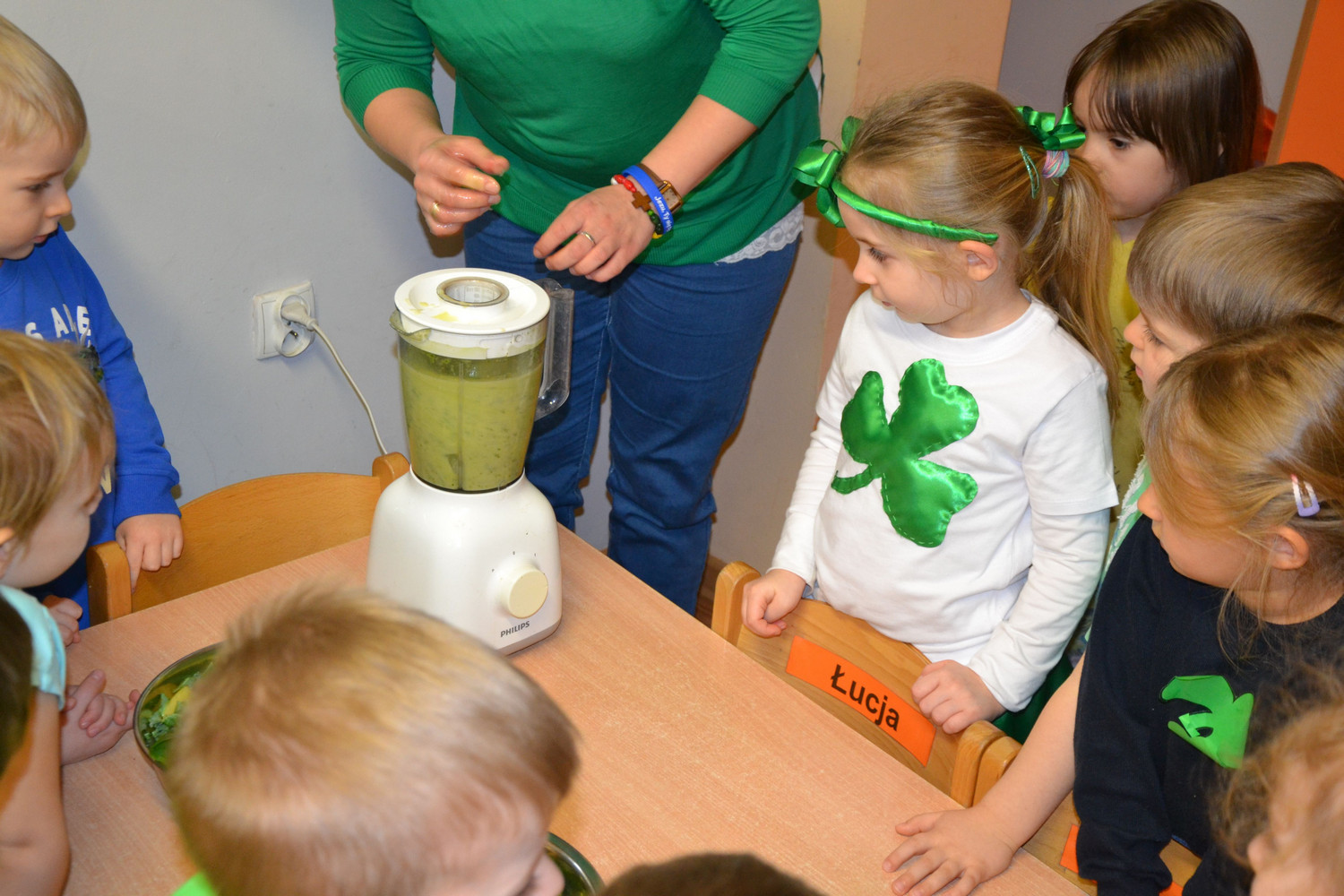Dzieci z grupy II miały moż­li­wość poznać święto pocho­dzące z Irlan­dii. Zapo­znały się z legenda o św. Patryku. Wyko­nały koń­czynke i przy­go­to­wały pyszny zie­lony kok­tajl.